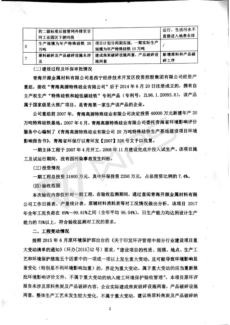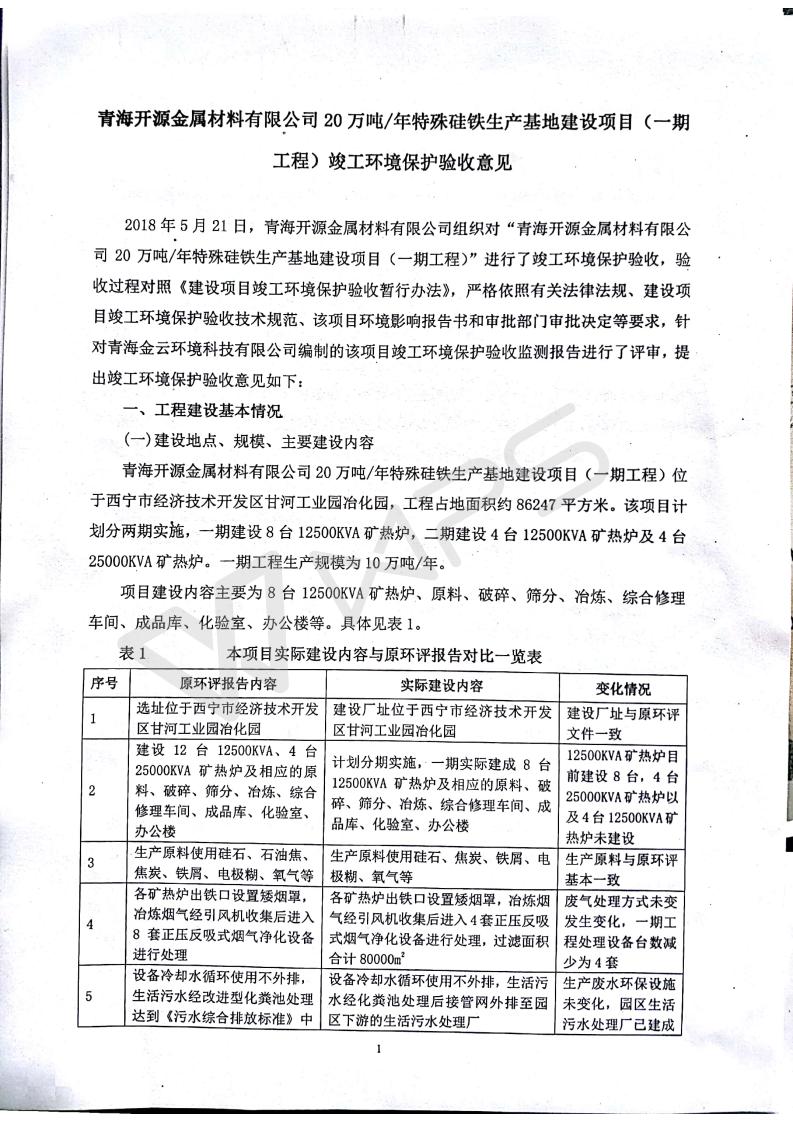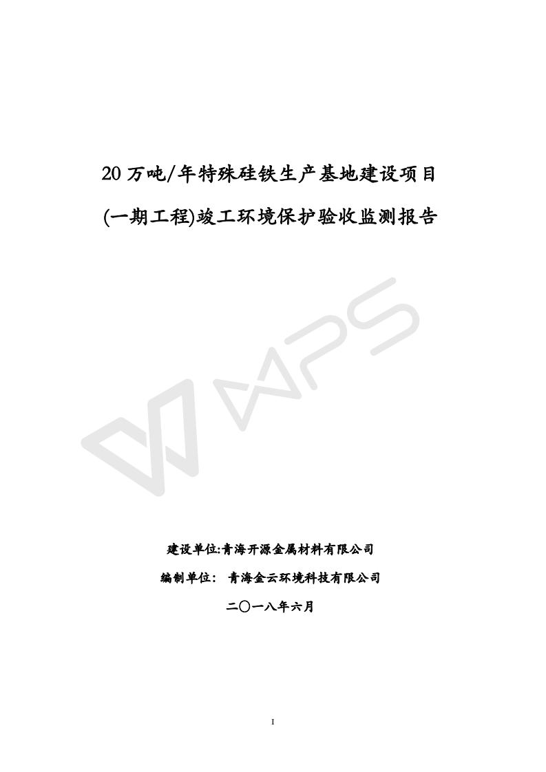 青海開源金屬材料有限公司20萬噸特殊硅鐵生產(chǎn)基地建設(shè)項(xiàng)目(一期工程)竣工環(huán)境保護(hù)驗(yàn)收?qǐng)?bào)告書會(huì)后修改20180521