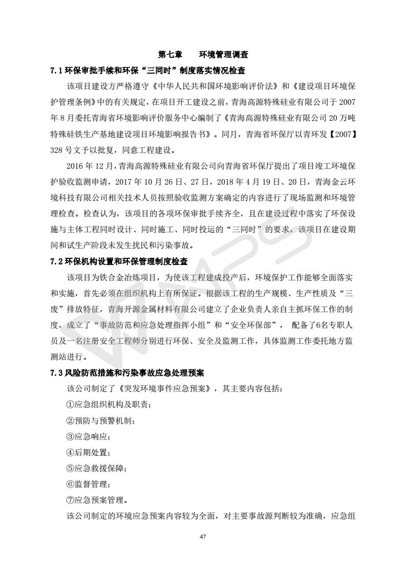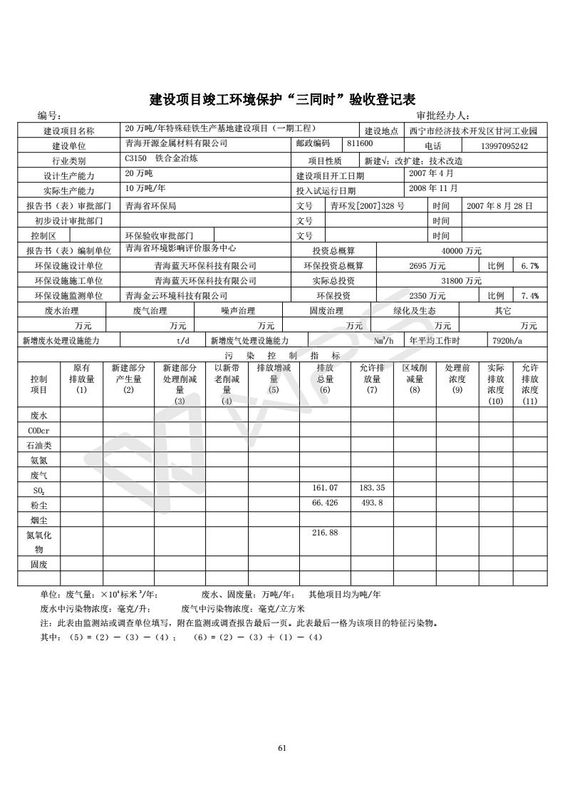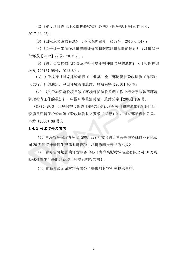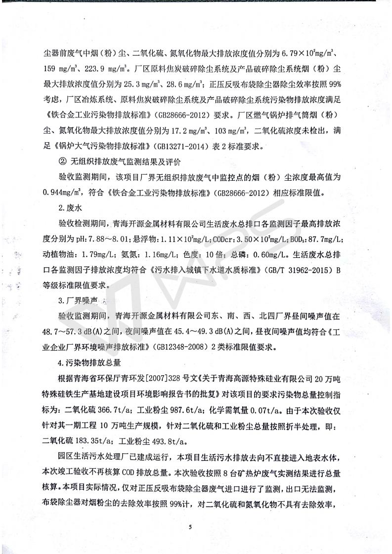 青海開源金屬材料有限公司20萬噸特殊硅鐵生產(chǎn)基地建設(shè)項(xiàng)目(一期工程)竣工環(huán)境保護(hù)驗(yàn)收?qǐng)?bào)告書會(huì)后修改20180521