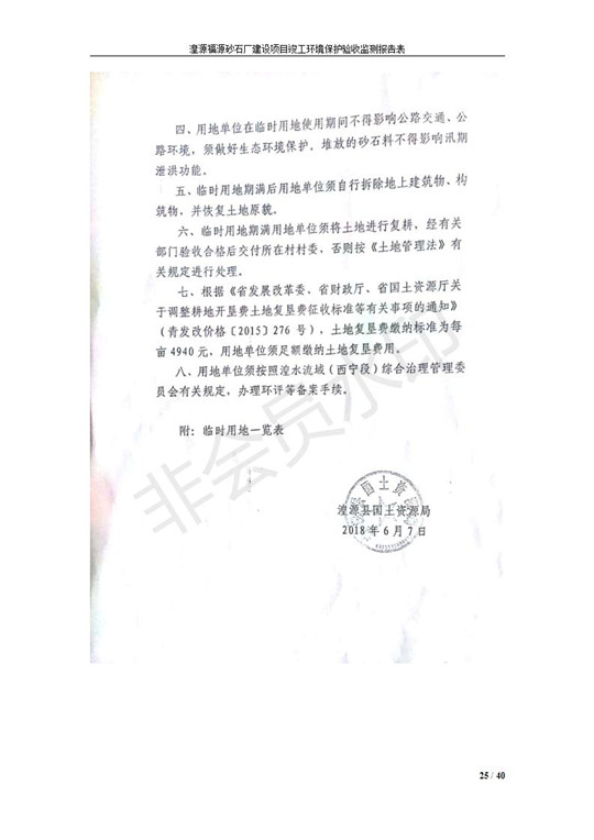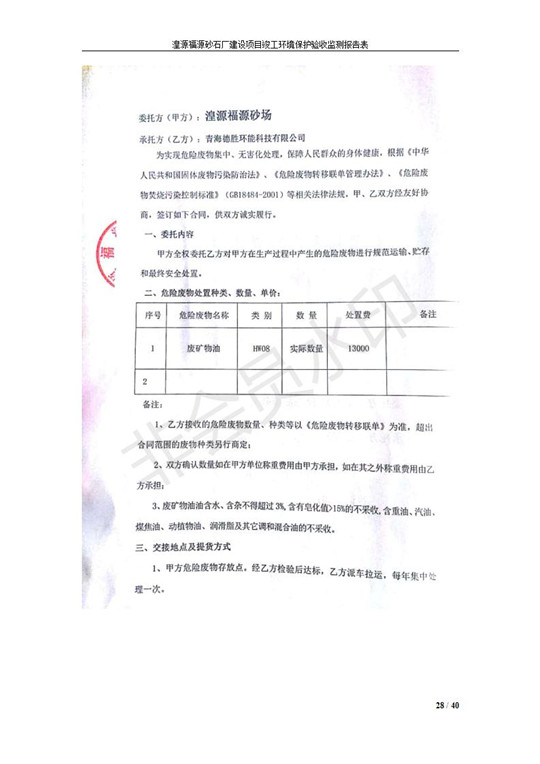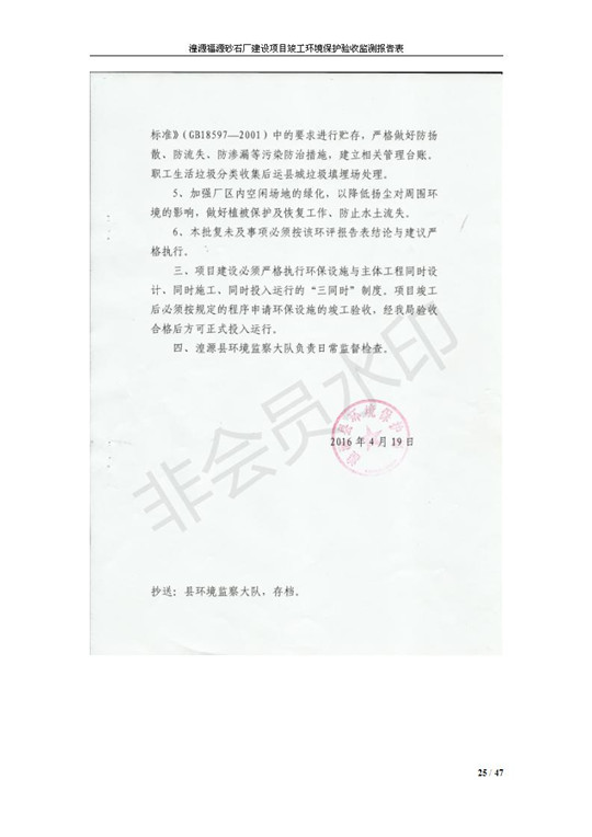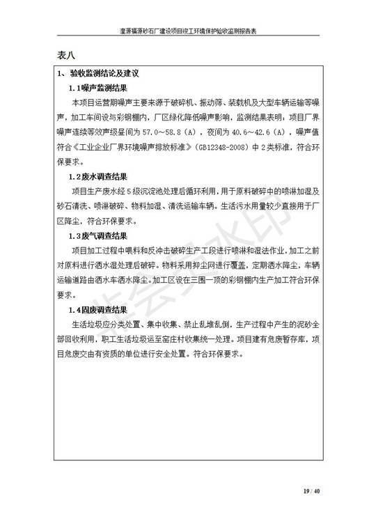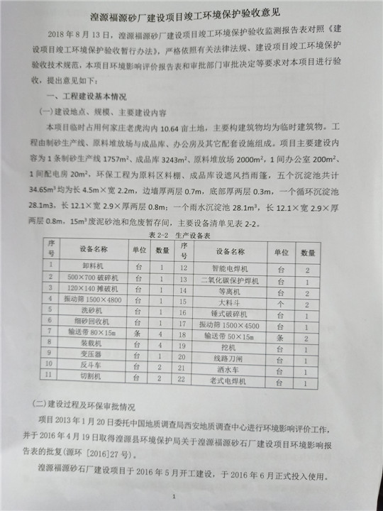 根據(jù)中華人民共和國國務(wù)院令第253號(hào)《建設(shè)項(xiàng)目環(huán)境保護(hù)管理?xiàng)l例》(中華人民共和國國務(wù)院令第682號(hào)《國務(wù)院關(guān)于修改〈建設(shè)項(xiàng)目環(huán)境保護(hù)管理?xiàng)l例〉的決定》和《建設(shè)項(xiàng)目竣工環(huán)境保護(hù)驗(yàn)收暫行辦法》,嚴(yán)格依照有關(guān)法律法規(guī),建設(shè)項(xiàng)目環(huán)境保護(hù)設(shè)施驗(yàn)收技術(shù)規(guī)范,本項(xiàng)目環(huán)評(píng)報(bào)告表和環(huán)保審批部門審批意見以及企業(yè)自行驗(yàn)收相關(guān)要求等對(duì)本項(xiàng)目進(jìn)行驗(yàn)收,本項(xiàng)目符合環(huán)保驗(yàn)收條件,可以通過環(huán)保驗(yàn)收。 湟源福砂廠建設(shè)項(xiàng)目竣工環(huán)境保護(hù)驗(yàn)收意見