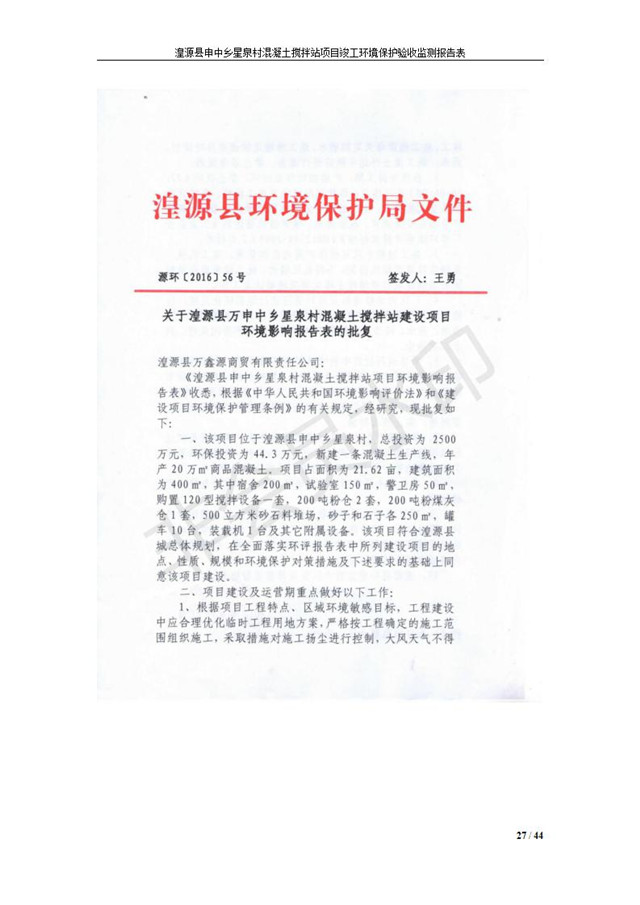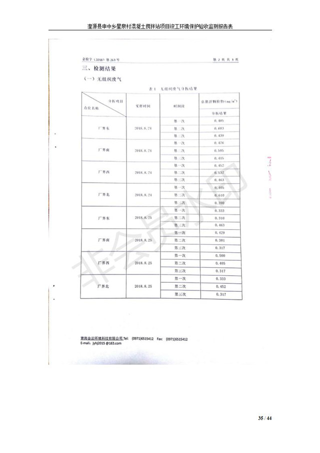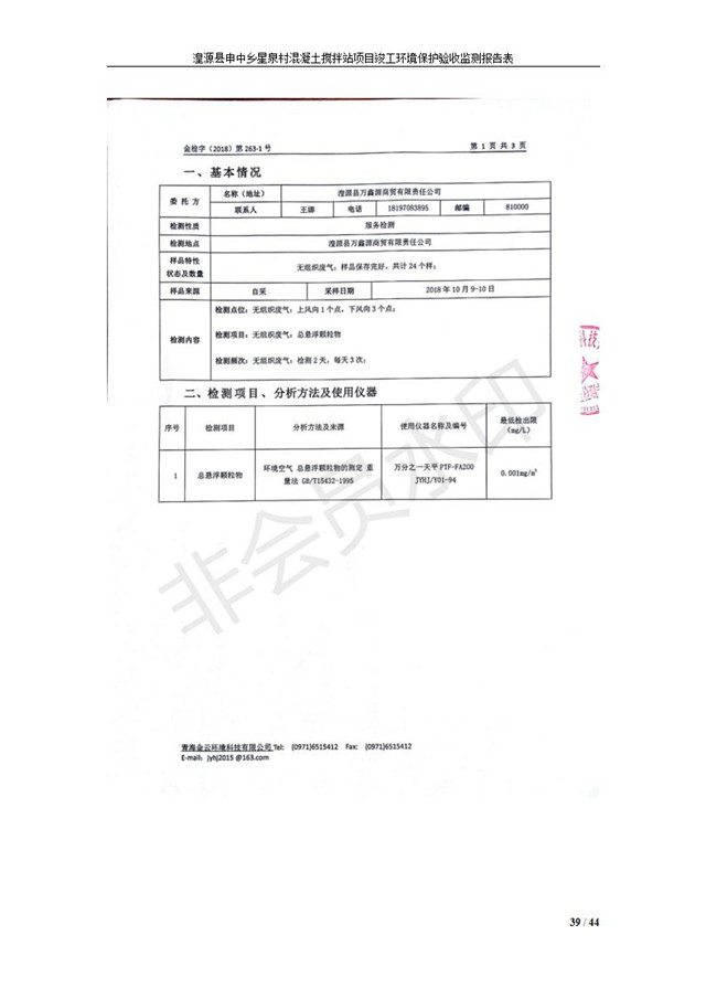 湟源縣申中鄉(xiāng)星泉村混凝土攪拌站項(xiàng)目竣工環(huán)境保護(hù)驗(yàn)收監(jiān)測(cè)報(bào)告表公示發(fā)布日期:(2018-11-16) 點(diǎn)擊次數(shù):2302 |