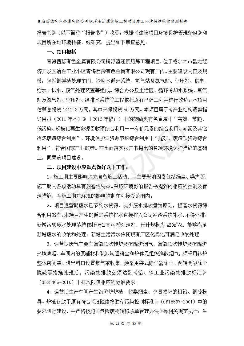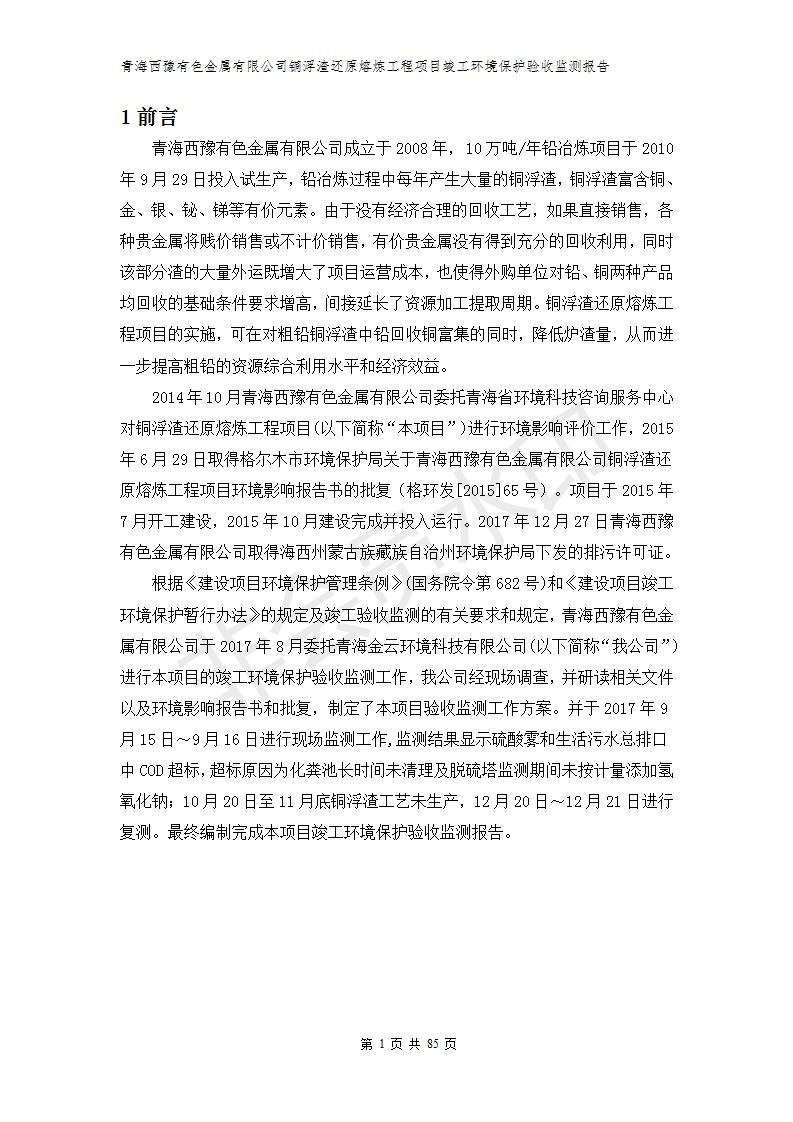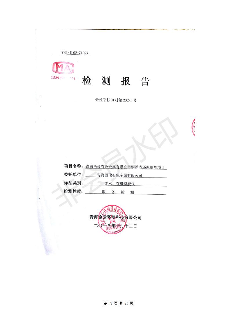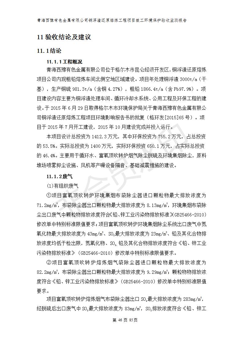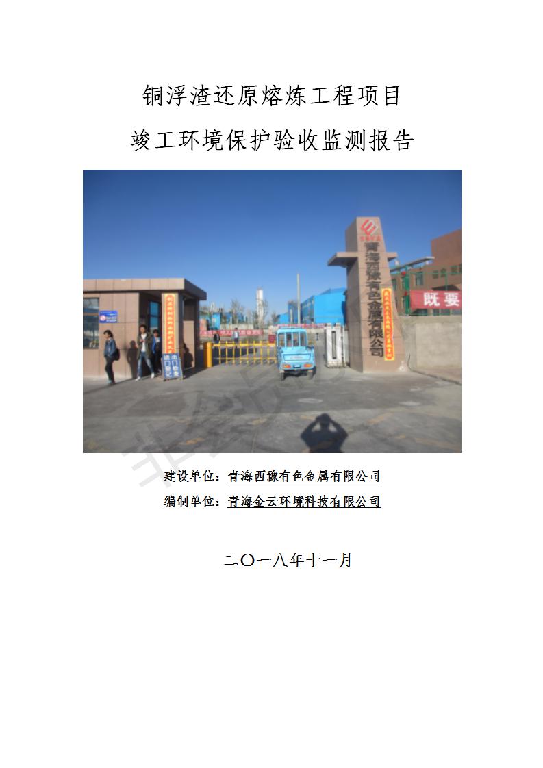青海西豫有色金屬有限公司銅浮渣還原熔煉工程項目竣工環(huán)境保護驗收監(jiān)測報告公示發(fā)布日期:(2018-11-23) 點擊次數(shù):2630 |