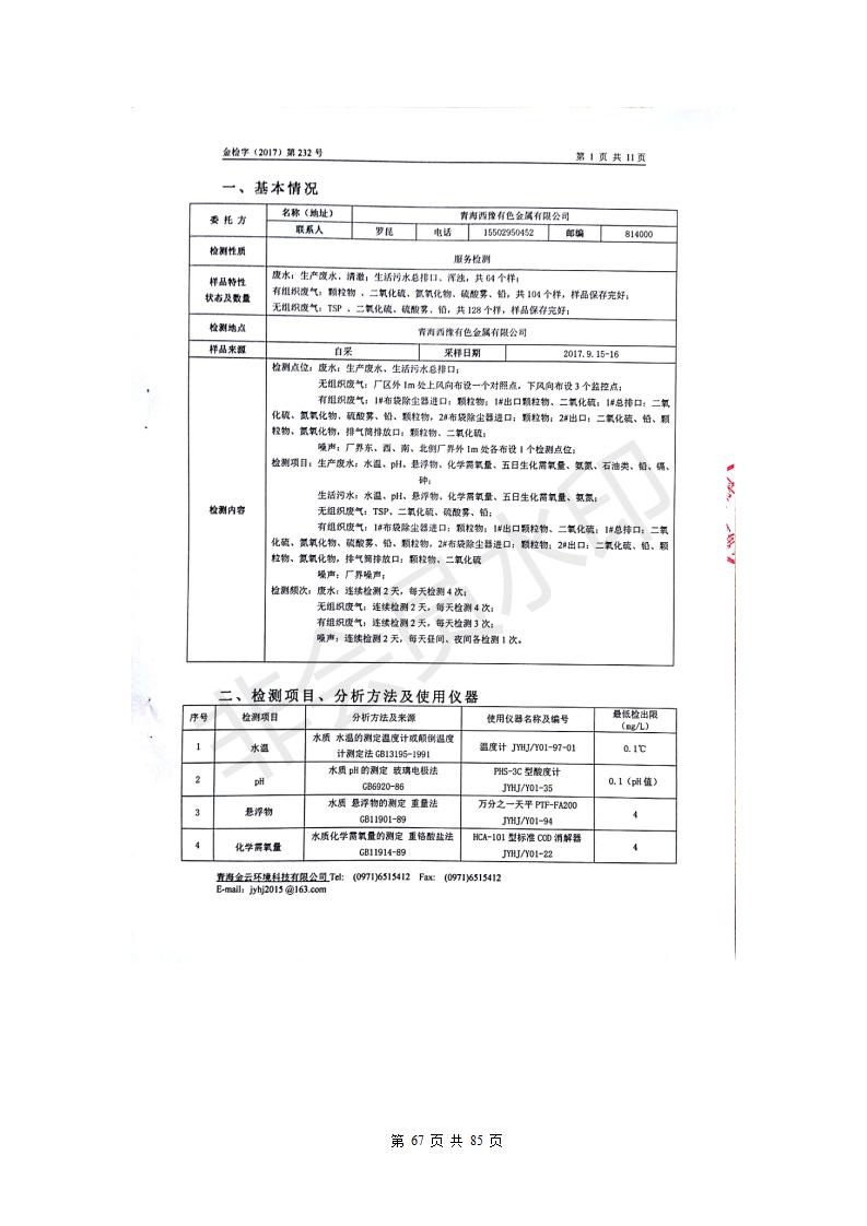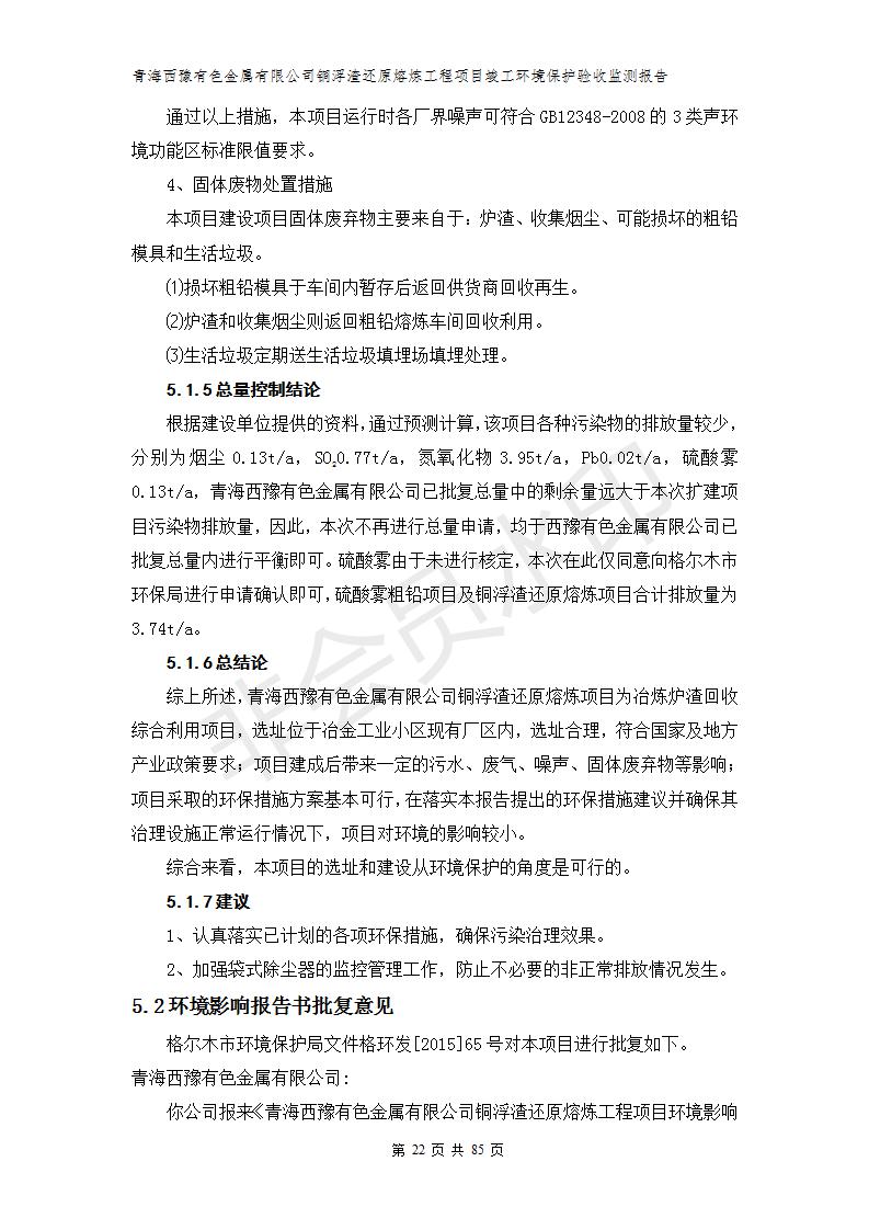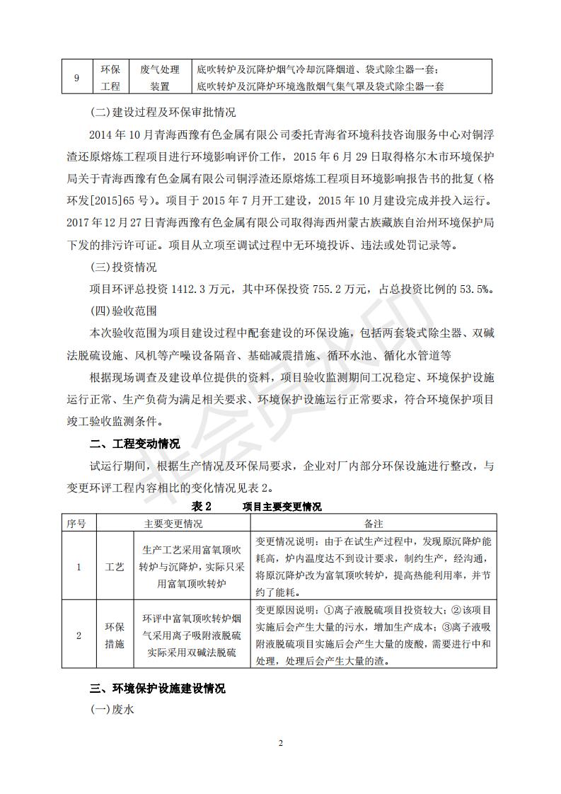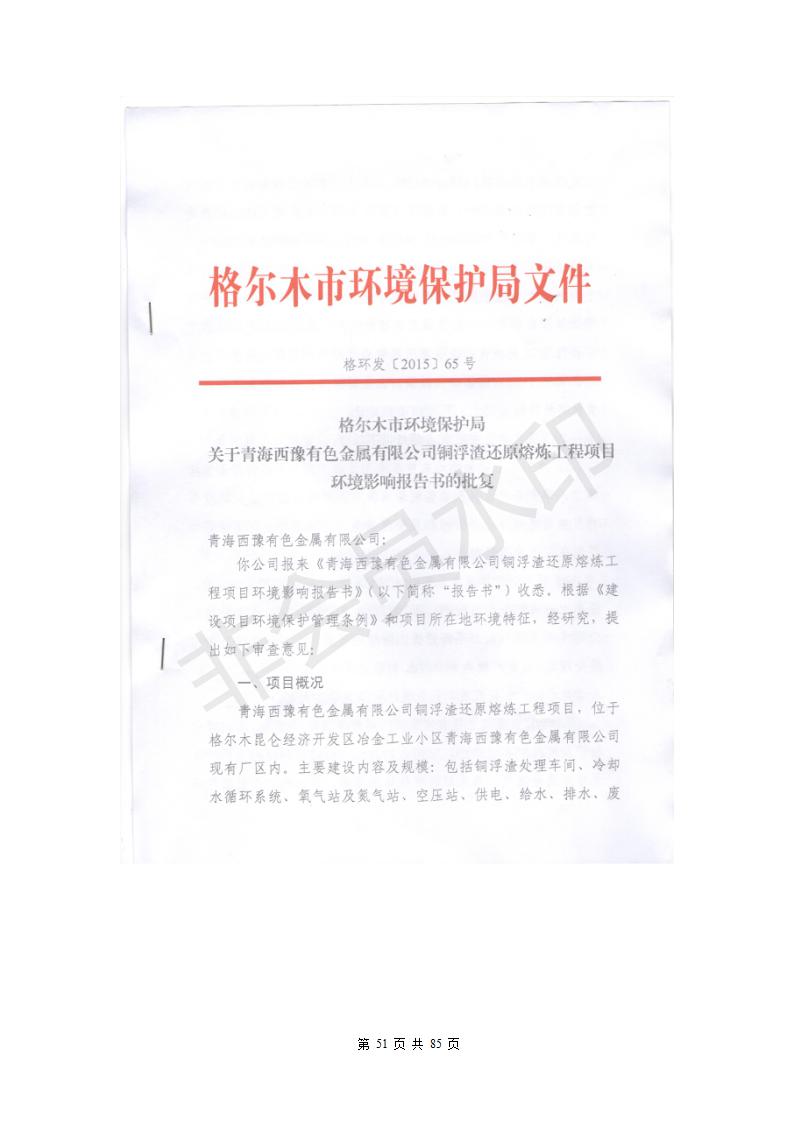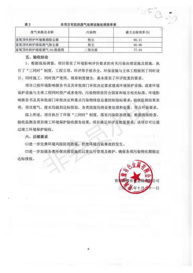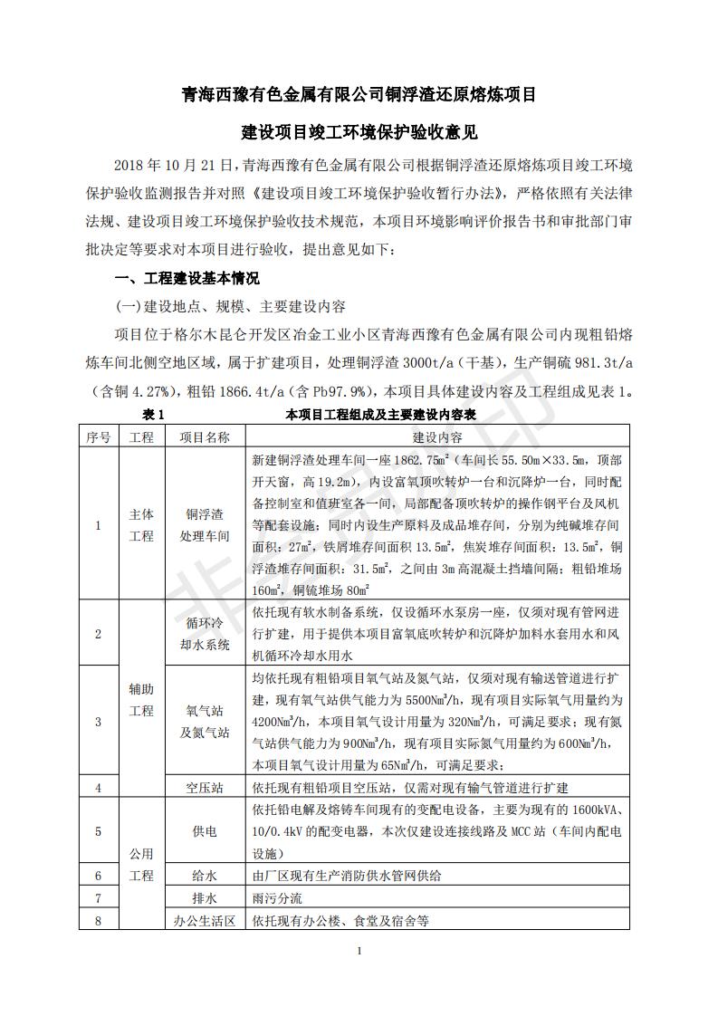 青海西豫有色金屬有限公司銅浮渣還原熔煉工程項目竣工環(huán)境保護驗收監(jiān)測報告公示發(fā)布日期:(2018-11-23) 點擊次數(shù):2630 |