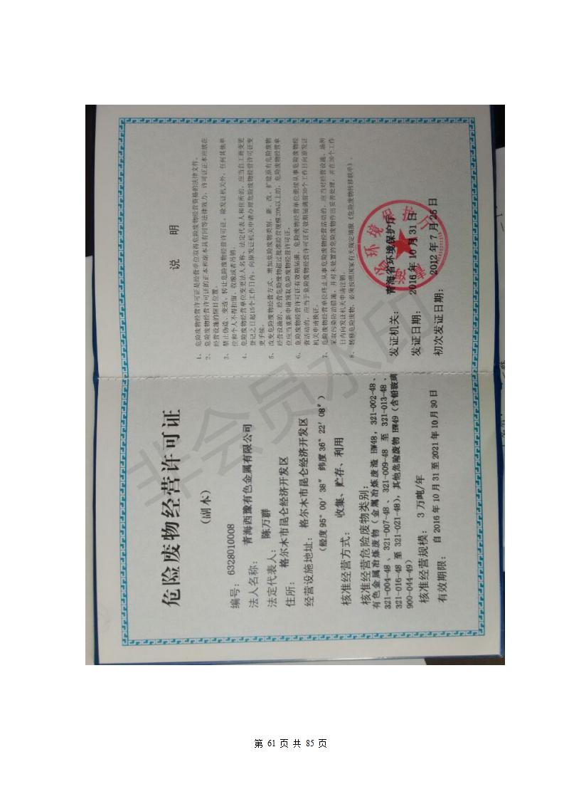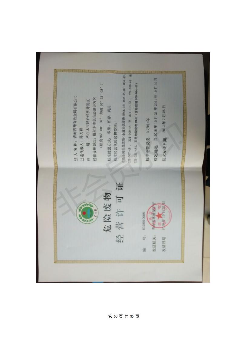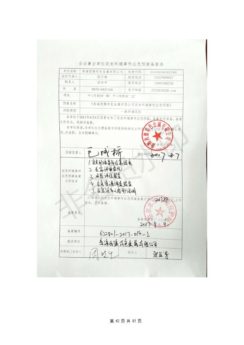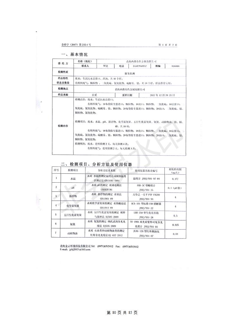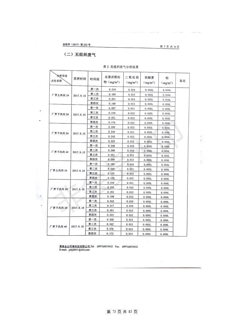 青海西豫有色金屬有限公司銅浮渣還原熔煉工程項目竣工環(huán)境保護驗收監(jiān)測報告公示發(fā)布日期:(2018-11-23) 點擊次數(shù):2630 |