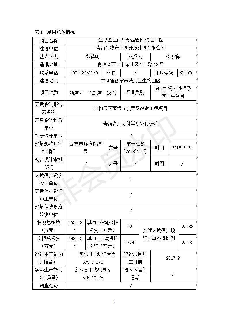 生物園區(qū)雨污分流管網(wǎng)改造工程竣工環(huán)境保護驗收調(diào)查表 公示發(fā)布日期:(2018-12-21) 點擊次數(shù):2790 |