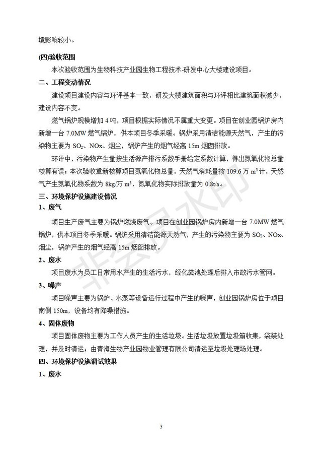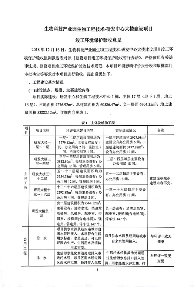 生物科技產(chǎn)業(yè)園生物工程技術(shù)-研發(fā)中心大樓建設(shè)項(xiàng)目竣工環(huán)境保護(hù)驗(yàn)收監(jiān)測(cè)報(bào)告表公示