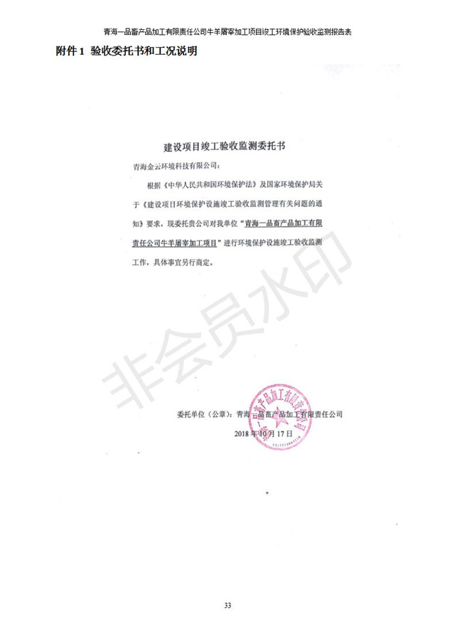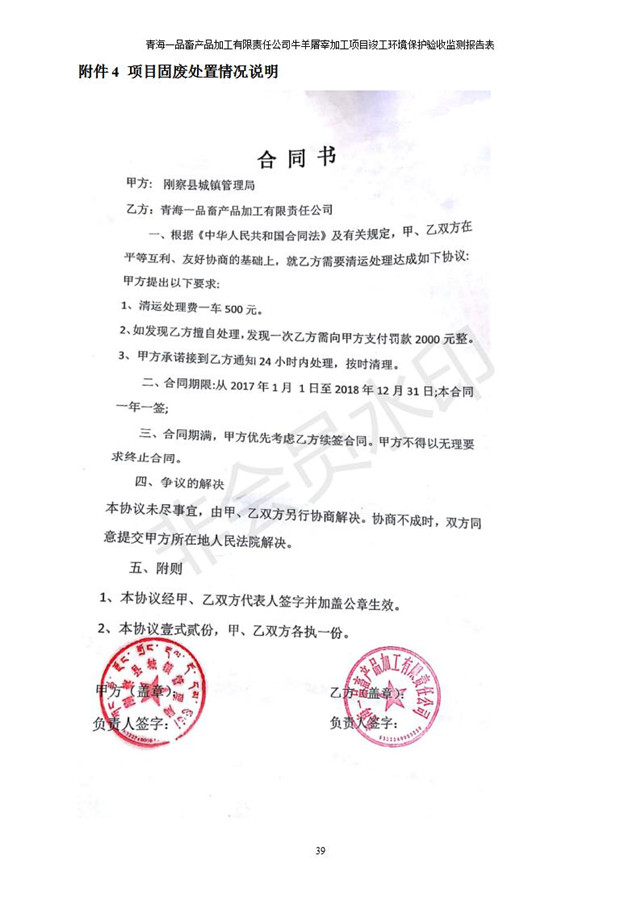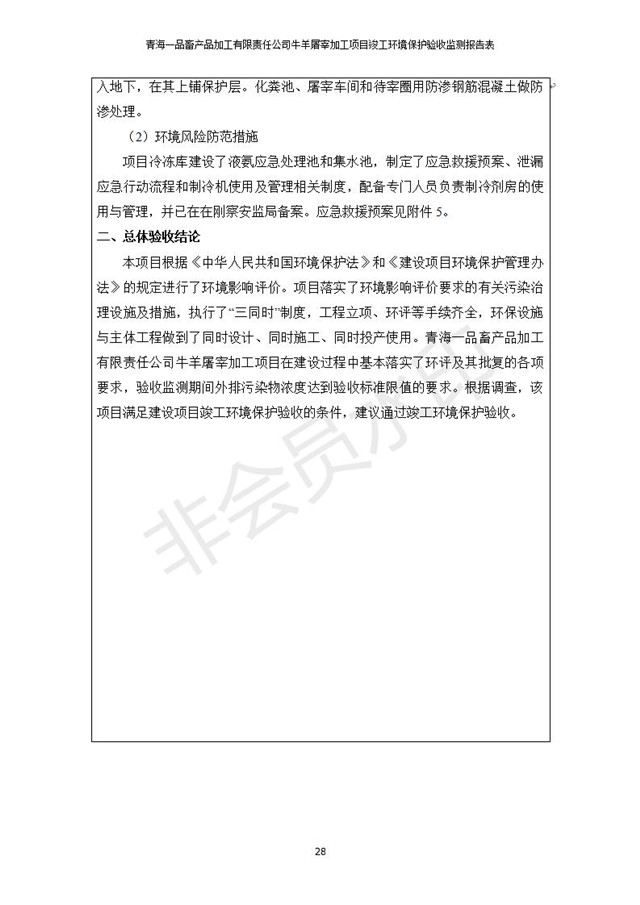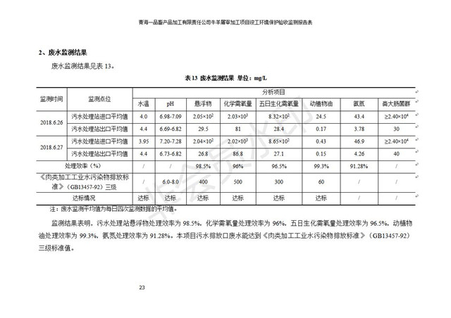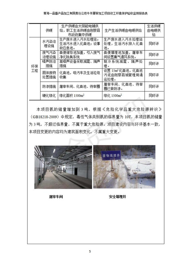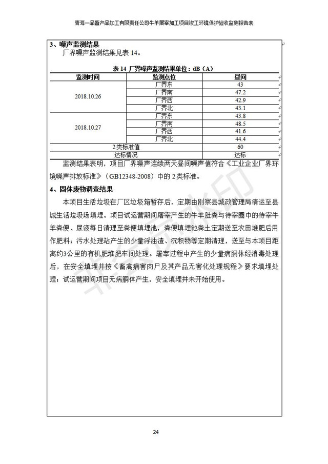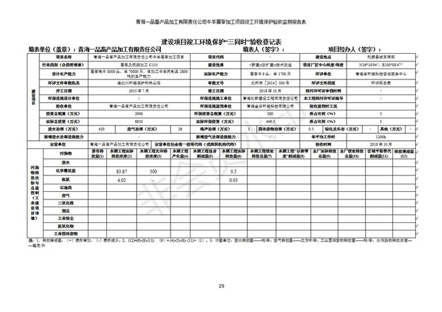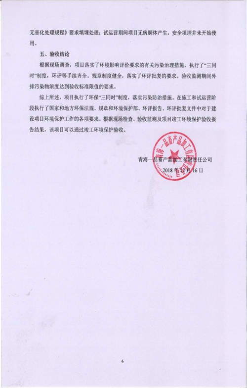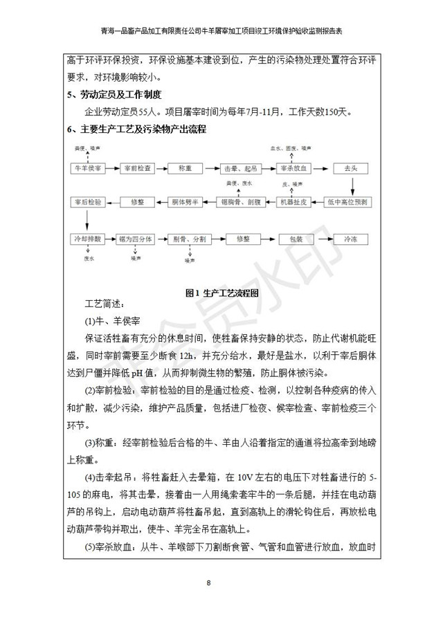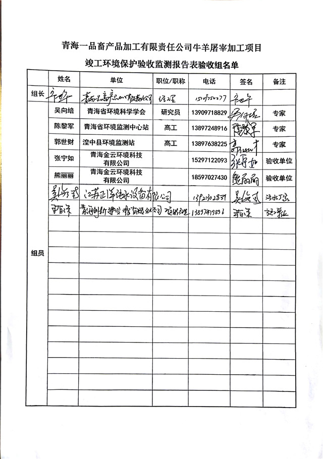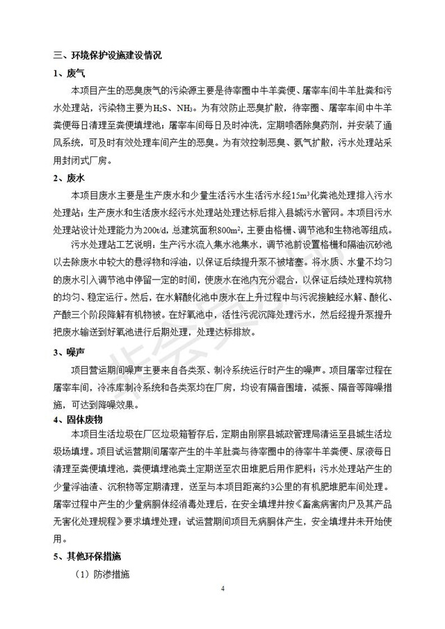 根據(jù)中華人民共和國國務(wù)院令第682號《國務(wù)院關(guān)于修改〈建設(shè)項目環(huán)境保護(hù)管理條例〉的決定》和《建設(shè)項目竣工環(huán)境保護(hù)驗收暫行辦法》(國務(wù)院令682號),青海一品畜產(chǎn)品加工有限責(zé)任公司牛羊屠宰加工項目(包括竣工環(huán)境保護(hù)驗收監(jiān)測報告表和驗收意見)公示如下。 一、項目名稱:青海一品畜產(chǎn)品加工有限責(zé)任公司牛羊屠宰加工項目竣工環(huán)境保護(hù)驗收監(jiān)測報告表 二、地點(diǎn):剛察縣縣城東大街加油站東側(cè) 三、建設(shè)單位:青海一品畜產(chǎn)品加工有限責(zé)任公司 四、建設(shè)內(nèi)容:項目地面積17453m2,項目建設(shè)內(nèi)容包括牛羊屠宰車間、牛羊肉加工車間、冷庫、辦公區(qū)、污水處理站等。 五、聯(lián)系人:張工 七、公示時間:二〇一九年一月十一日至二〇一九年二月七日 公示期間,對上述公示內(nèi)容如有異議,請以書面形式反饋,個人須署真實姓名,單位須加蓋公章。