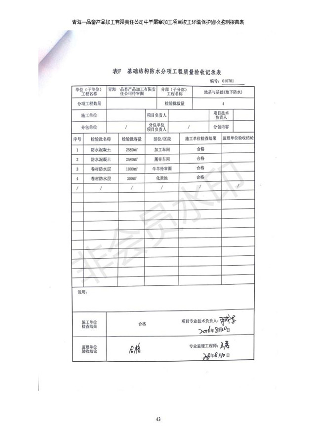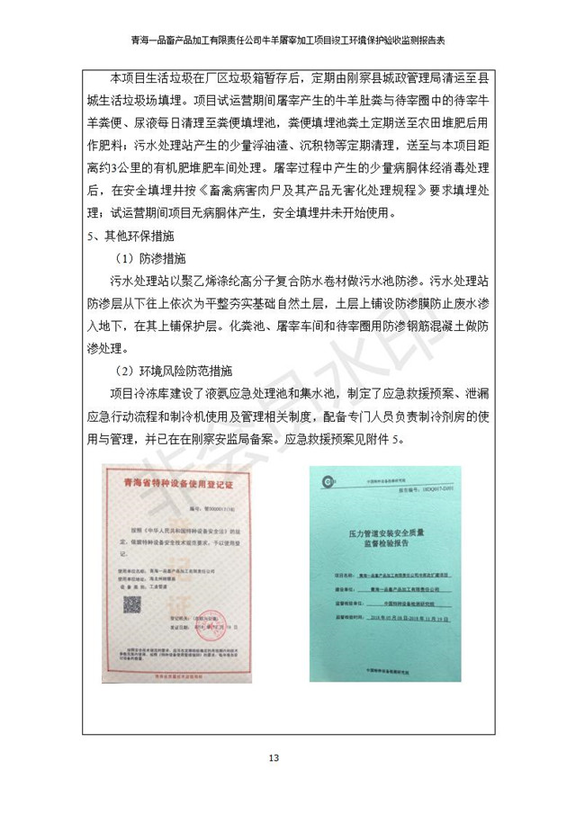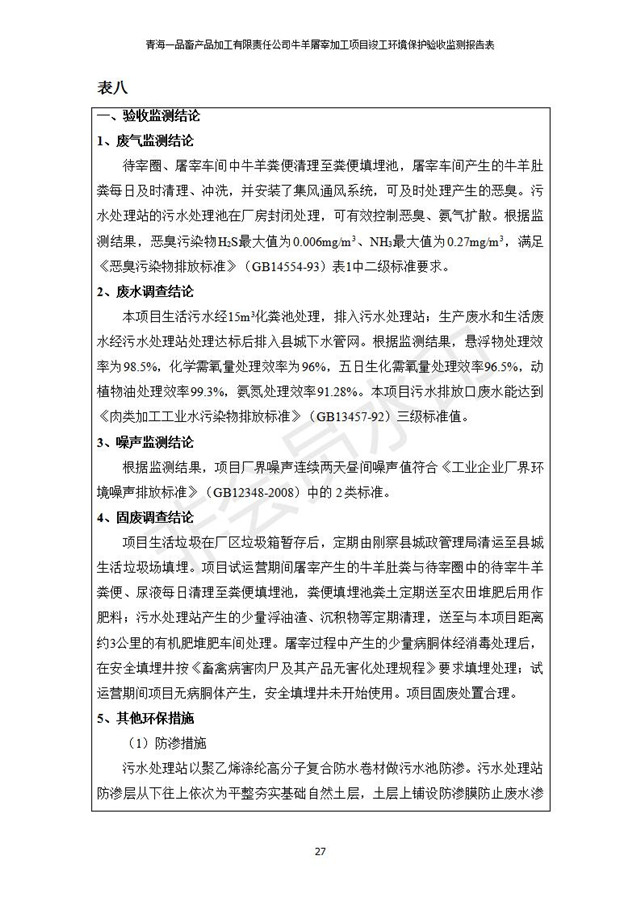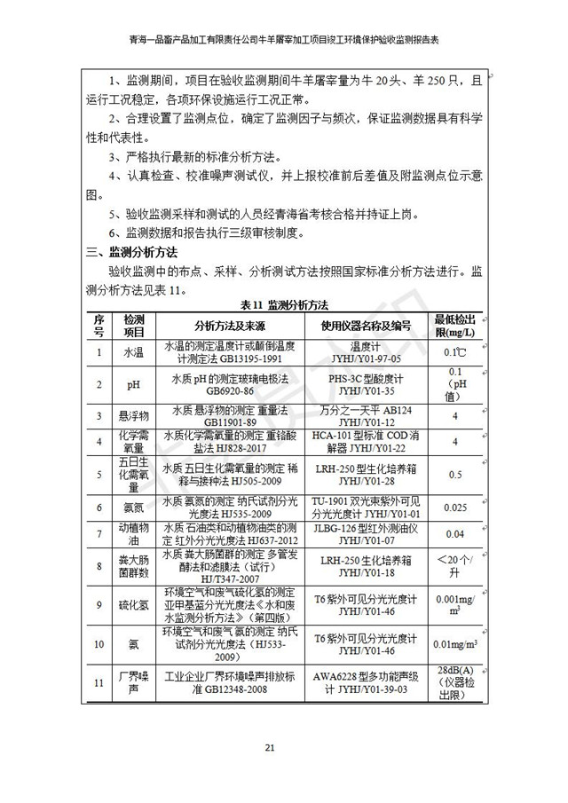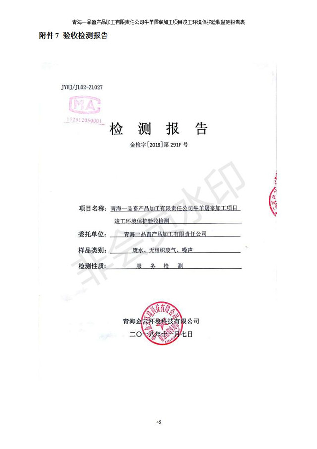 青海一品畜產(chǎn)品加工有限責(zé)任公司牛羊屠宰加工項目 竣工環(huán)境保護(hù)驗收監(jiān)測報告表公示發(fā)布日期:(2019-1-11) 點(diǎn)擊次數(shù):3101 |