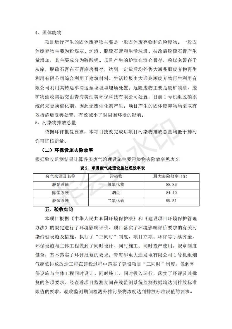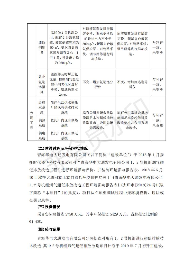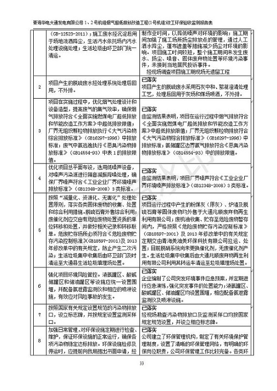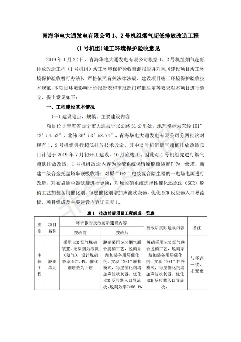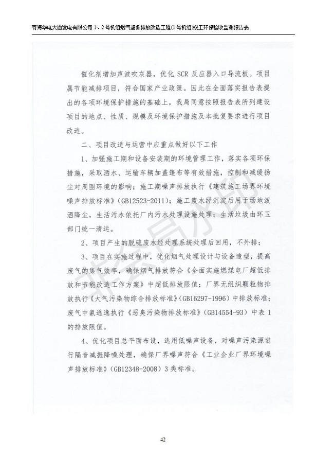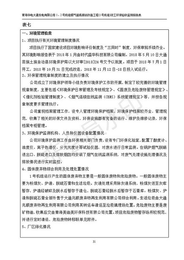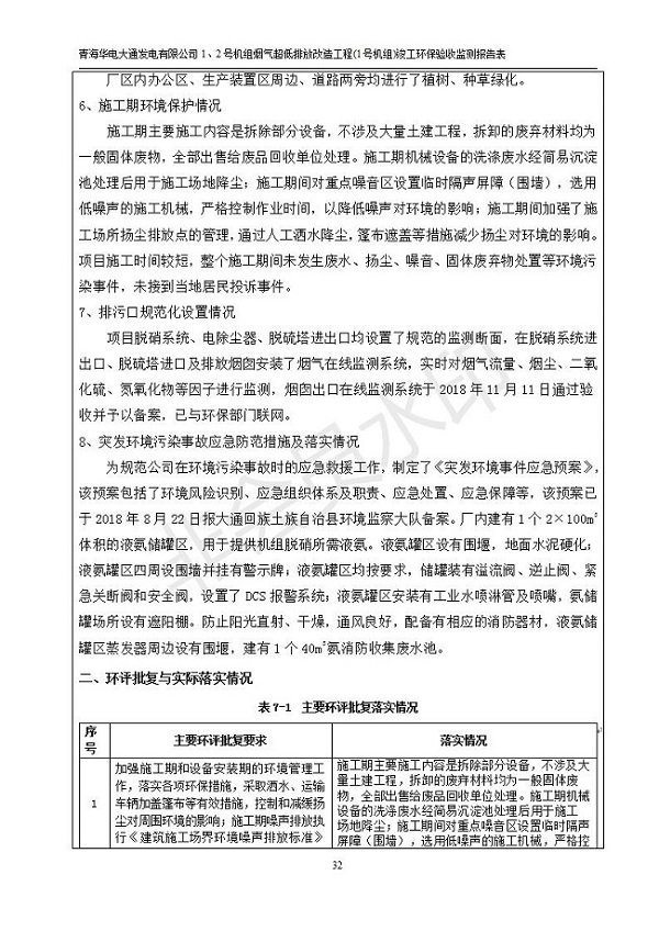 根據(jù)中華人民共和國國務(wù)院令第682號《國務(wù)院關(guān)于修改〈建設(shè)項目環(huán)境保護管理條例〉的決定》和《建設(shè)項目竣工環(huán)境保護驗收暫行辦法》(國務(wù)院令682號),青海華電大通發(fā)電有限公司1、2號機組煙氣超低排放改造工程(1號機組) (包括竣工環(huán)境保護驗收監(jiān)測報告表和驗收意見)公示如下。 一、項目名稱:青海華電大通發(fā)電有限公司1、2號機組煙氣超低排放改造工程(1號機組) 竣工環(huán)境保護驗收監(jiān)測報告表 二、地點:青海省西寧市大通縣寧張公路31公里處 三、建設(shè)單位:青海華電大通發(fā)電有限公司 四、建設(shè)內(nèi)容:1號機組煙氣超低排放改造,1號機組改造內(nèi)容為脫硫系統(tǒng)保留原脫硫裝置作為一級塔,新建二級合金托盤塔串聯(lián)吸收塔;對原“1+2”電袋復(fù)合除塵器的一電場電源進行改造,對布袋除塵器濾袋進行更換;對原脫硝系統(tǒng)選擇性催化還原法(SCR)脫硝工藝加裝備用催化劑,每層催化劑增加聲波吹灰器,優(yōu)化SCR反應(yīng)器入口導(dǎo)流板。 五、聯(lián)系人:張工 六、聯(lián)系電 話:0971-6515411 七、公示時間:二〇一九年二月十三日至二〇一九年三月十二日 公示期間,對上述公示內(nèi)容如有異議,請以書面形式反饋,個人須署真實姓名,單位須加蓋公章。