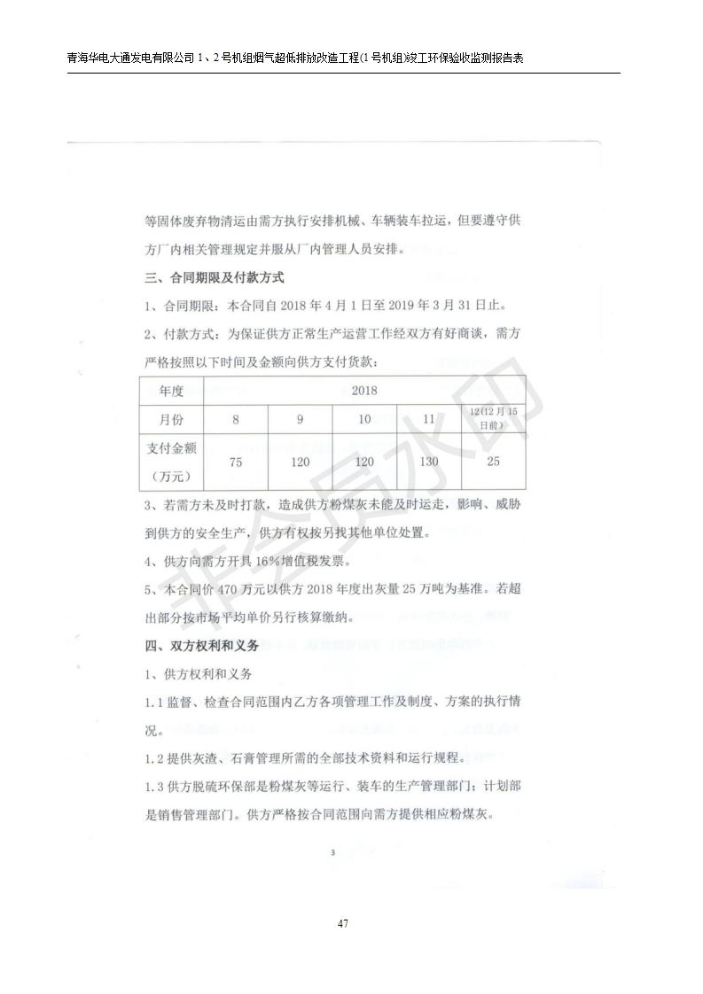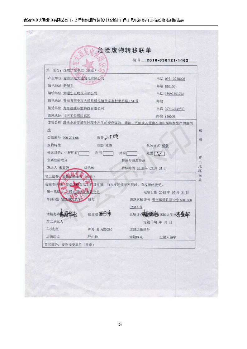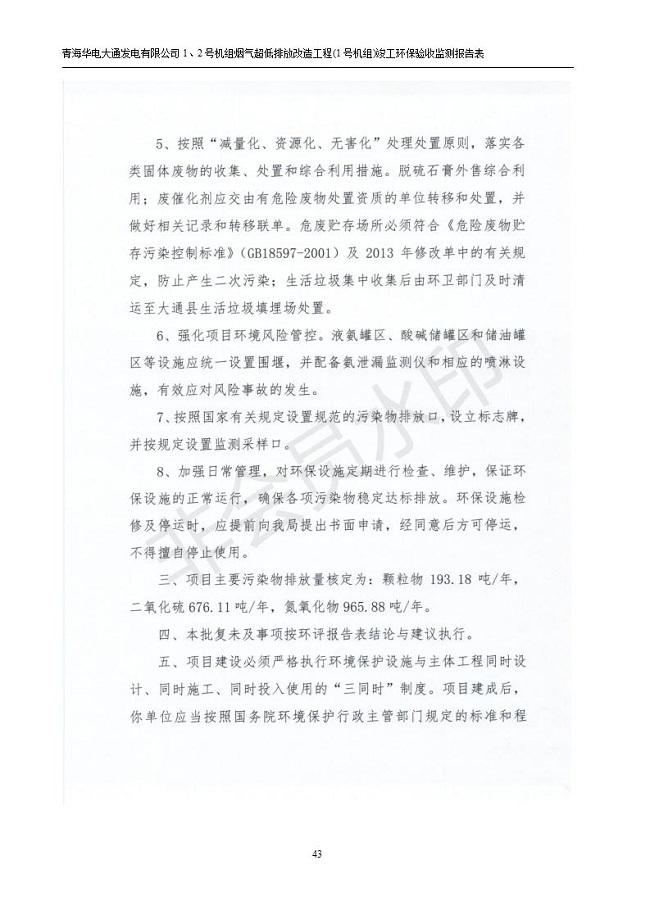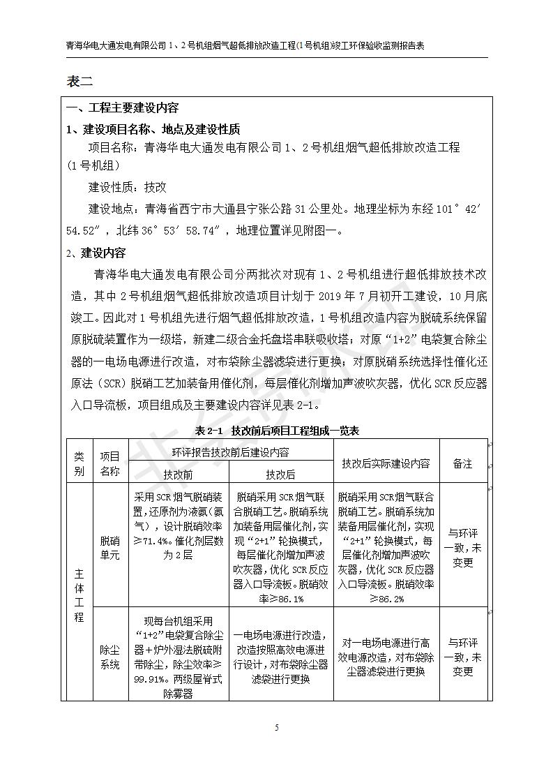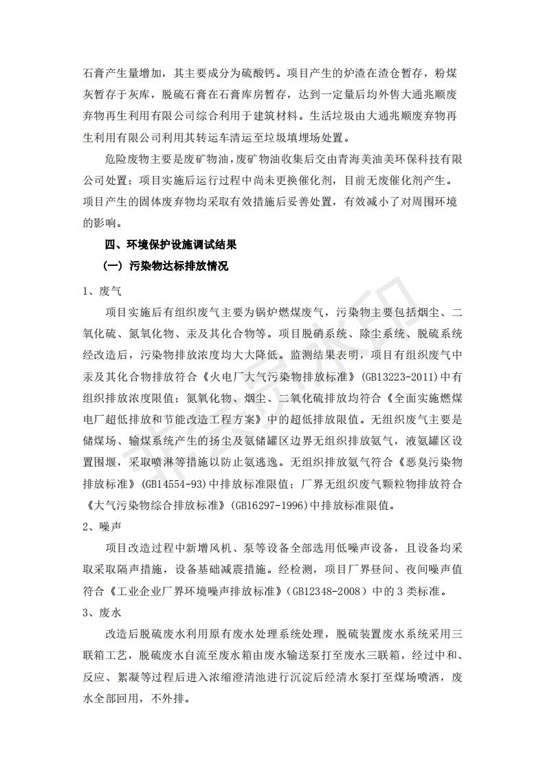 根據(jù)中華人民共和國國務(wù)院令第682號《國務(wù)院關(guān)于修改〈建設(shè)項目環(huán)境保護管理條例〉的決定》和《建設(shè)項目竣工環(huán)境保護驗收暫行辦法》(國務(wù)院令682號),青海華電大通發(fā)電有限公司1、2號機組煙氣超低排放改造工程(1號機組) (包括竣工環(huán)境保護驗收監(jiān)測報告表和驗收意見)公示如下。 一、項目名稱:青海華電大通發(fā)電有限公司1、2號機組煙氣超低排放改造工程(1號機組) 竣工環(huán)境保護驗收監(jiān)測報告表 二、地點:青海省西寧市大通縣寧張公路31公里處 三、建設(shè)單位:青海華電大通發(fā)電有限公司 四、建設(shè)內(nèi)容:1號機組煙氣超低排放改造,1號機組改造內(nèi)容為脫硫系統(tǒng)保留原脫硫裝置作為一級塔,新建二級合金托盤塔串聯(lián)吸收塔;對原“1+2”電袋復(fù)合除塵器的一電場電源進行改造,對布袋除塵器濾袋進行更換;對原脫硝系統(tǒng)選擇性催化還原法(SCR)脫硝工藝加裝備用催化劑,每層催化劑增加聲波吹灰器,優(yōu)化SCR反應(yīng)器入口導(dǎo)流板。 五、聯(lián)系人:張工 六、聯(lián)系電 話:0971-6515411 七、公示時間:二〇一九年二月十三日至二〇一九年三月十二日 公示期間,對上述公示內(nèi)容如有異議,請以書面形式反饋,個人須署真實姓名,單位須加蓋公章。