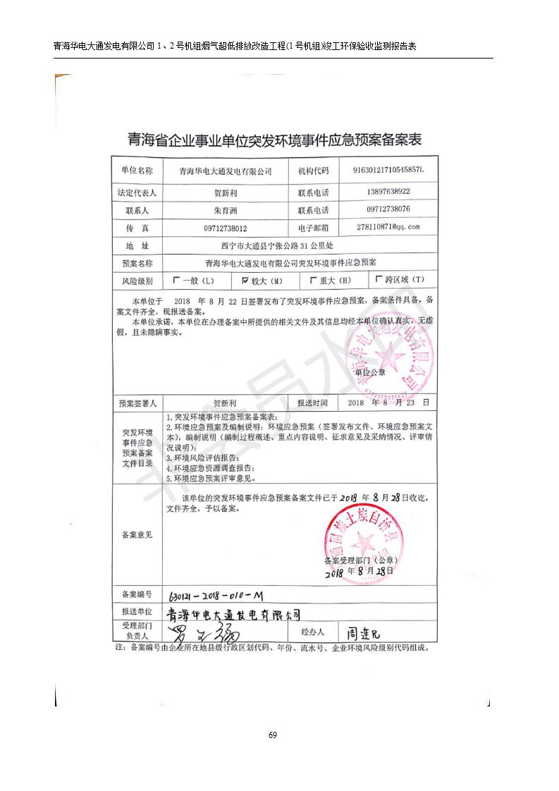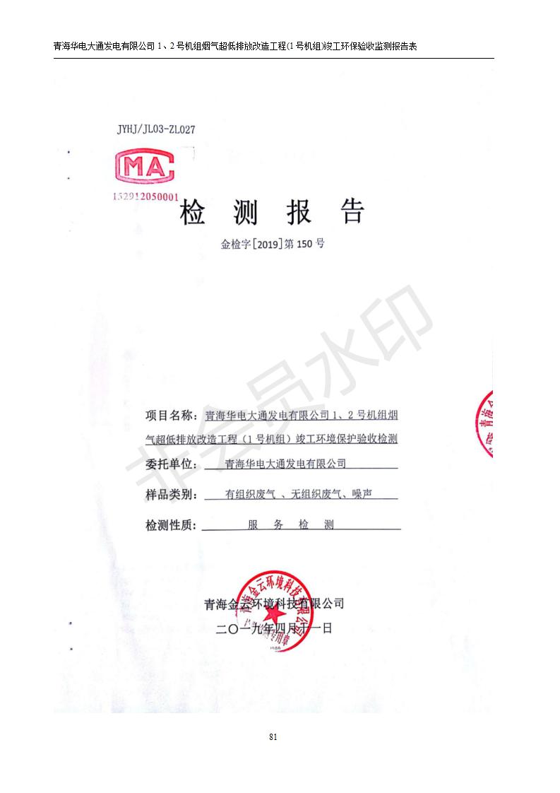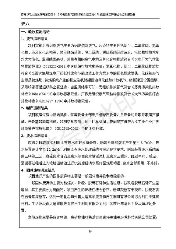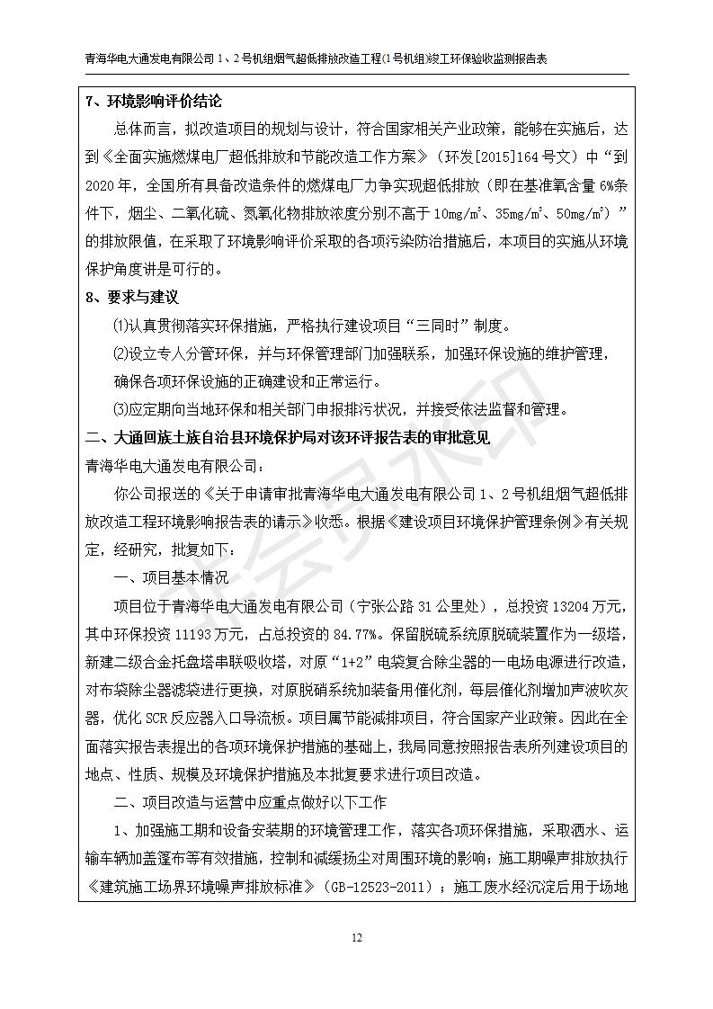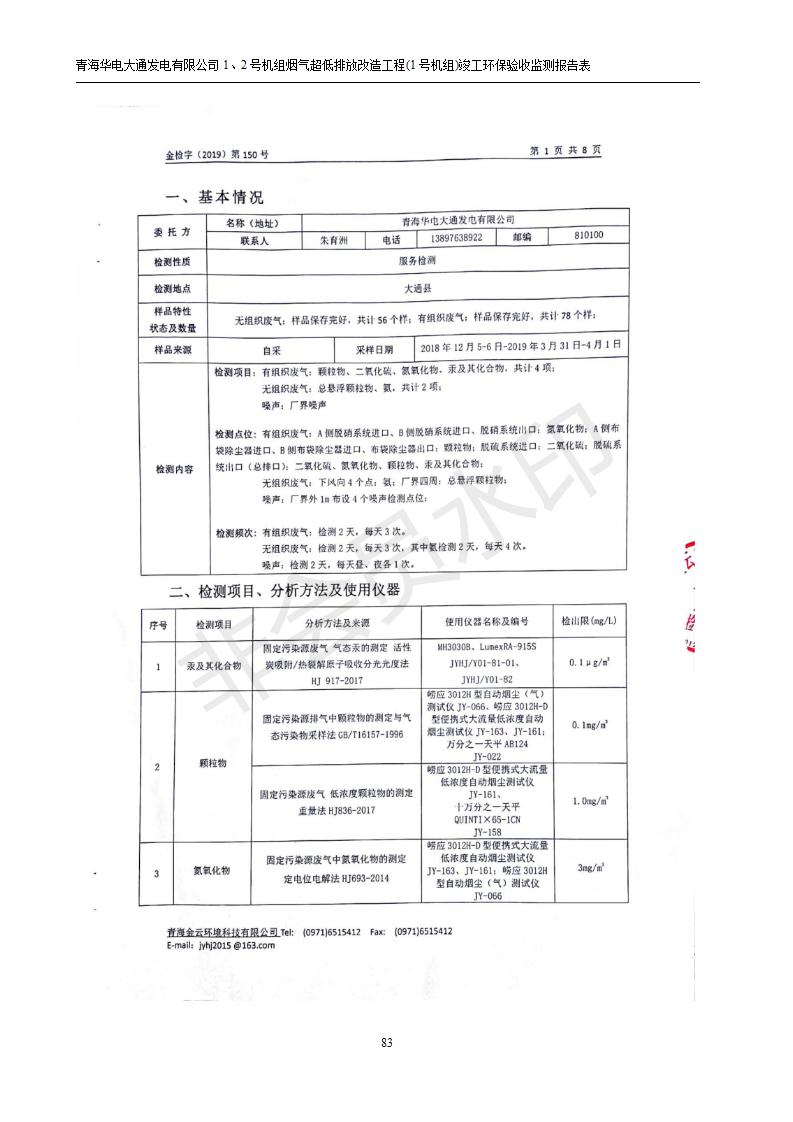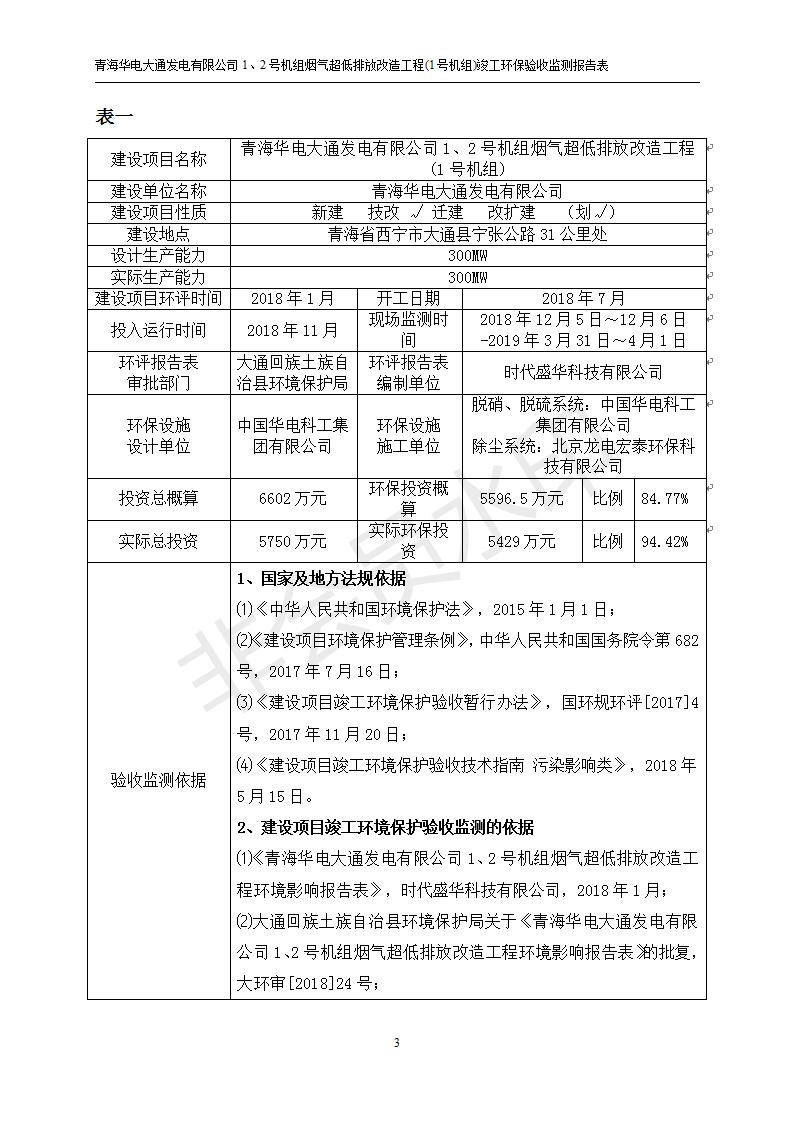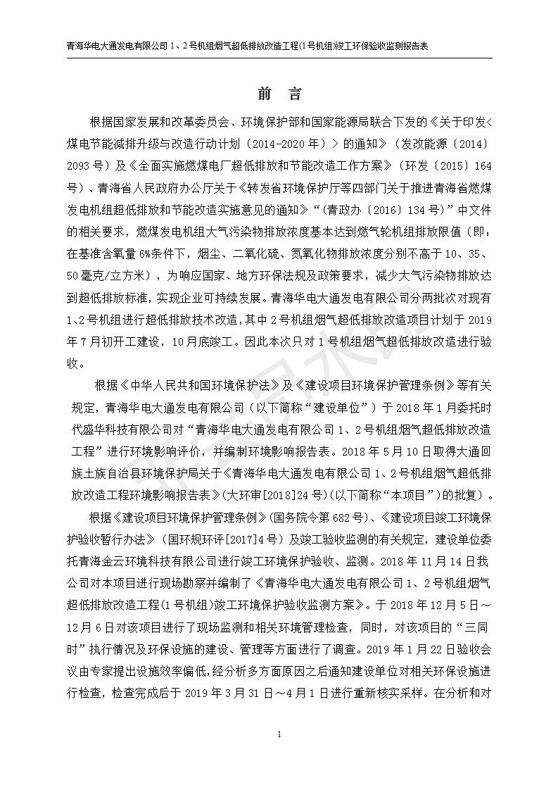 青海華電大通發(fā)電有限公司1、2號機組煙氣超低排放改造工程(1號機組) 竣工環(huán)境保護驗收監(jiān)測報告表公示發(fā)布日期:(2019-2-13) 點擊次數(shù):2617 |
