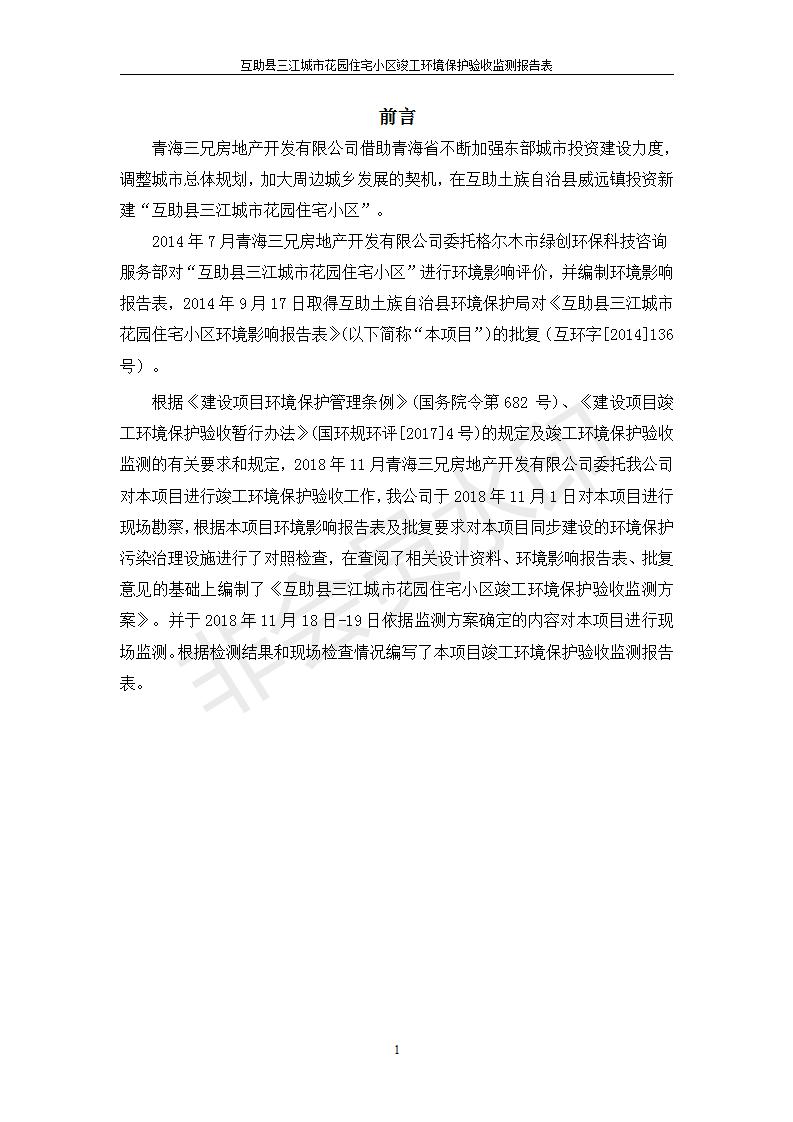 互助縣三江城市花園住宅小區(qū)竣工環(huán)境保護(hù)驗(yàn)收監(jiān)測(cè)報(bào)告表公示發(fā)布日期:(2019-6-5) 點(diǎn)擊次數(shù):2488 |