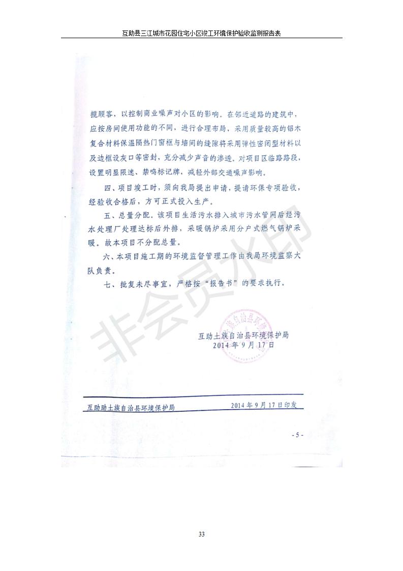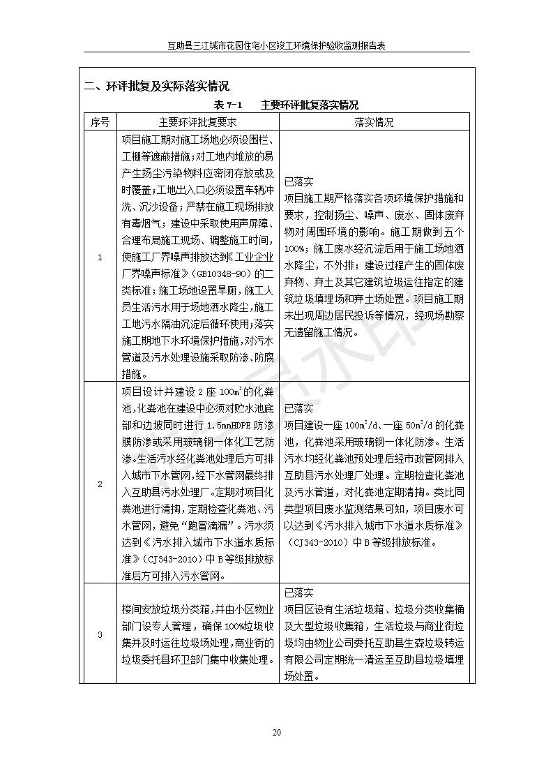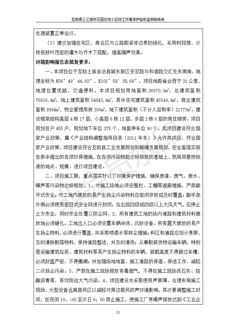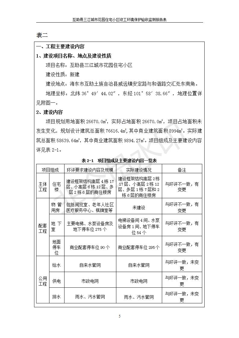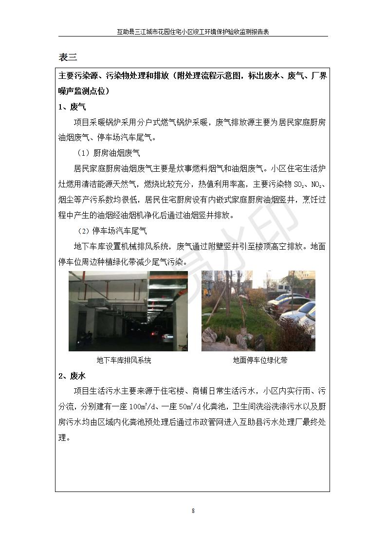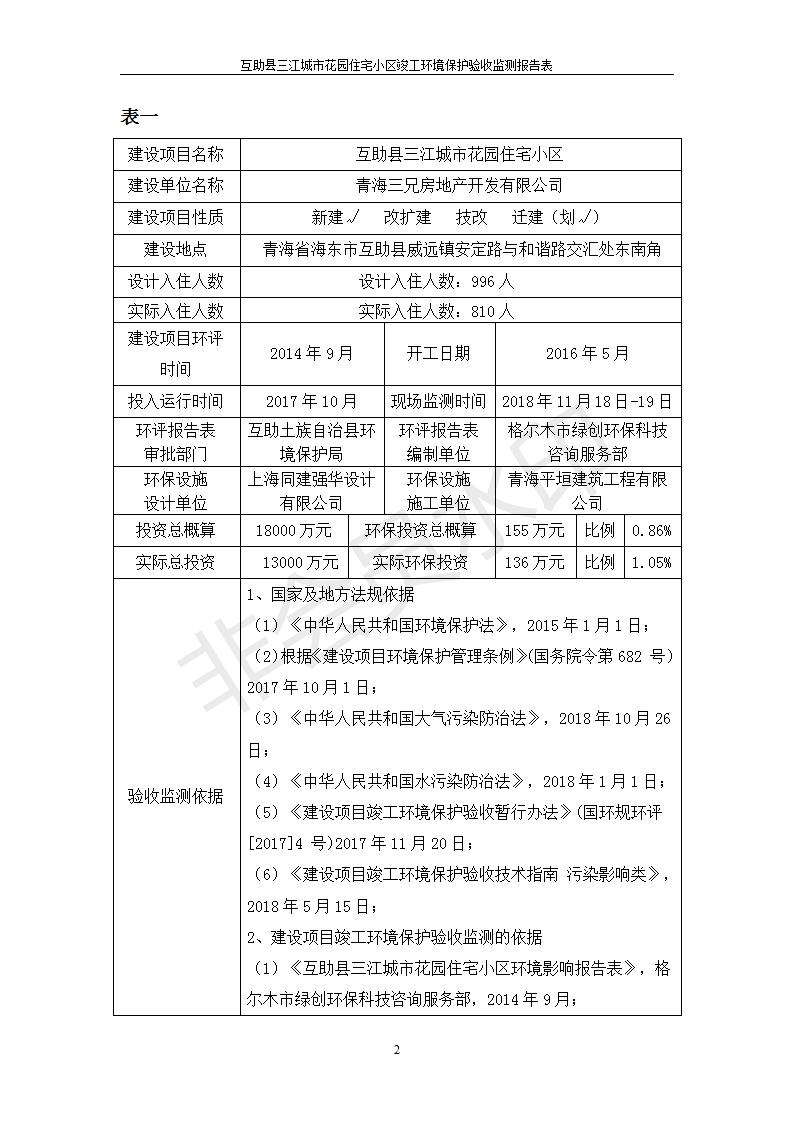 根據(jù)中華人民共和國(guó)國(guó)務(wù)院令第682號(hào)《國(guó)務(wù)院關(guān)于修改〈建設(shè)項(xiàng)目環(huán)境保護(hù)管理?xiàng)l例〉的決定》和《建設(shè)項(xiàng)目竣工環(huán)境保護(hù)驗(yàn)收暫行辦法》(國(guó)務(wù)院令682號(hào)),互助縣三江城市花園住宅小區(qū)(包括竣工環(huán)境保護(hù)驗(yàn)收監(jiān)測(cè)報(bào)告表和驗(yàn)收意見)公示如下。 一、項(xiàng)目名稱: 互助縣三江城市花園住宅小區(qū)竣工環(huán)境保護(hù)驗(yàn)收監(jiān)測(cè)報(bào)告表 二、地點(diǎn):青海省海東市互助土族自治縣威遠(yuǎn)鎮(zhèn)安定路與和諧路交匯處東南角 三、建設(shè)單位:青海三兄房地產(chǎn)開發(fā)有限公司 四、建設(shè)內(nèi)容:項(xiàng)目規(guī)劃用地面積26670.0m2,實(shí)際占地面積26670.0m2,項(xiàng)目占地面積未發(fā)生變化,規(guī)劃設(shè)計(jì)建筑總面積76616.4m2,其中商業(yè)建筑面積8994m2。實(shí)際建筑總面積58639.64m2,其中商業(yè)建筑面積9894.27m2。 五、聯(lián)系人:張工 六、聯(lián)系電 話:0971-6515411 七、公示時(shí)間:二〇一九年六月五日至二〇一九年七月三日 公示期間,對(duì)上述公示內(nèi)容如有異議,請(qǐng)以書面形式反饋,個(gè)人須署真實(shí)姓名,單位須加蓋公章。