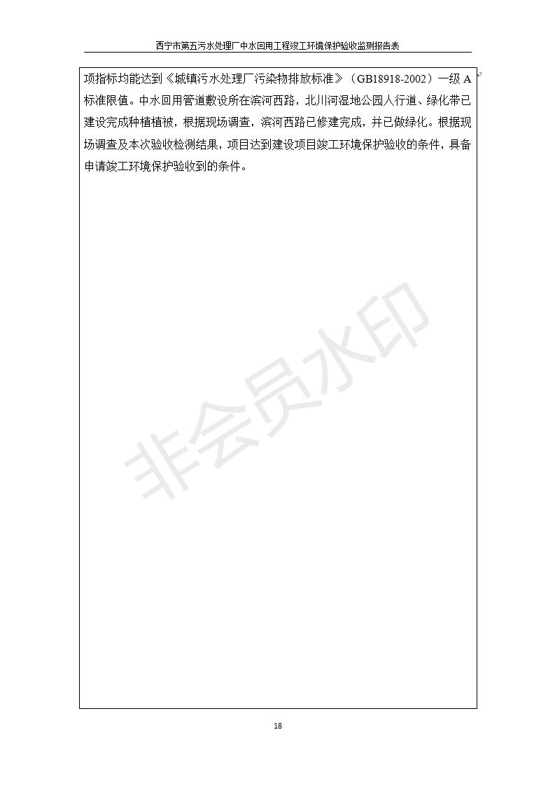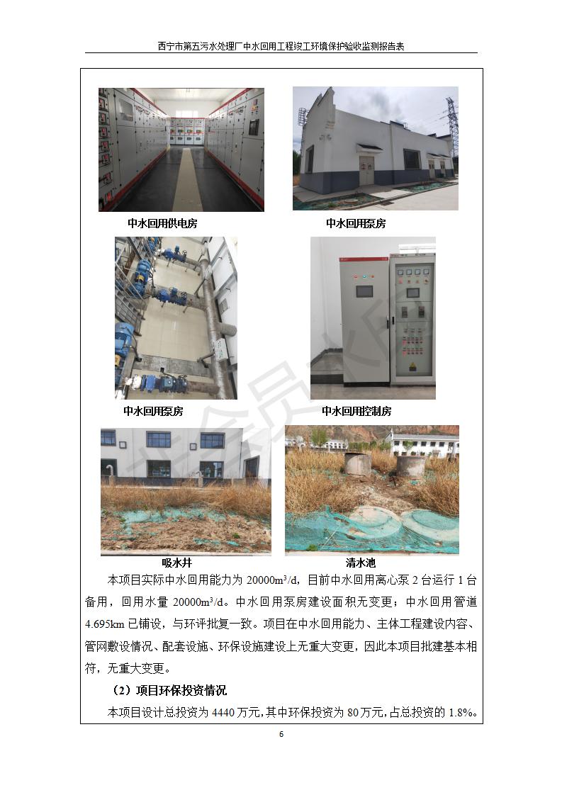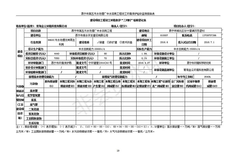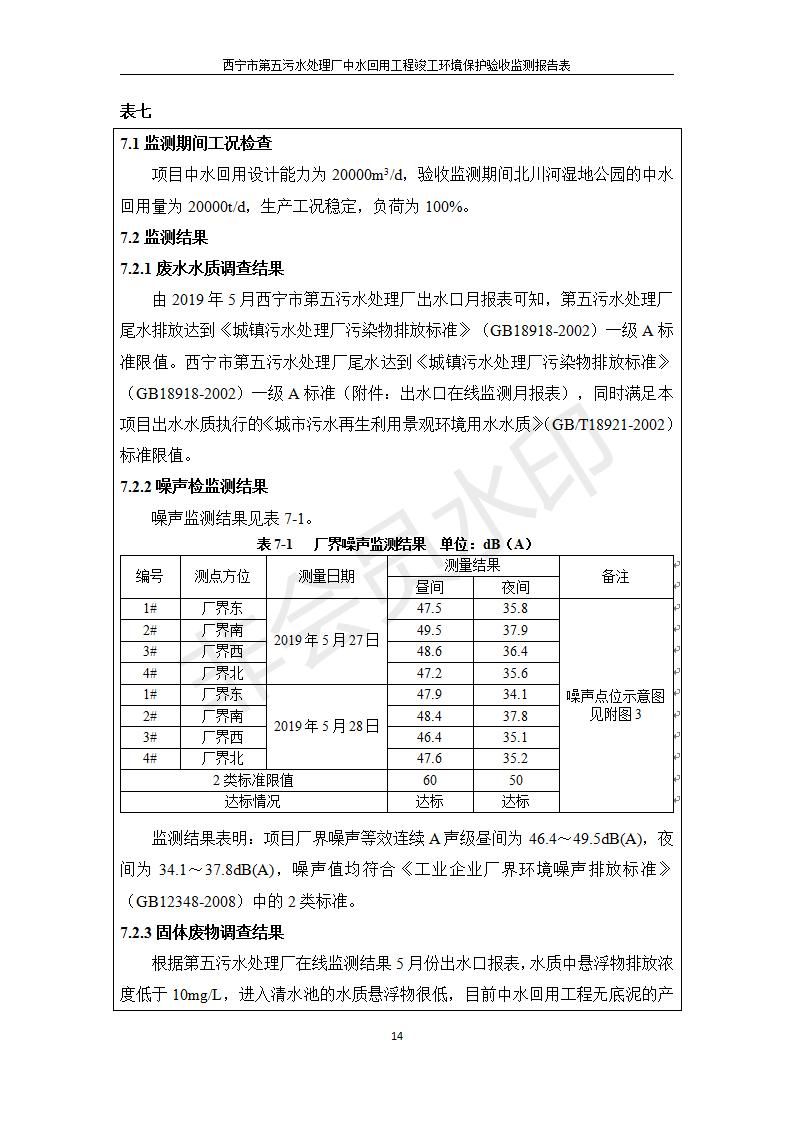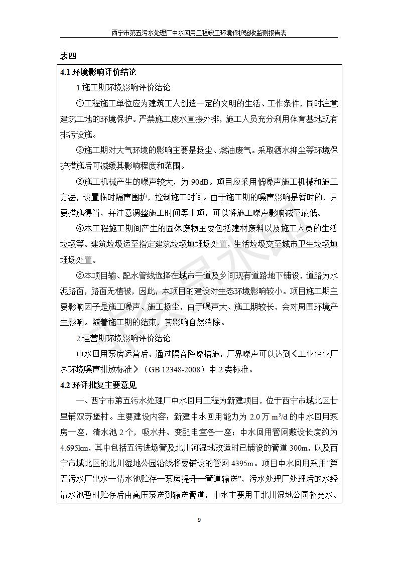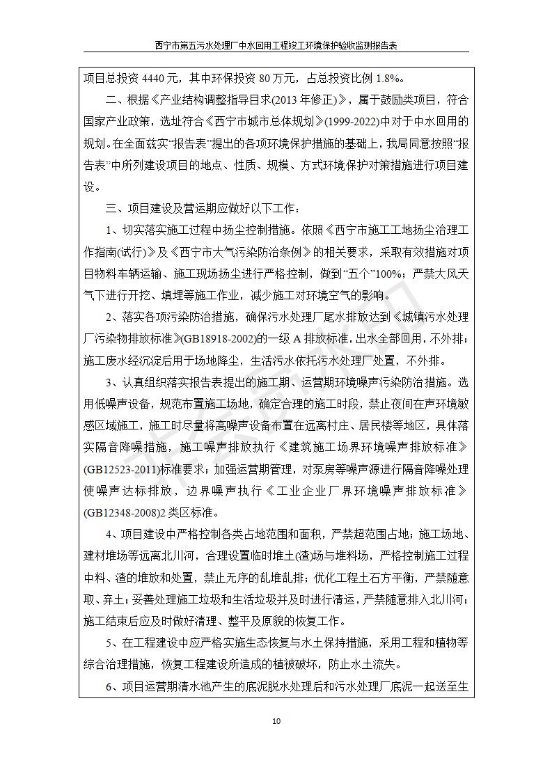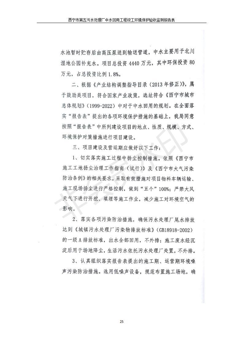 根據(jù)中華人民共和國(guó)國(guó)務(wù)院令第682號(hào)《國(guó)務(wù)院關(guān)于修改〈建設(shè)項(xiàng)目環(huán)境保護(hù)管理?xiàng)l例〉的決定》和《建設(shè)項(xiàng)目竣工環(huán)境保護(hù)驗(yàn)收暫行辦法》(國(guó)務(wù)院令682號(hào)),西寧市第五污水處理廠(chǎng)中水回用工程建設(shè)項(xiàng)目(包括竣工環(huán)境保護(hù)驗(yàn)收監(jiān)測(cè)報(bào)告表和驗(yàn)收意見(jiàn))公示如下。 一、項(xiàng)目名稱(chēng):西寧市第五污水處理廠(chǎng)中水回用工程建設(shè)項(xiàng)目 二、地點(diǎn):西寧市城北區(qū)廿十里鋪雙蘇堡 三、建設(shè)單位:西寧市排水開(kāi)發(fā)建設(shè)有限公司