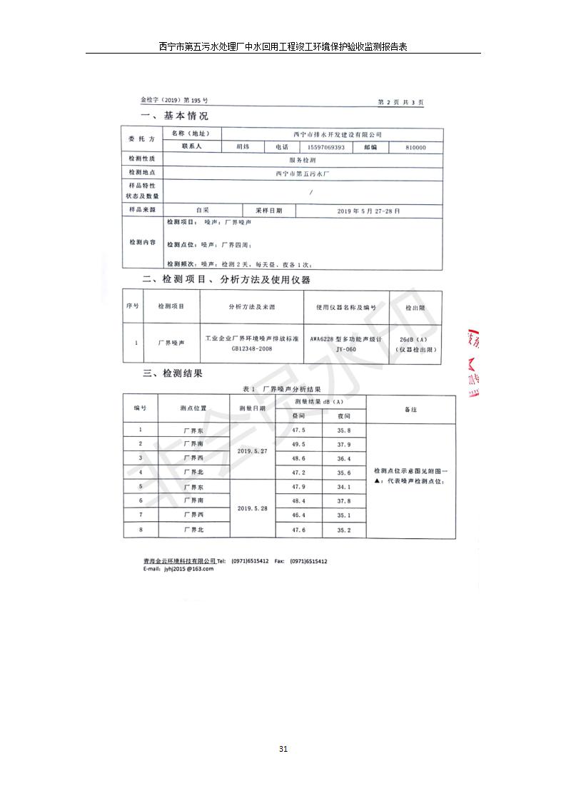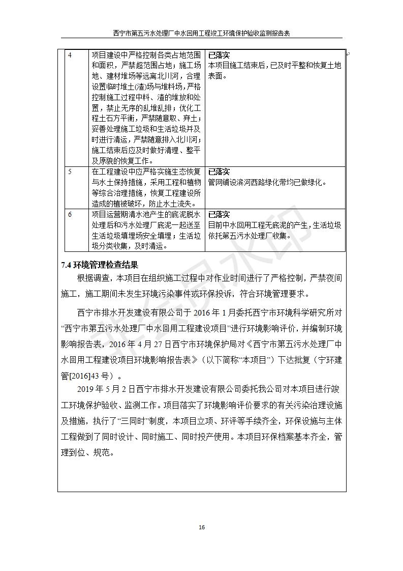 西寧市第五污水處理廠(chǎng)中水回用工程建設(shè)項(xiàng)目竣工環(huán)境保護(hù)驗(yàn)收監(jiān)測(cè)報(bào)告表公示發(fā)布日期:(2019-7-10) 點(diǎn)擊次數(shù):2373 |