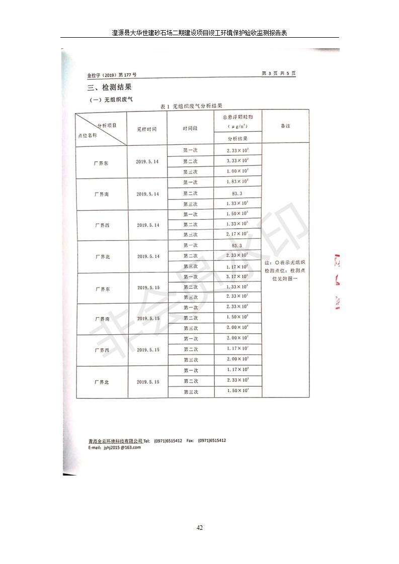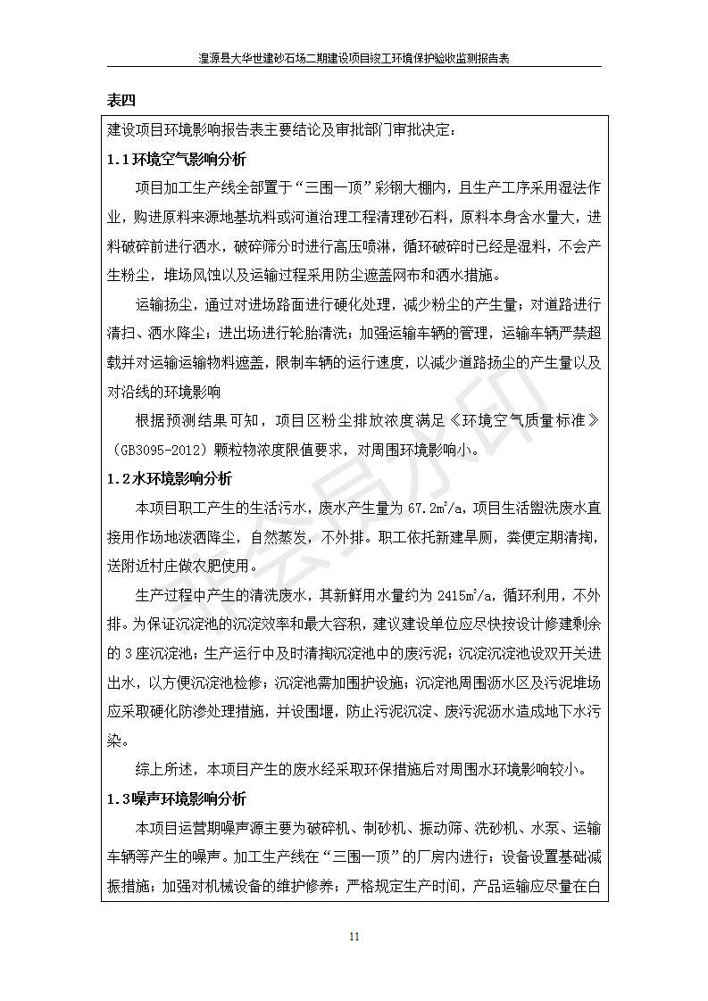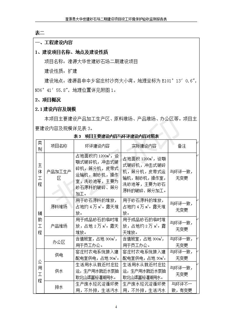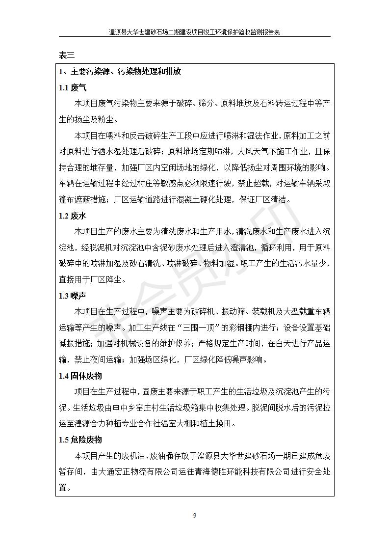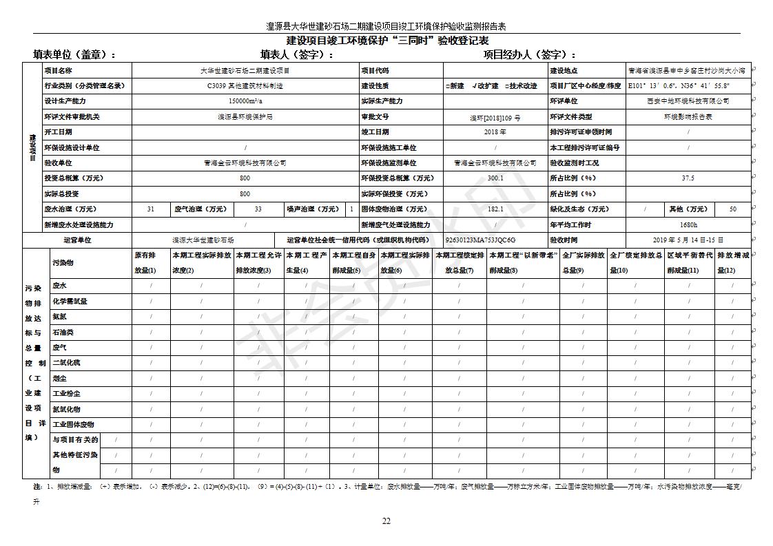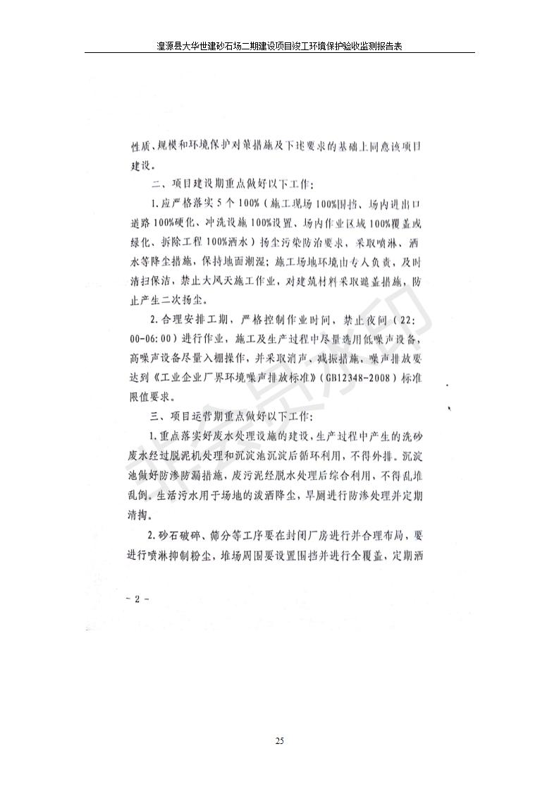 根據(jù)中華人民共和國國務(wù)院令第682號(hào)《國務(wù)院關(guān)于修改〈建設(shè)項(xiàng)目環(huán)境保護(hù)管理?xiàng)l例〉的決定》和《建設(shè)項(xiàng)目竣工環(huán)境保護(hù)驗(yàn)收暫行辦法》(國務(wù)院令682號(hào)),湟源大華世建砂石場湟源縣大華世建砂石場二期建設(shè)項(xiàng)目(包括竣工環(huán)境保護(hù)驗(yàn)收監(jiān)測報(bào)告表和驗(yàn)收意見)公示如下。 一、項(xiàng)目名稱:湟源縣大華世建砂石場二期建設(shè)項(xiàng)目 二、地點(diǎn):湟源縣申中鄉(xiāng)窯莊村沙崗大小灣 三、建設(shè)單位:湟源大華世建砂石場 四、建設(shè)內(nèi)容:項(xiàng)目主要建設(shè)砂石料產(chǎn)品加工生產(chǎn)區(qū)、原料堆場、產(chǎn)品堆場、辦公區(qū)等。五、聯(lián)系人:張工 六、聯(lián)系電 話:0971-6515411 七、公示時(shí)間:二〇一九年七月二十五日至二〇一九年八月二十一日公示期間,對(duì)上述公示內(nèi)容如有異議,請(qǐng)以書面形式反饋,個(gè)人須署真實(shí)姓名,單位須加蓋公章。