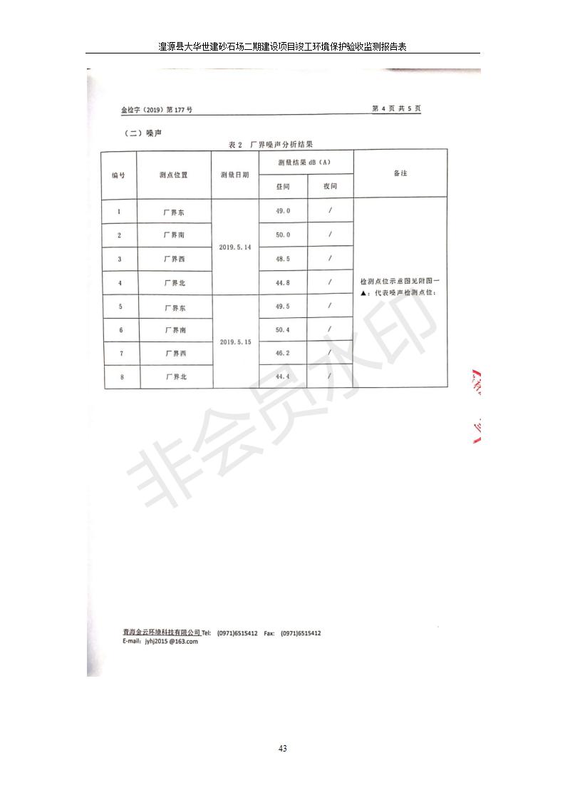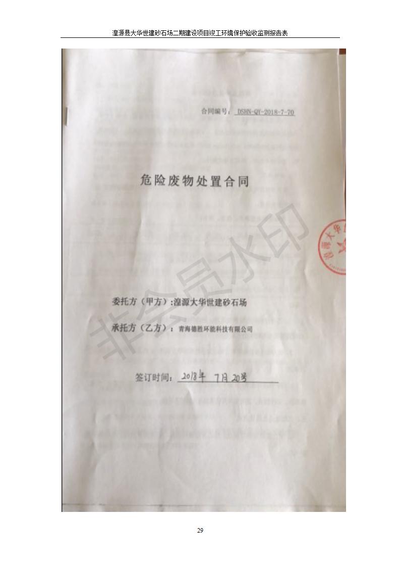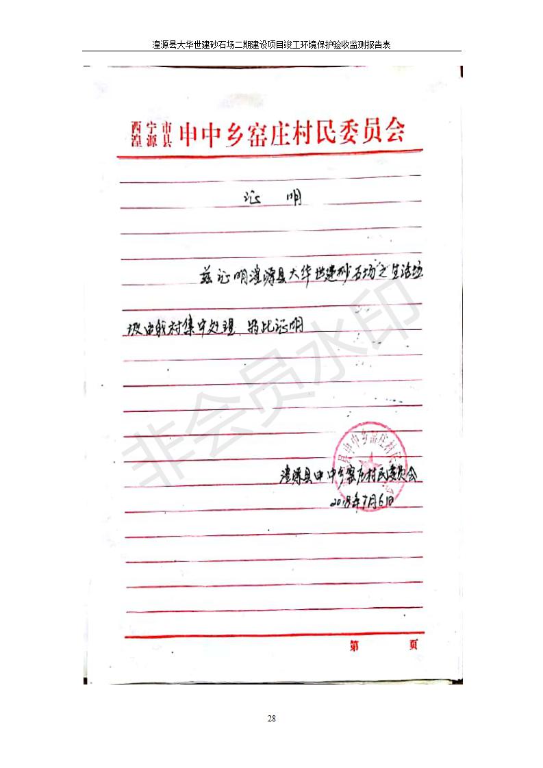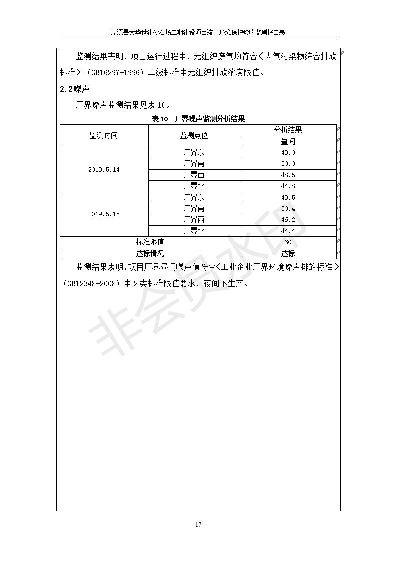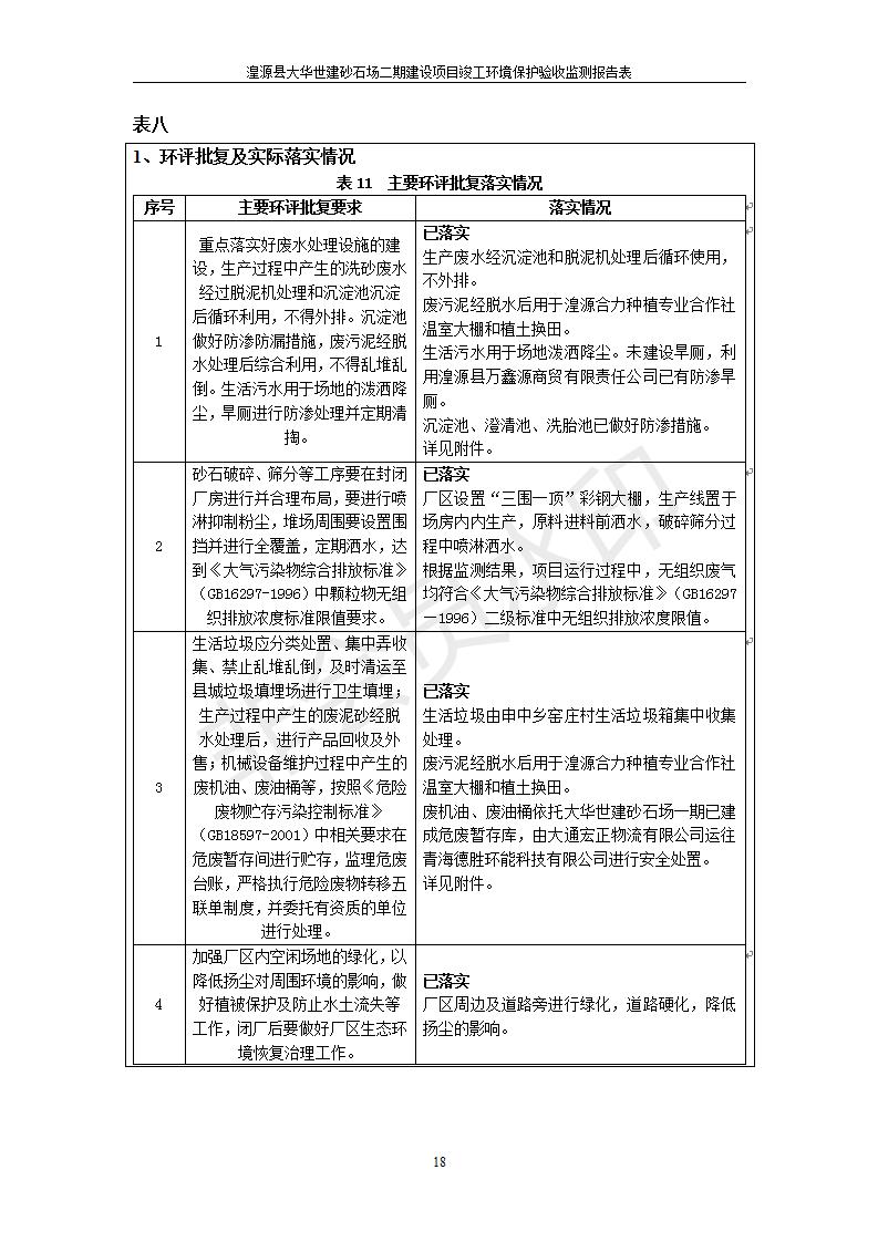 根據(jù)中華人民共和國國務(wù)院令第682號(hào)《國務(wù)院關(guān)于修改〈建設(shè)項(xiàng)目環(huán)境保護(hù)管理?xiàng)l例〉的決定》和《建設(shè)項(xiàng)目竣工環(huán)境保護(hù)驗(yàn)收暫行辦法》(國務(wù)院令682號(hào)),湟源大華世建砂石場湟源縣大華世建砂石場二期建設(shè)項(xiàng)目(包括竣工環(huán)境保護(hù)驗(yàn)收監(jiān)測報(bào)告表和驗(yàn)收意見)公示如下。 一、項(xiàng)目名稱:湟源縣大華世建砂石場二期建設(shè)項(xiàng)目 二、地點(diǎn):湟源縣申中鄉(xiāng)窯莊村沙崗大小灣 三、建設(shè)單位:湟源大華世建砂石場 四、建設(shè)內(nèi)容:項(xiàng)目主要建設(shè)砂石料產(chǎn)品加工生產(chǎn)區(qū)、原料堆場、產(chǎn)品堆場、辦公區(qū)等。五、聯(lián)系人:張工 六、聯(lián)系電 話:0971-6515411 七、公示時(shí)間:二〇一九年七月二十五日至二〇一九年八月二十一日公示期間,對(duì)上述公示內(nèi)容如有異議,請(qǐng)以書面形式反饋,個(gè)人須署真實(shí)姓名,單位須加蓋公章。
