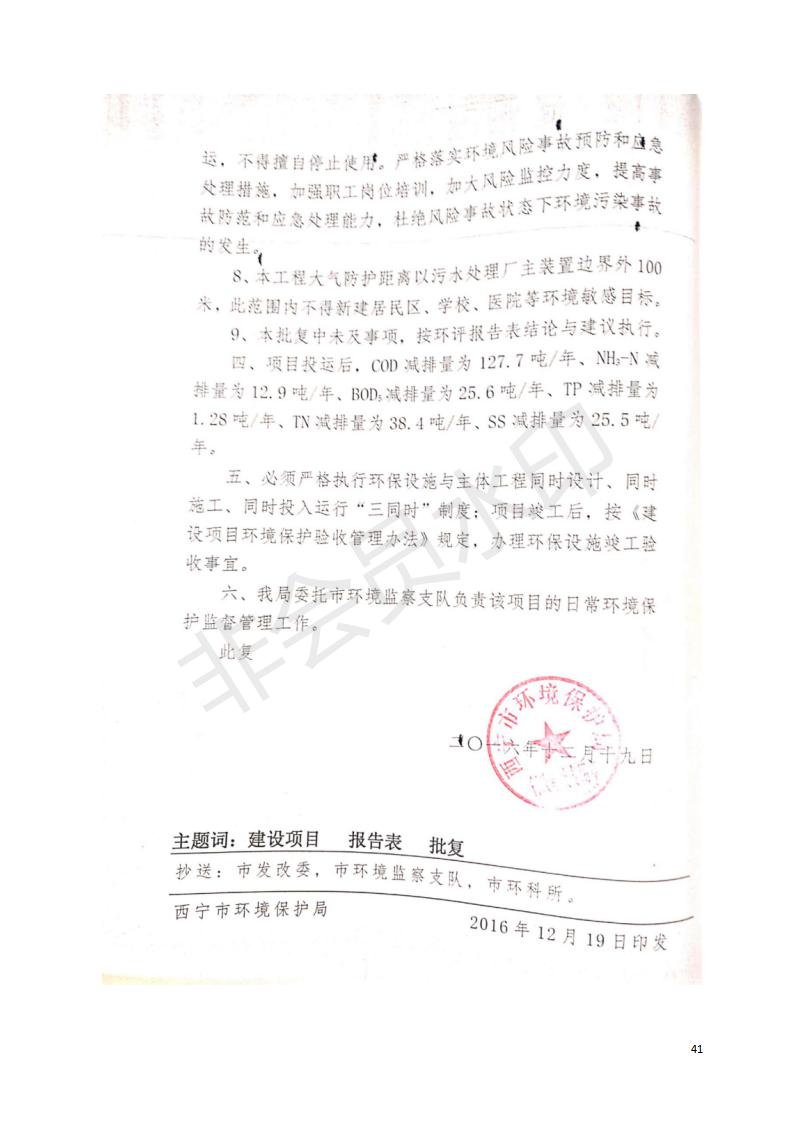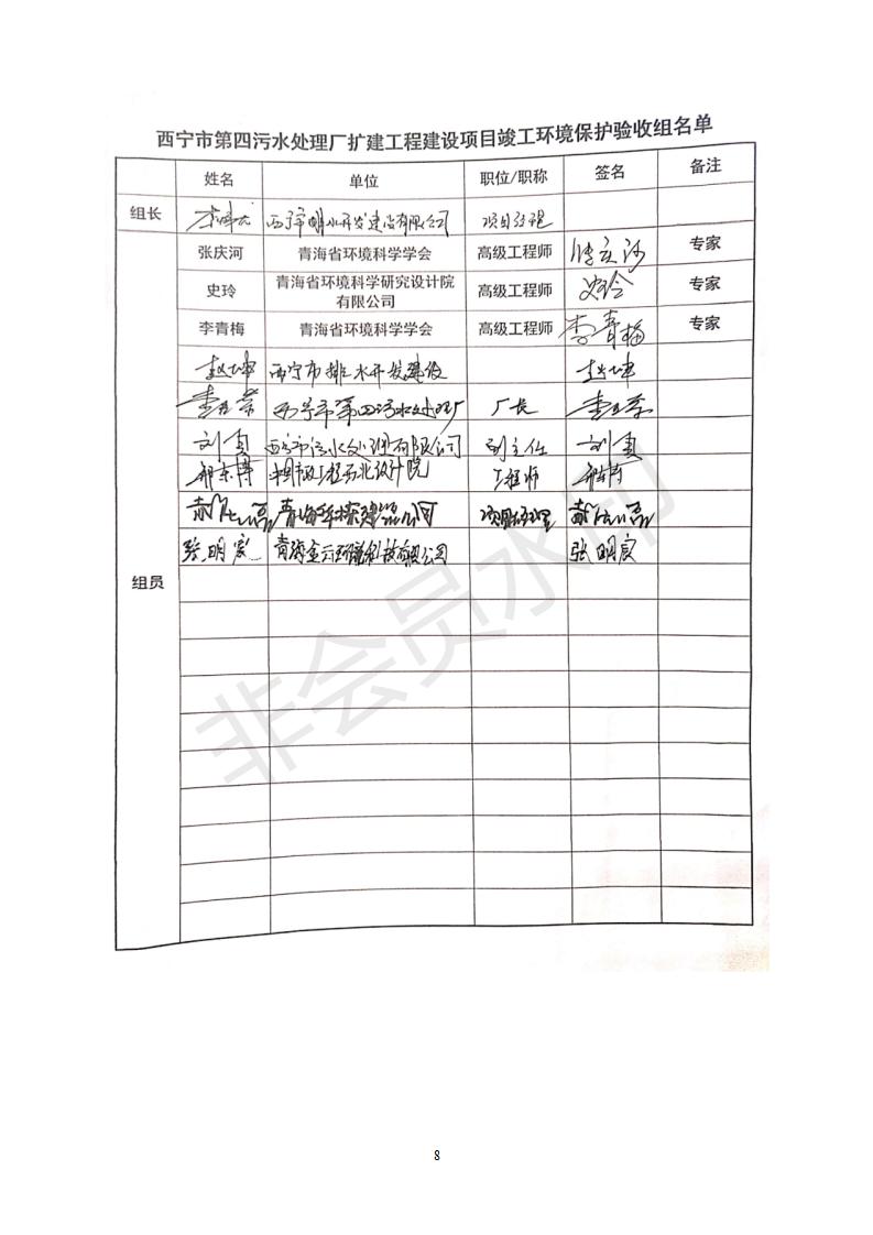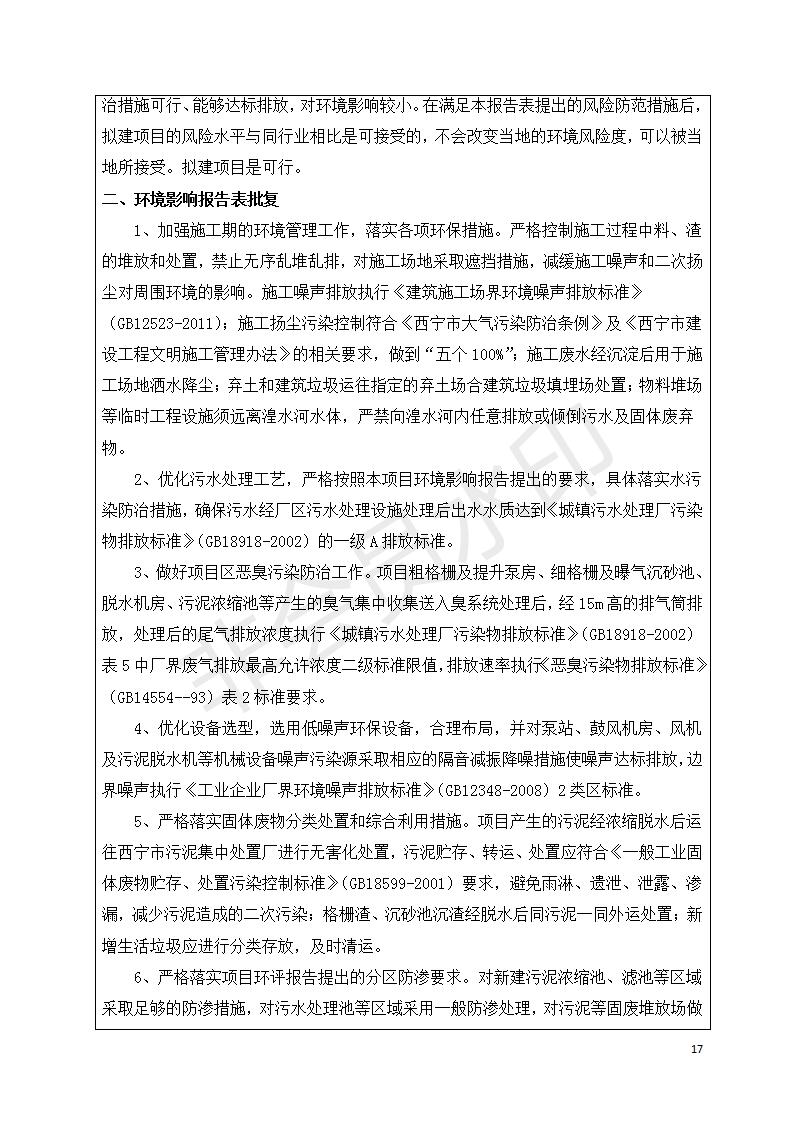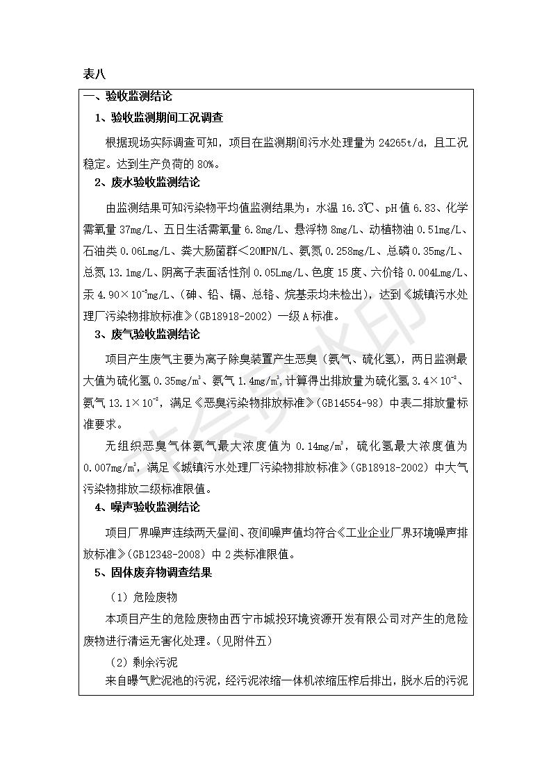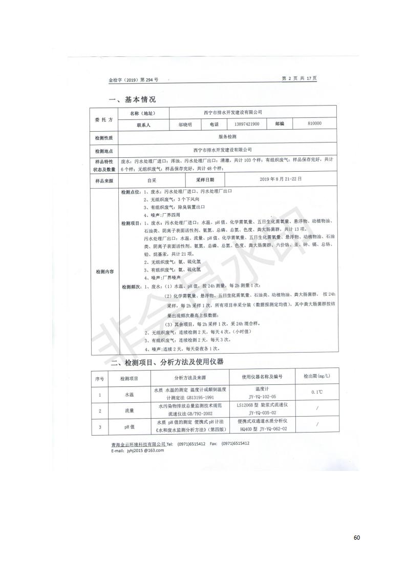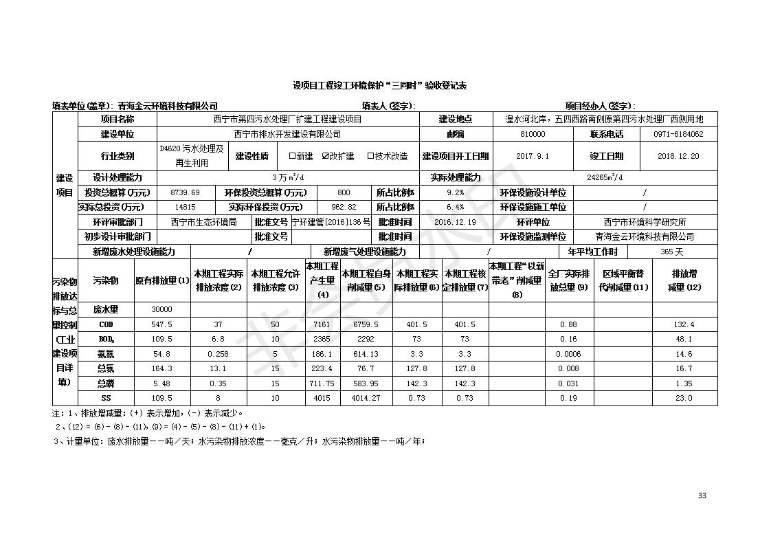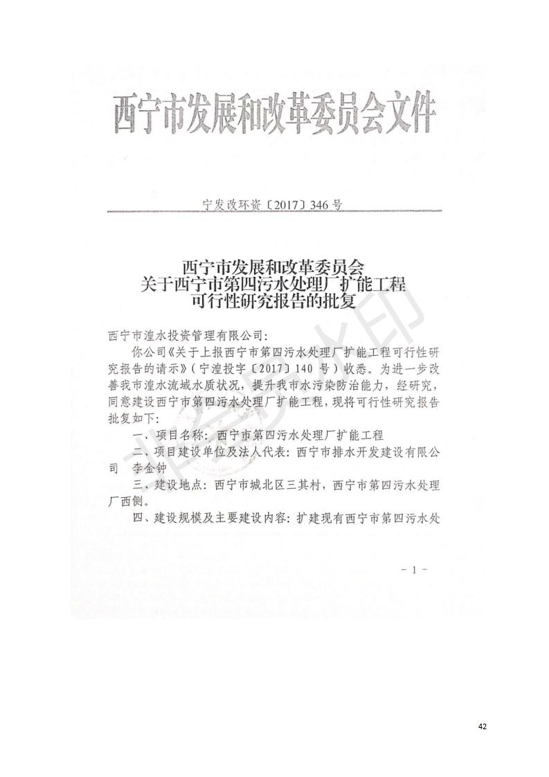 根據中華人民共和國國務院令第682號《國務院關于修改〈建設項目環(huán)境保護管理條例〉的決定》和《建設項目竣工環(huán)境保護驗收暫行辦法》(國務院令682號),西寧市第四污水處理廠擴建工程建設項目(包括竣工環(huán)境保護驗收監(jiān)測報告表和驗收意見)公示如下。 一、項目名稱:西寧市第四污水處理廠擴建工程建設項目 二、地點:五四西路南側,原西寧市第四污水處理廠西側用地 三、建設單位:西寧市排水開發(fā)建設有限公司 四、建設內容:第四污水處理廠擴建工程五、聯(lián)系人:張工 六、聯(lián)系電 話:0971-6515411 七、公示時間:二〇一九年九月十七日至二〇一九年十月十八日公示期間,對上述公示內容如有異議,請以書面形式反饋,個人須署真實姓名,單位須加蓋公章。
