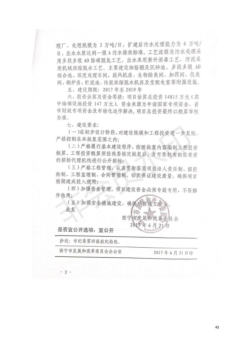 西寧市第四污水處理廠擴建工程建設項目竣工環(huán)境保護驗收監(jiān)測報告表公示發(fā)布日期:(2019-9-17) 點擊次數:2633 |