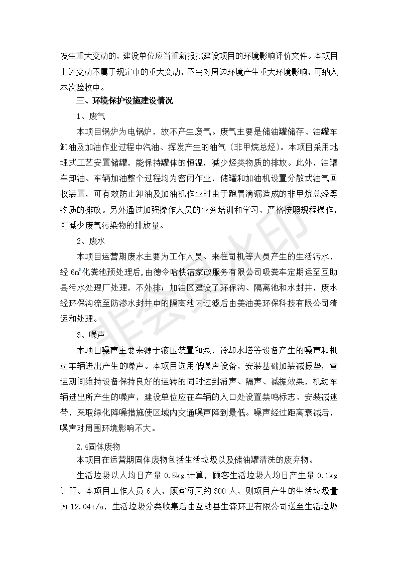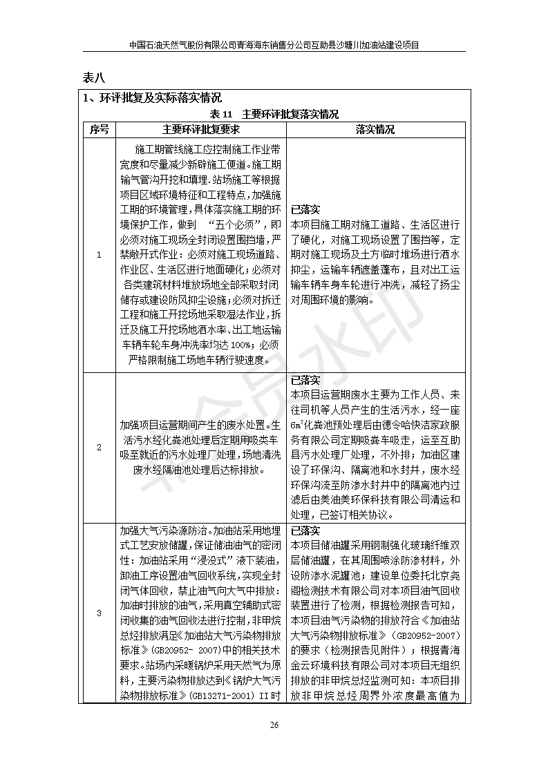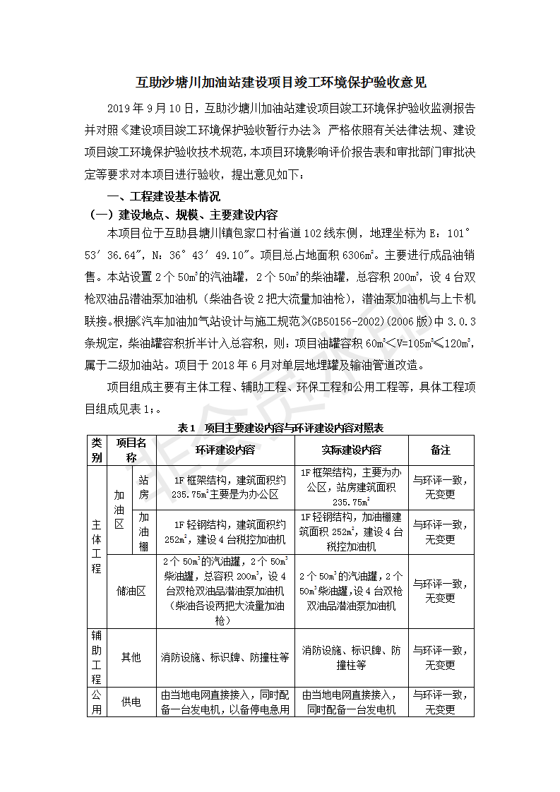 根據中華人民共和國國務院令第682號《國務院關于修改〈建設項目環(huán)境保護管理條例〉的決定》和《建設項目竣工環(huán)境保護驗收暫行辦法》(國務院令682號),互助縣沙塘川加油站建設項目(包括竣工環(huán)境保護驗收監(jiān)測報告表和驗收意見)公示如下。 一、項目名稱:互助縣沙塘川加油站建設項目 二、地點:互助縣塘川鎮(zhèn)包家口村 六、聯(lián)系電話:0971-6515411 七、公示時間:二〇一九年九月二十七日至二〇一九年十月二十九日 公示期間,對上述公示內容如有異議,請以書面形式反饋,個人須署真實姓名,單位須加蓋公章。