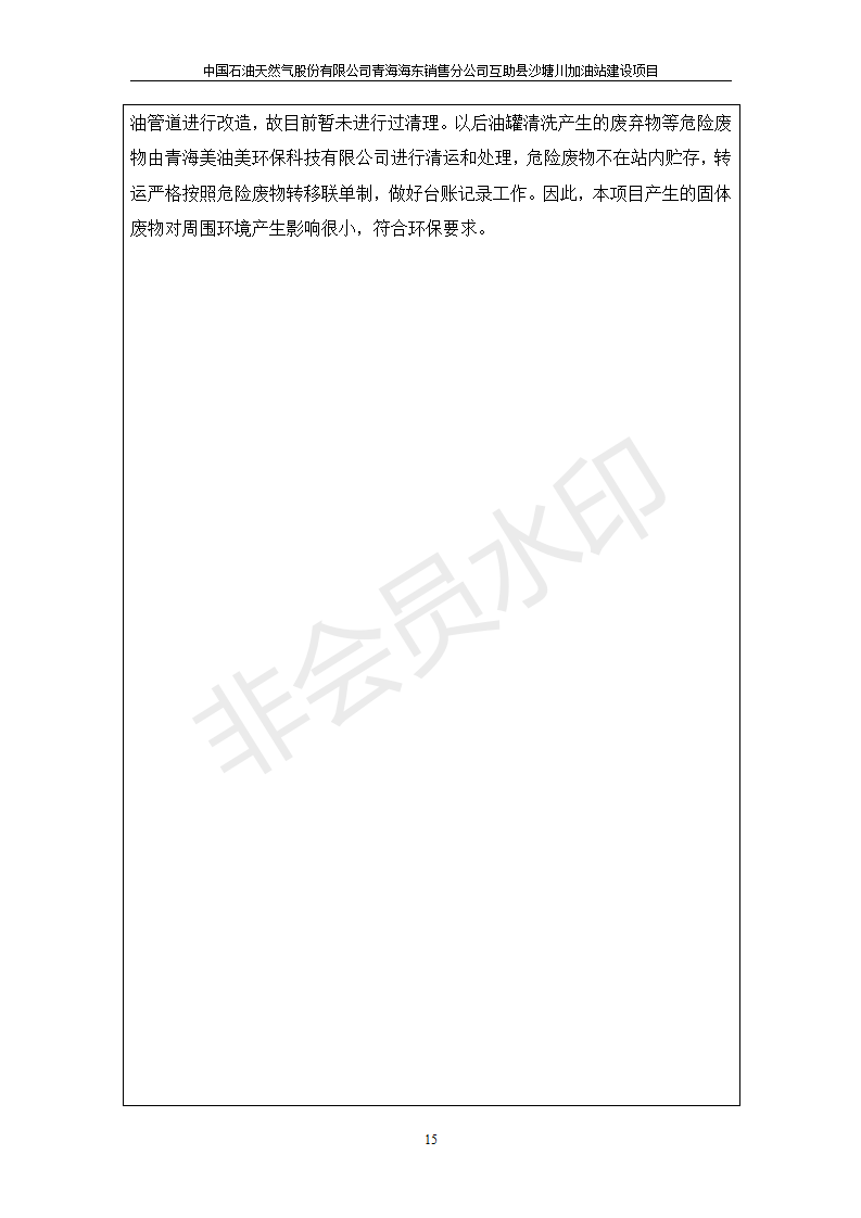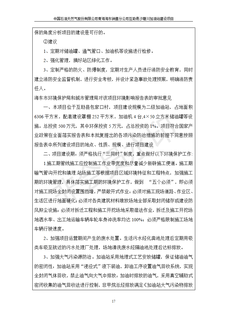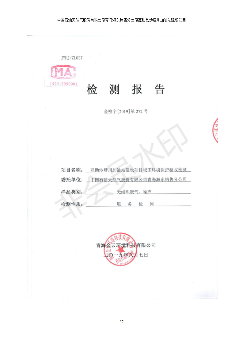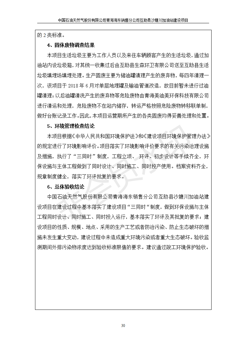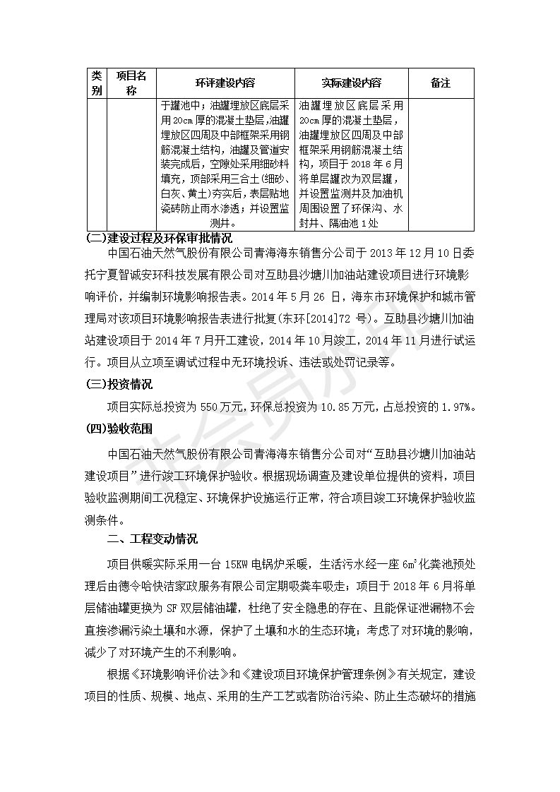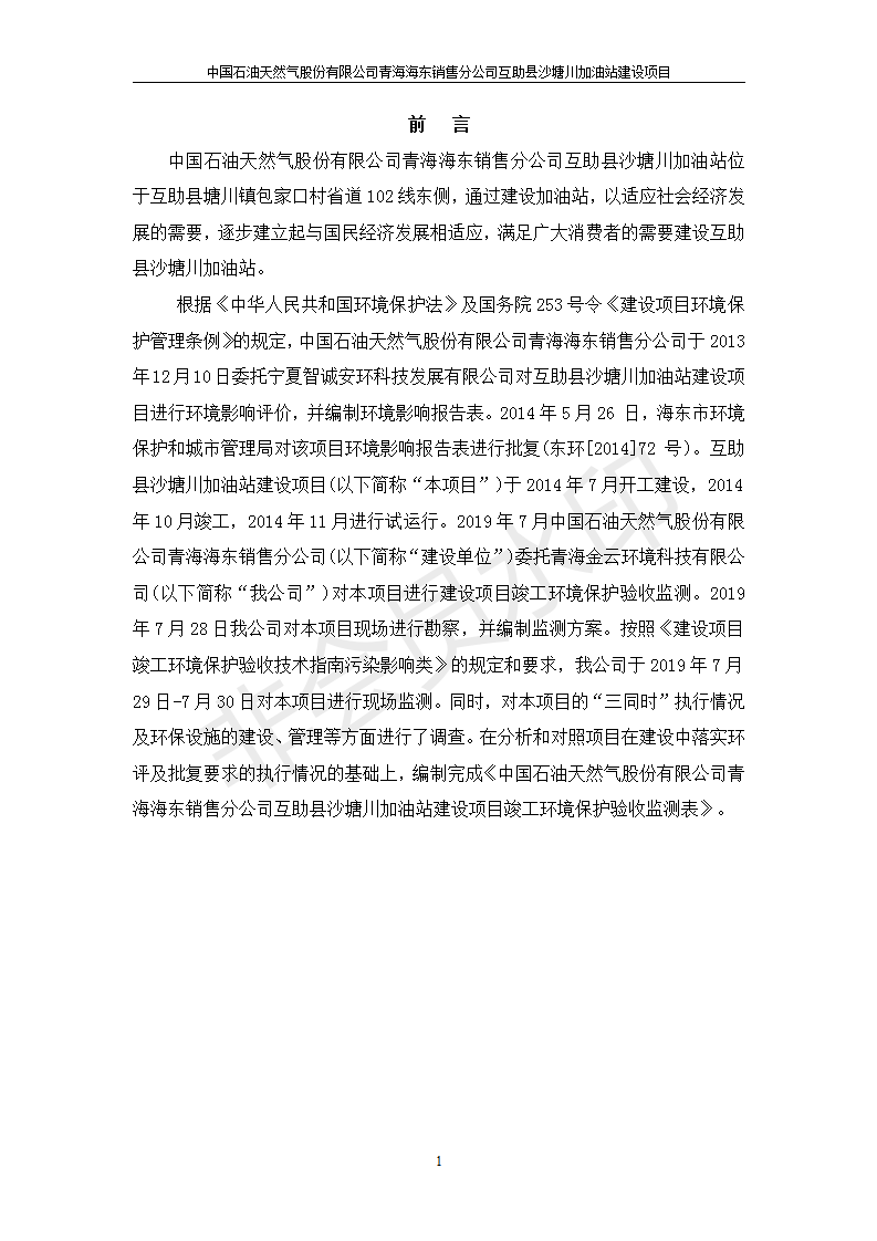 互助縣沙塘川加油站建設項目竣工環(huán)境保護驗收監(jiān)測報告表發(fā)布日期:(2019-9-27) 點擊次數(shù):2189 |
