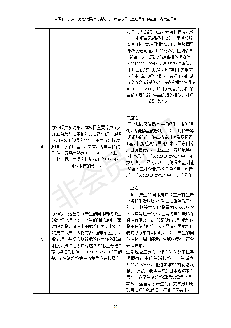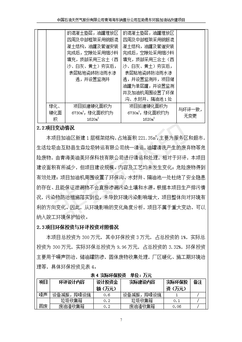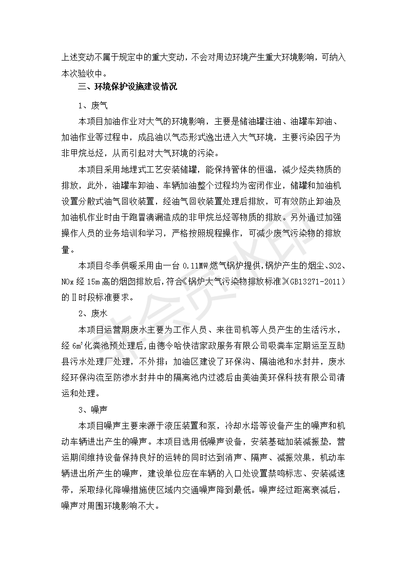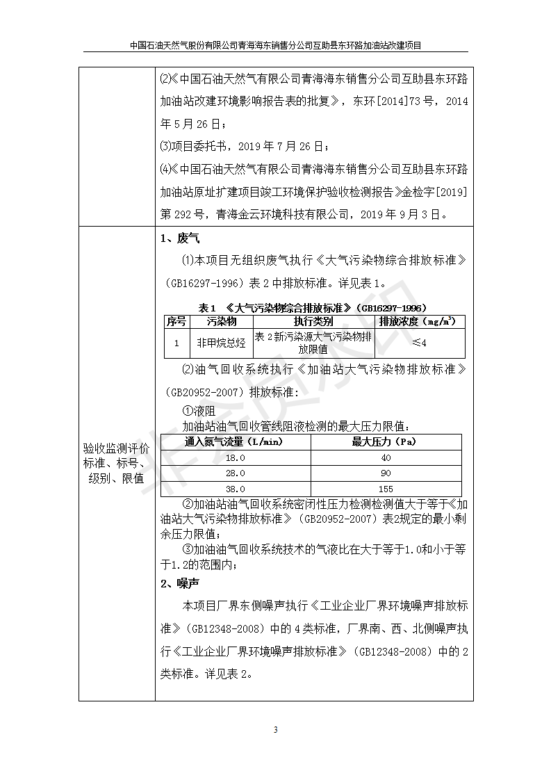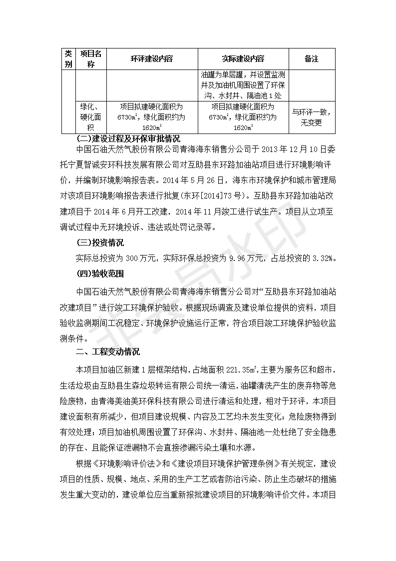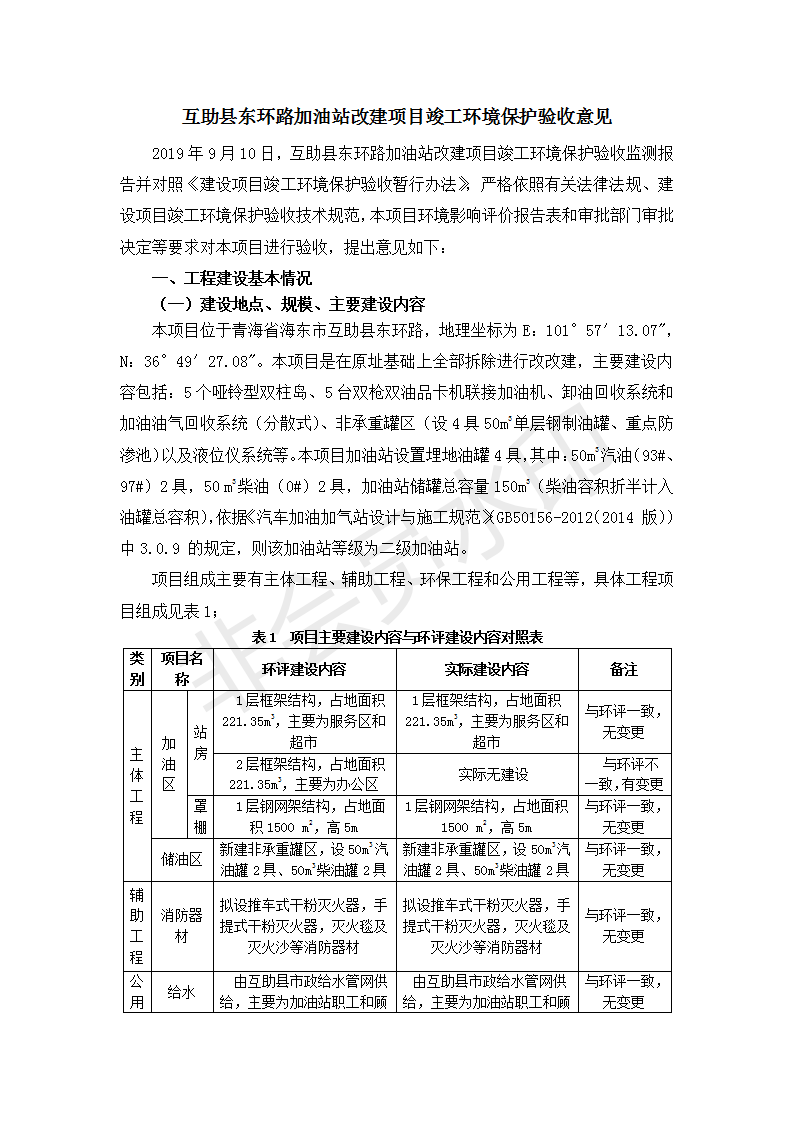 根據中華人民共和國國務院令第682號《國務院關于修改〈建設項目環(huán)境保護管理條例〉的決定》和《建設項目竣工環(huán)境保護驗收暫行辦法》(國務院令682號),互助縣東環(huán)路加油站改建項目(包括竣工環(huán)境保護驗收監(jiān)測報告表和驗收意見)公示如下。 一、項目名稱:互助縣東環(huán)路加油站改建項目 二、地點:青海省海東市互助縣東環(huán)路 六、聯系電話:0971-6515411 七、公示時間:二〇一九年九月二十七日至二〇一九年十月二十九日 公示期間,對上述公示內容如有異議,請以書面形式反饋,個人須署真實姓名,單位須加蓋公章。