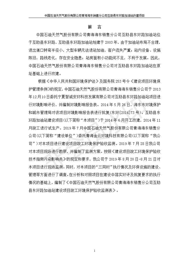 互助縣東環(huán)路加油站改建項目竣工環(huán)境保護驗收監(jiān)測報告表公示發(fā)布日期:(2019-9-27) 點擊次數:2396 |
