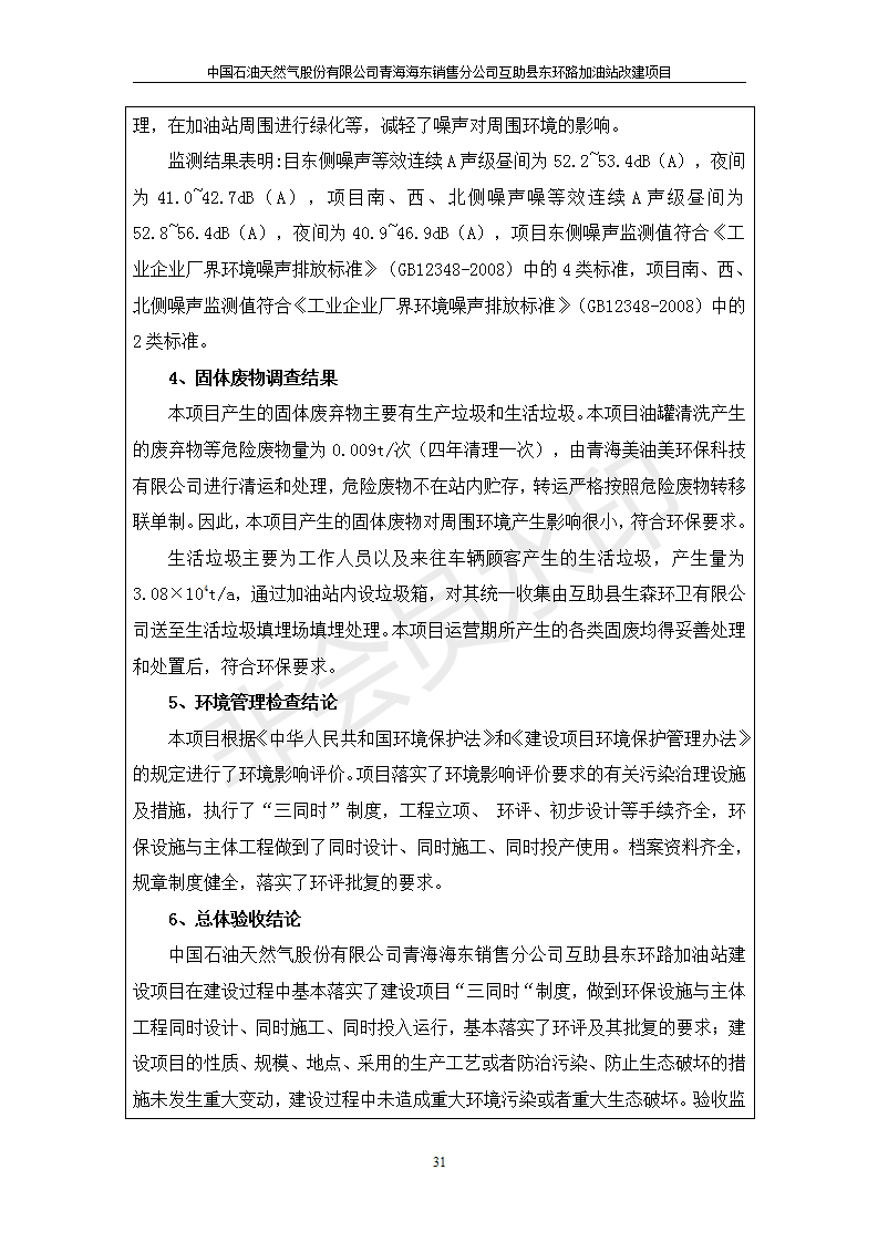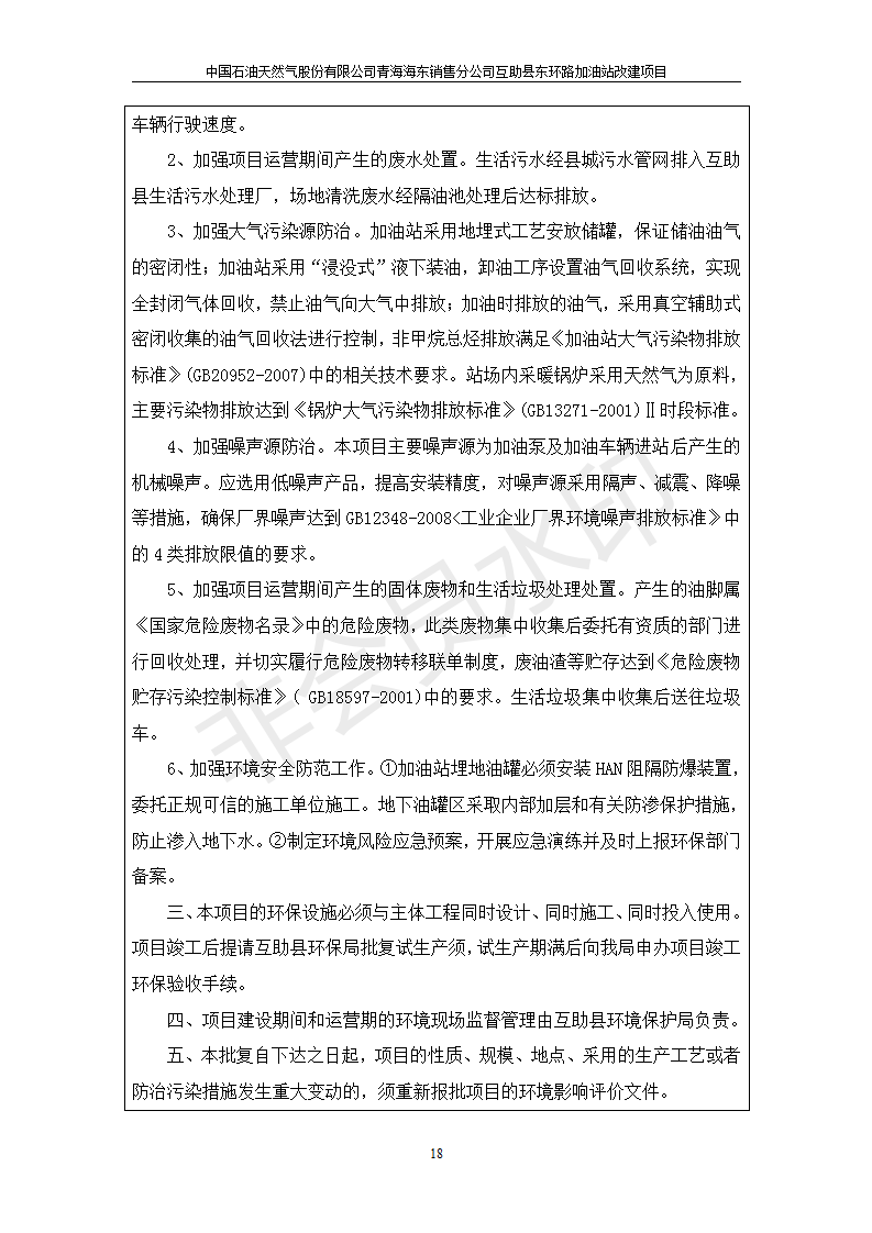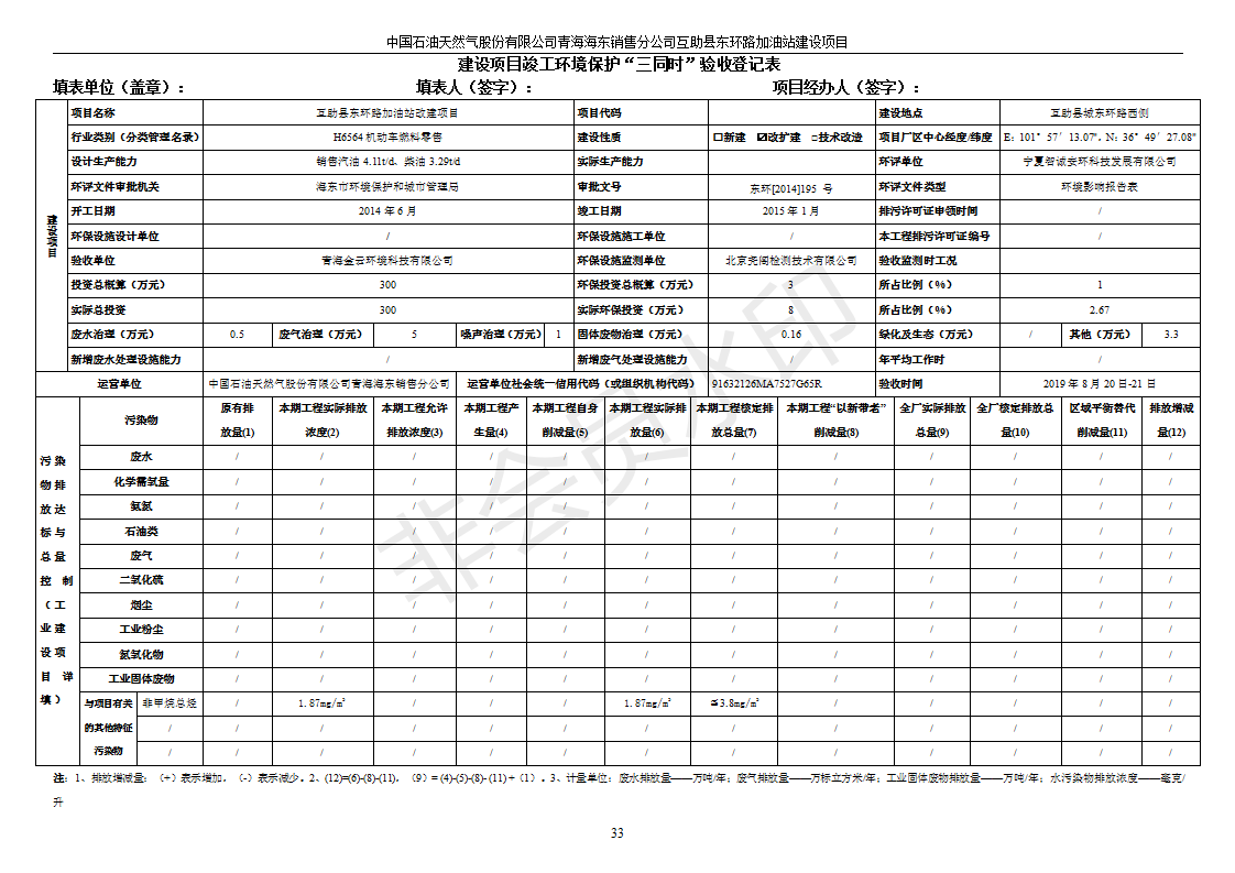| 上一篇:互助縣東和加油站原址擴建項目 竣工環(huán)境保護驗收監(jiān)測報告表公示 | 下一篇:互助縣沙塘川加油站建設項目竣工環(huán)境保護驗收監(jiān)測報告表 |