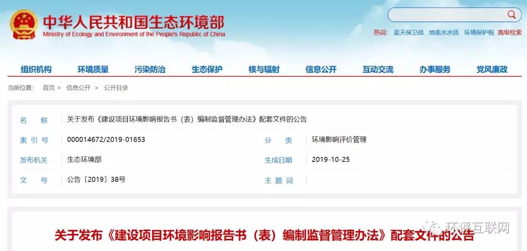 環(huán)境部發(fā)布《建設(shè)項(xiàng)目環(huán)境影響報(bào)告書(表)編制監(jiān)督管理辦法》配套文件發(fā)布日期:(2019-10-28) 點(diǎn)擊次數(shù):2452 |