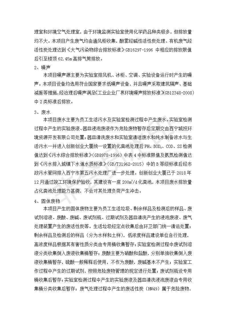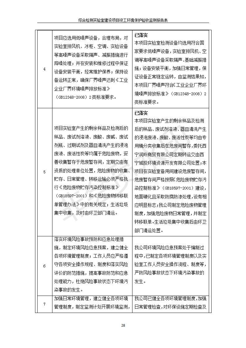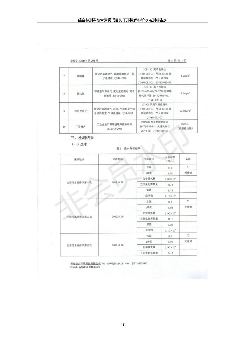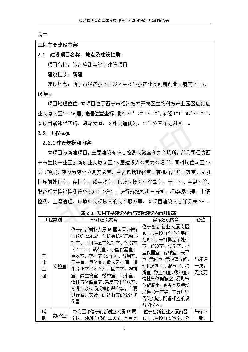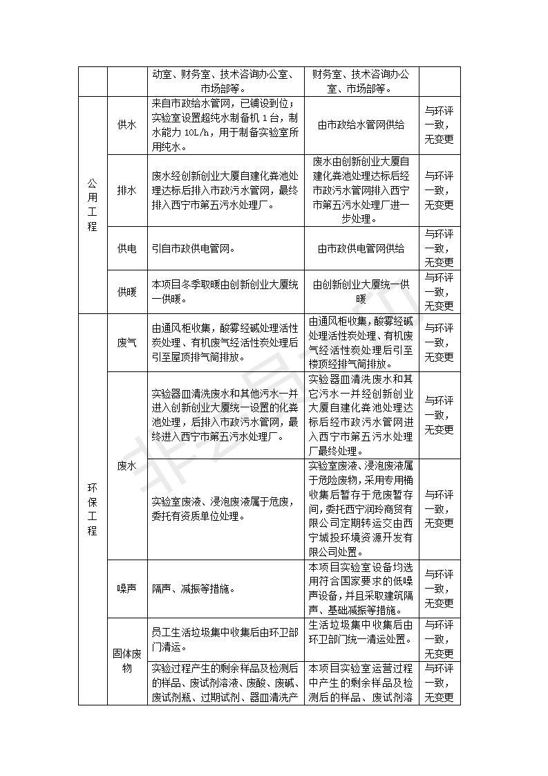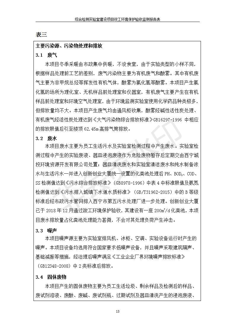 根據(jù)中華人民共和國(guó)國(guó)務(wù)院令第682號(hào)《國(guó)務(wù)院關(guān)于修改〈建設(shè)項(xiàng)目環(huán)境保護(hù)管理?xiàng)l例〉的決定》和《建設(shè)項(xiàng)目竣工環(huán)境保護(hù)驗(yàn)收暫行辦法》(國(guó)務(wù)院令682號(hào)),綜合檢測(cè)實(shí)驗(yàn)室建設(shè)項(xiàng)目(包括竣工環(huán)境保護(hù)驗(yàn)收監(jiān)測(cè)報(bào)告表和驗(yàn)收意見(jiàn))公示如下。 一、項(xiàng)目名稱:綜合檢測(cè)實(shí)驗(yàn)室建設(shè)項(xiàng)目 二、地點(diǎn):西寧市經(jīng)濟(jì)技術(shù)開(kāi)發(fā)區(qū)生物科技產(chǎn)業(yè)園區(qū)創(chuàng)新創(chuàng)業(yè)大廈南區(qū)15、16層 六、聯(lián)系電話:0971-6515411 七、公示時(shí)間:二〇一九年十一月十九日至二〇一九年十二月十六日 公示期間,對(duì)上述公示內(nèi)容如有異議,請(qǐng)以書面形式反饋,個(gè)人須署真實(shí)姓名,單位須加蓋公章。