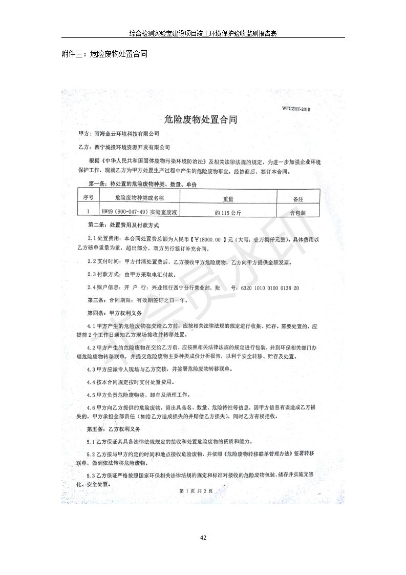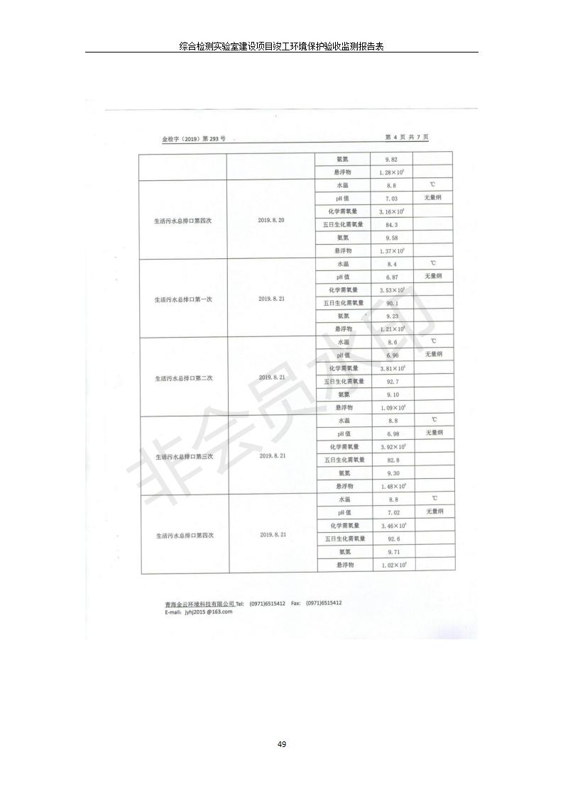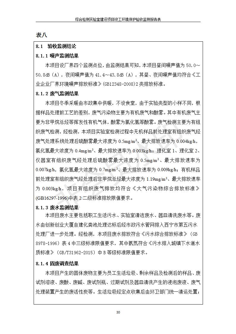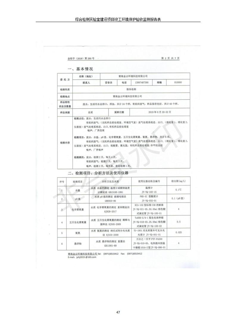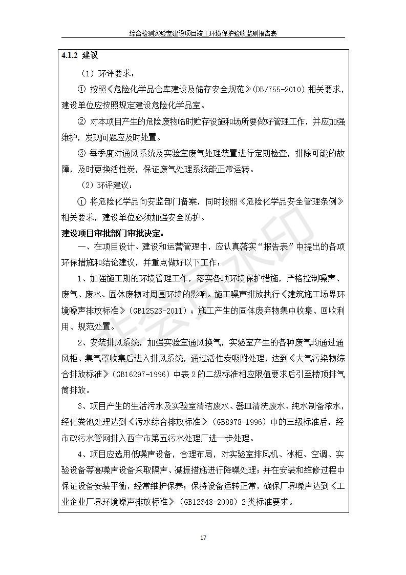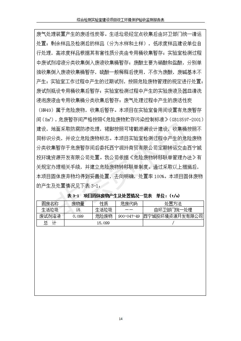 根據(jù)中華人民共和國(guó)國(guó)務(wù)院令第682號(hào)《國(guó)務(wù)院關(guān)于修改〈建設(shè)項(xiàng)目環(huán)境保護(hù)管理?xiàng)l例〉的決定》和《建設(shè)項(xiàng)目竣工環(huán)境保護(hù)驗(yàn)收暫行辦法》(國(guó)務(wù)院令682號(hào)),綜合檢測(cè)實(shí)驗(yàn)室建設(shè)項(xiàng)目(包括竣工環(huán)境保護(hù)驗(yàn)收監(jiān)測(cè)報(bào)告表和驗(yàn)收意見(jiàn))公示如下。 一、項(xiàng)目名稱:綜合檢測(cè)實(shí)驗(yàn)室建設(shè)項(xiàng)目 二、地點(diǎn):西寧市經(jīng)濟(jì)技術(shù)開(kāi)發(fā)區(qū)生物科技產(chǎn)業(yè)園區(qū)創(chuàng)新創(chuàng)業(yè)大廈南區(qū)15、16層 六、聯(lián)系電話:0971-6515411 七、公示時(shí)間:二〇一九年十一月十九日至二〇一九年十二月十六日 公示期間,對(duì)上述公示內(nèi)容如有異議,請(qǐng)以書面形式反饋,個(gè)人須署真實(shí)姓名,單位須加蓋公章。