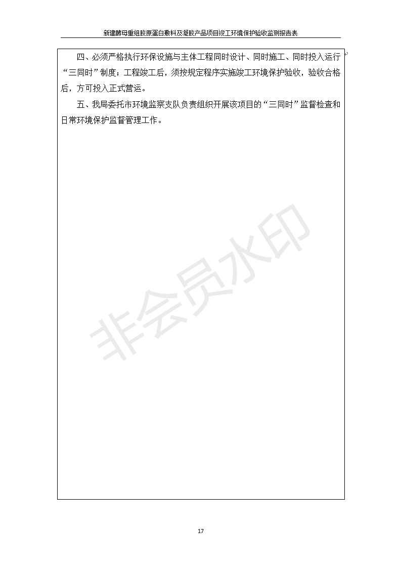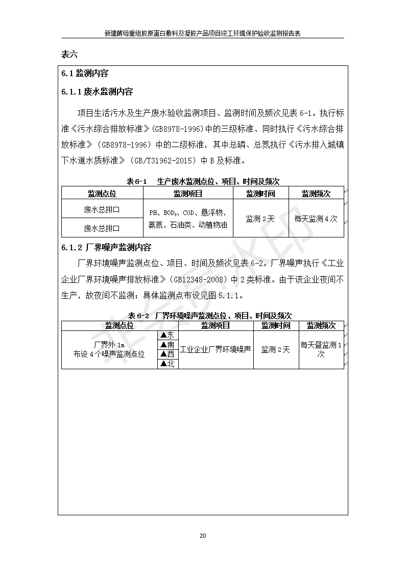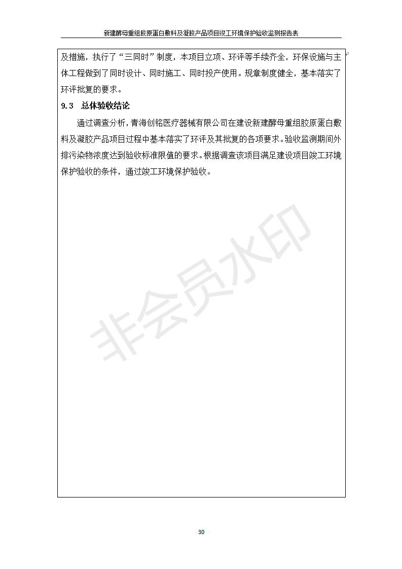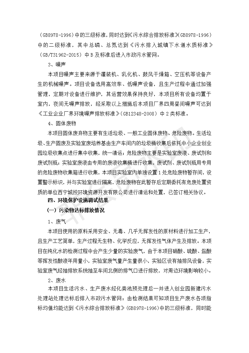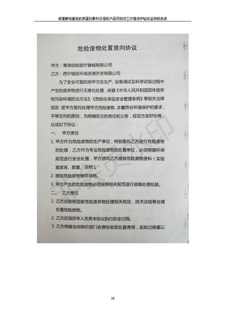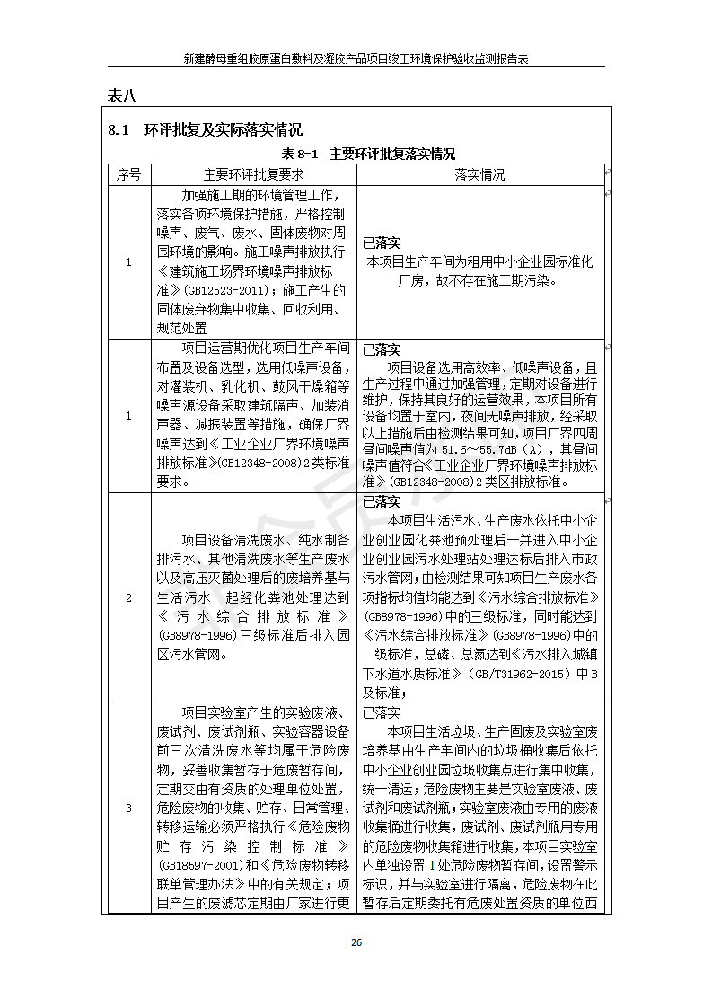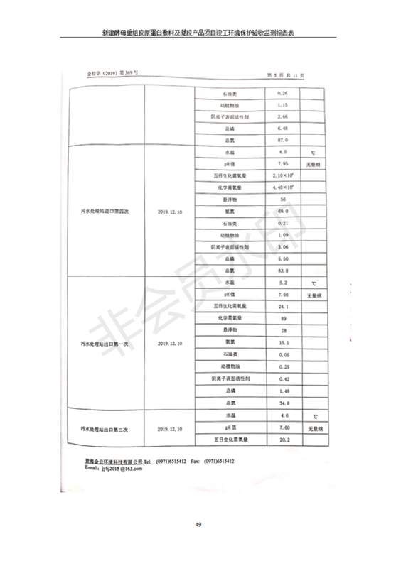 根據(jù)中華人民共和國國務(wù)院令第682號(hào)《國務(wù)院關(guān)于修改〈建設(shè)項(xiàng)目環(huán)境保護(hù)管理?xiàng)l例〉的決定》和《建設(shè)項(xiàng)目竣工環(huán)境保護(hù)驗(yàn)收暫行辦法》(國務(wù)院令682號(hào)),新建酵母重組膠原蛋白敷料及凝膠產(chǎn)品項(xiàng)目(包括竣工環(huán)境保護(hù)驗(yàn)收監(jiān)測(cè)報(bào)告表和驗(yàn)收意見)公示如下。 一、項(xiàng)目名稱:新建酵母重組膠原蛋白敷料及凝膠產(chǎn)品項(xiàng)目 二、地點(diǎn):西寧市生物園區(qū)經(jīng)四路26號(hào)15號(hào)樓2層 五、聯(lián)系人:董繼風(fēng) 六、聯(lián)系電話:18606125050 七、公示時(shí)間:二〇二〇年一月十三日至二〇二〇年二月十二日 公示期間,對(duì)上述公示內(nèi)容如有異議,請(qǐng)以書面形式反饋,個(gè)人須署真實(shí)姓名,單位須加蓋公章。