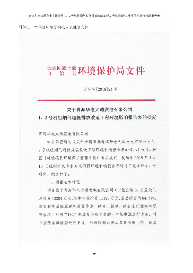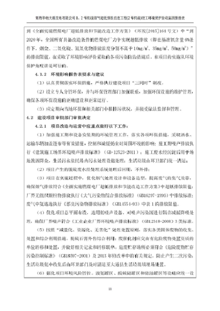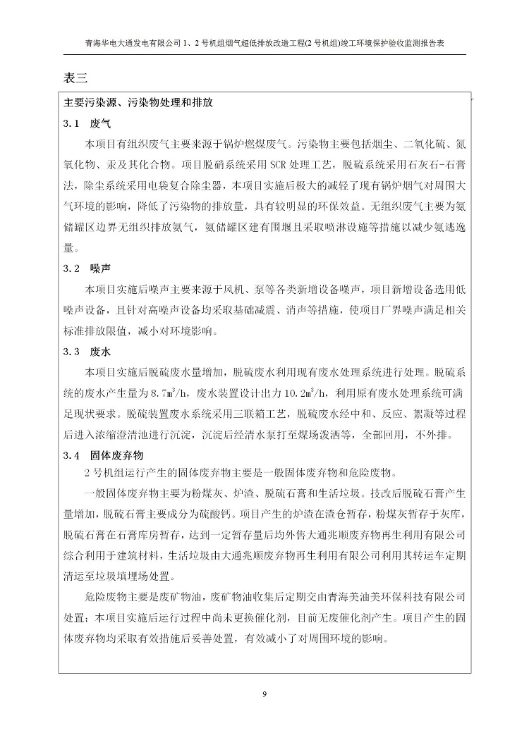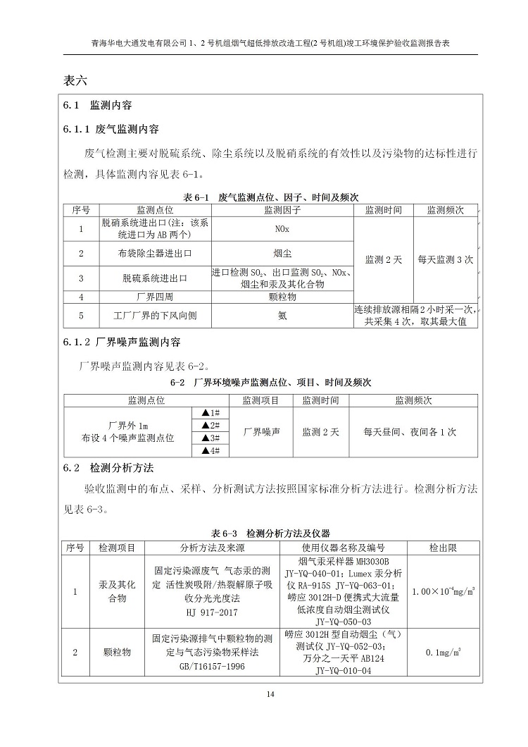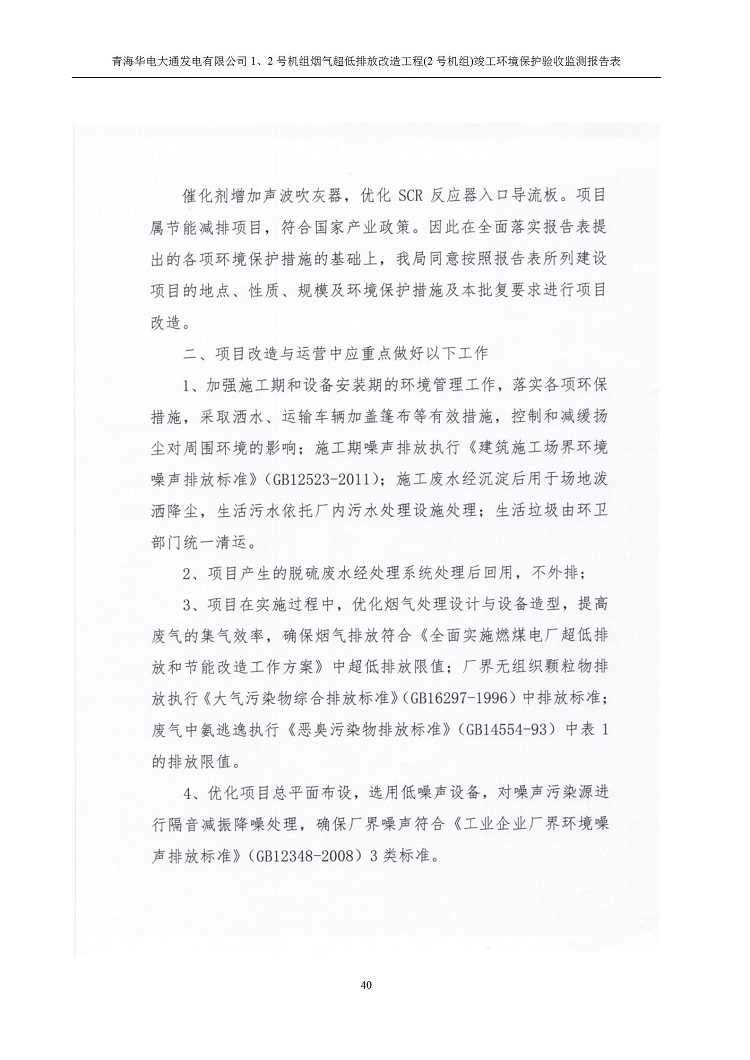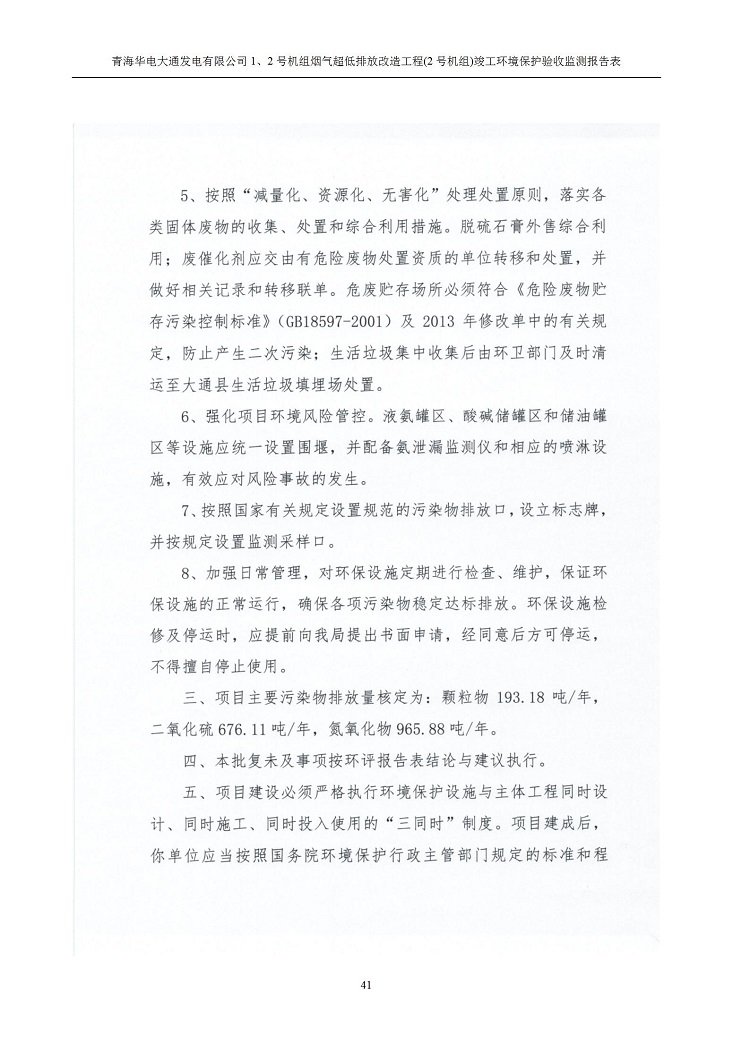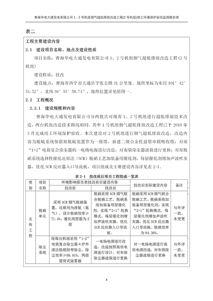 根據(jù)中華人民共和國國務(wù)院令第682號(hào)《國務(wù)院關(guān)于修改〈建設(shè)項(xiàng)目環(huán)境保護(hù)管理?xiàng)l例〉的決定》和《建設(shè)項(xiàng)目竣工環(huán)境保護(hù)驗(yàn)收暫行辦法》(國務(wù)院令682號(hào)),青海華電大通發(fā)電有限公司1、2號(hào)機(jī)組煙氣超低排放改造工程(2號(hào)機(jī)組) (包括竣工環(huán)境保護(hù)驗(yàn)收監(jiān)測(cè)報(bào)告表和驗(yàn)收意見)公示如下。 一、項(xiàng)目名稱:青海華電大通發(fā)電有限公司1、2號(hào)機(jī)組煙氣超低排放改造工程(2號(hào)機(jī)組) 竣工環(huán)境保護(hù)驗(yàn)收監(jiān)測(cè)報(bào)告表 二、地點(diǎn):青海省西寧市大通縣寧張公路31公里處 三、建設(shè)單位:青海華電大通發(fā)電有限公司 四、建設(shè)內(nèi)容:2號(hào)機(jī)組煙氣超低排放改造,2號(hào)機(jī)組改造內(nèi)容為脫硫系統(tǒng)保留原脫硫裝置作為一級(jí)塔,新建二級(jí)合金托盤塔串聯(lián)吸收塔;對(duì)原“1+2”電袋復(fù)合除塵器的一電場電源進(jìn)行改造,對(duì)布袋除塵器濾袋進(jìn)行更換;對(duì)原脫硝系統(tǒng)選擇性催化還原法(SCR)脫硝工藝加裝備用催化劑,每層催化劑增加聲波吹灰器,優(yōu)化SCR反應(yīng)器入口導(dǎo)流板。 五、聯(lián)系人:馬世敏 六、聯(lián)系電 話:0971-6515411 七、公示時(shí)間:二〇二〇年四月二十九日至二〇二〇年五月二十八日 公示期間,對(duì)上述公示內(nèi)容如有異議,請(qǐng)以書面形式反饋,個(gè)人須署真實(shí)姓名,單位須加蓋公章。