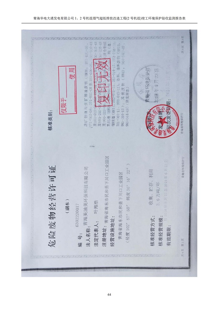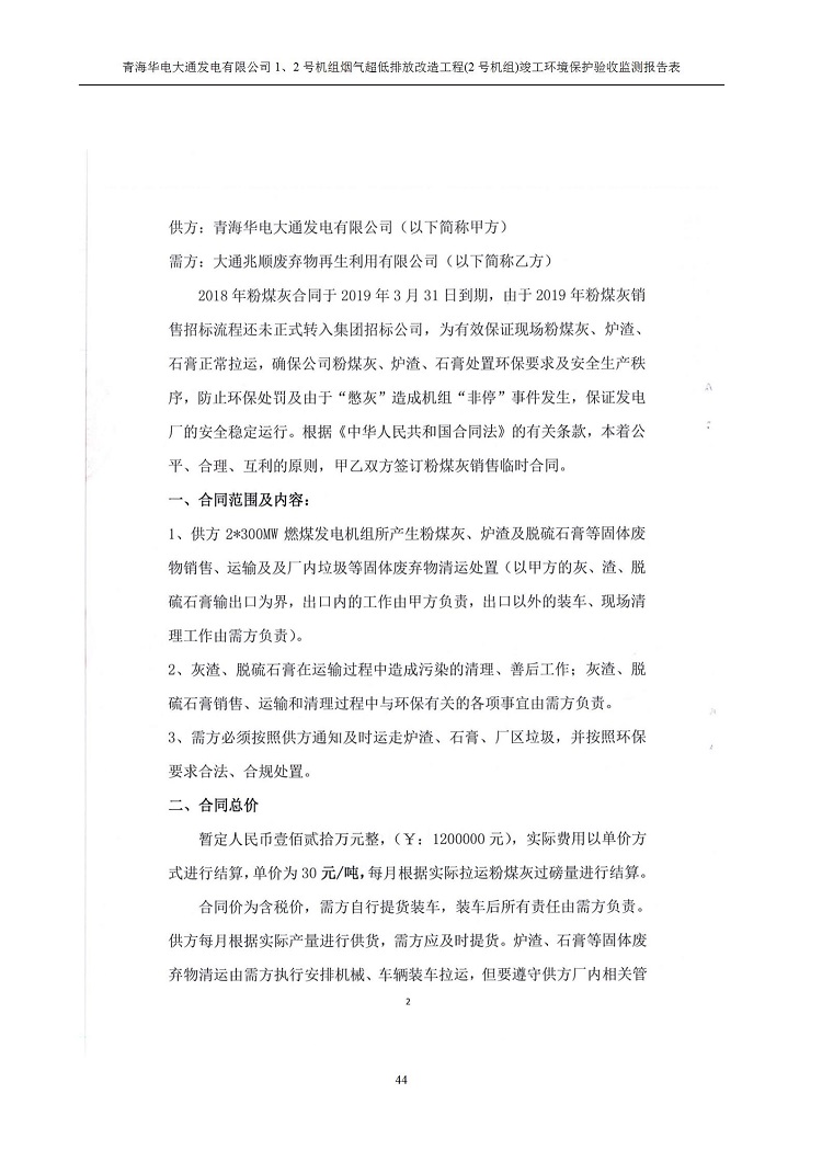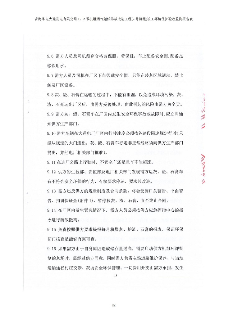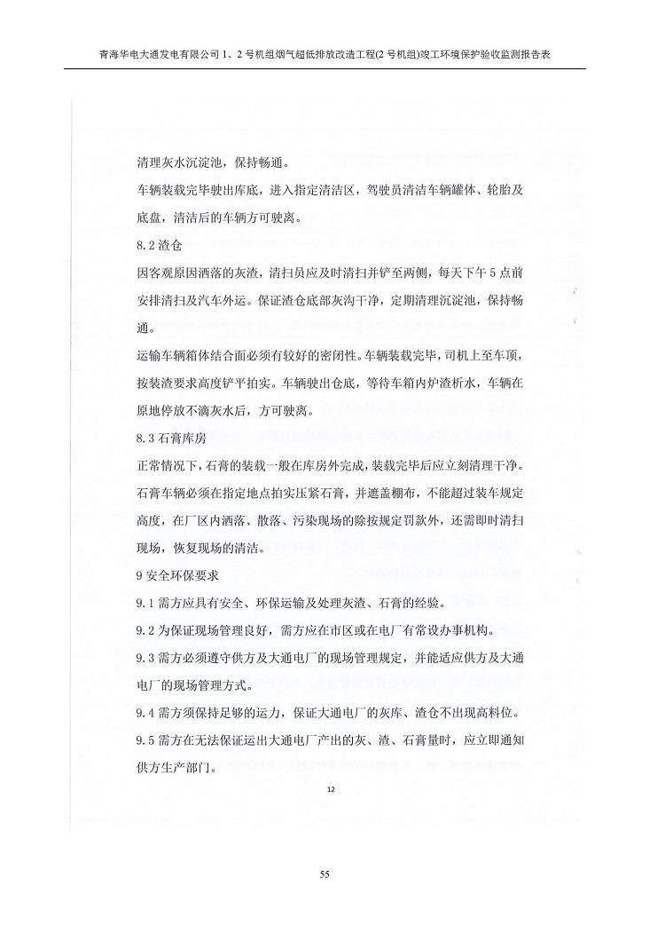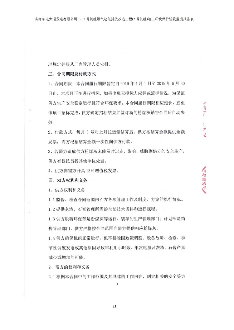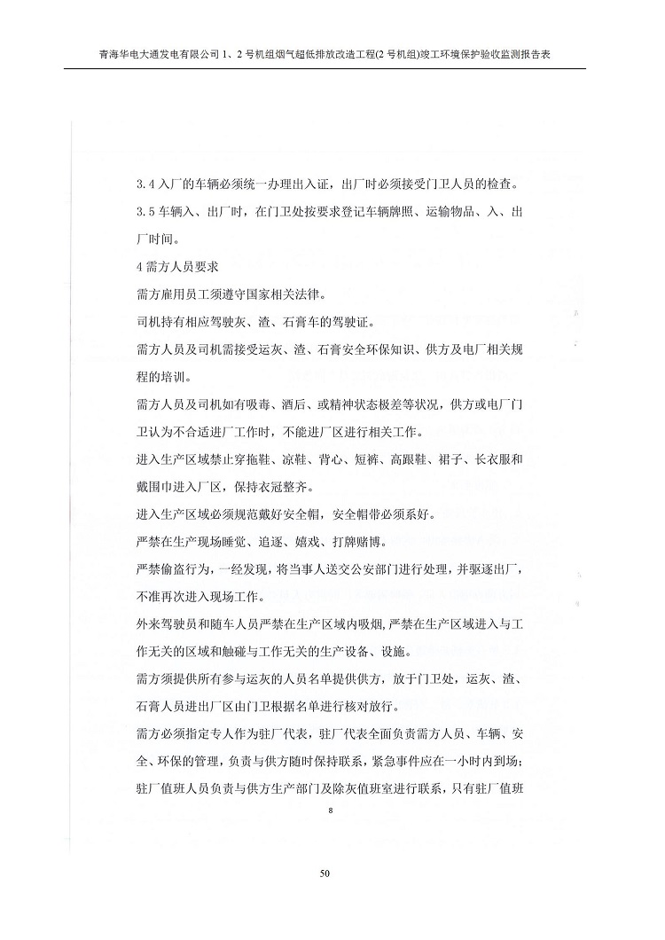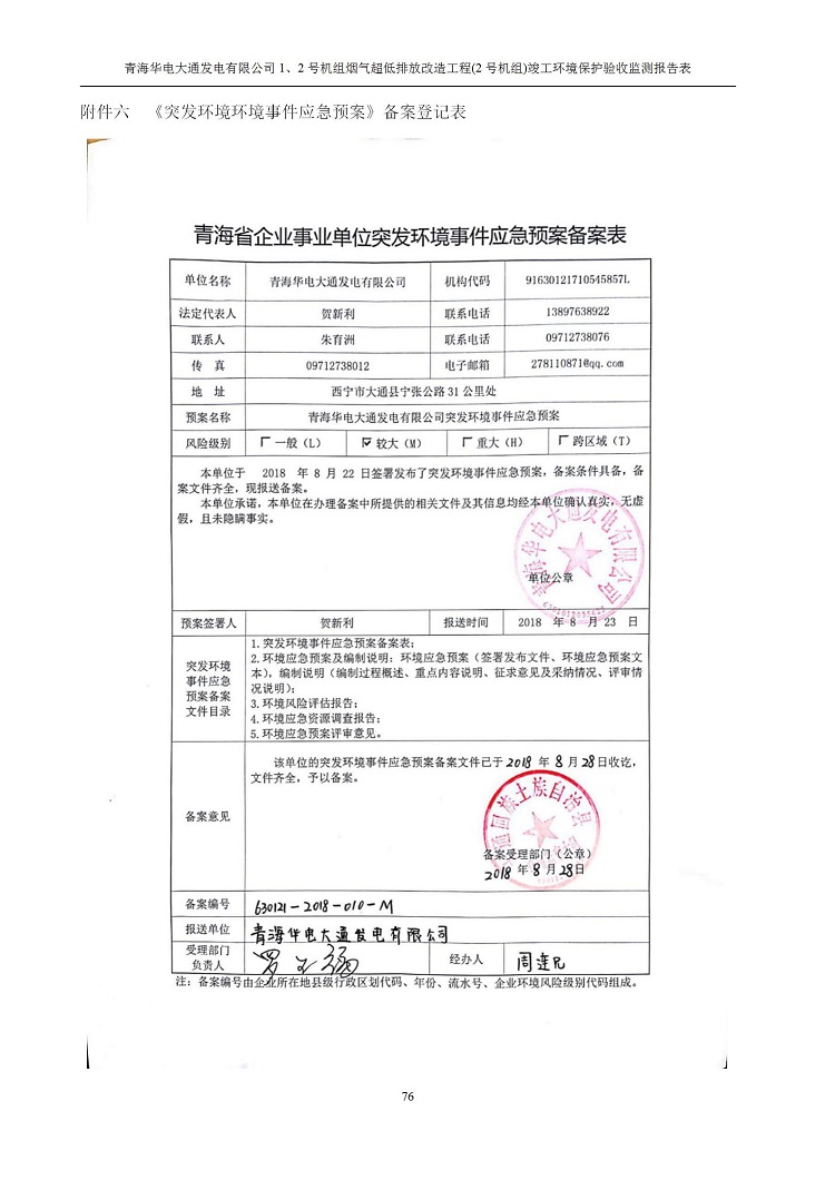 根據(jù)中華人民共和國國務(wù)院令第682號(hào)《國務(wù)院關(guān)于修改〈建設(shè)項(xiàng)目環(huán)境保護(hù)管理?xiàng)l例〉的決定》和《建設(shè)項(xiàng)目竣工環(huán)境保護(hù)驗(yàn)收暫行辦法》(國務(wù)院令682號(hào)),青海華電大通發(fā)電有限公司1、2號(hào)機(jī)組煙氣超低排放改造工程(2號(hào)機(jī)組) (包括竣工環(huán)境保護(hù)驗(yàn)收監(jiān)測(cè)報(bào)告表和驗(yàn)收意見)公示如下。 一、項(xiàng)目名稱:青海華電大通發(fā)電有限公司1、2號(hào)機(jī)組煙氣超低排放改造工程(2號(hào)機(jī)組) 竣工環(huán)境保護(hù)驗(yàn)收監(jiān)測(cè)報(bào)告表 二、地點(diǎn):青海省西寧市大通縣寧張公路31公里處 三、建設(shè)單位:青海華電大通發(fā)電有限公司 四、建設(shè)內(nèi)容:2號(hào)機(jī)組煙氣超低排放改造,2號(hào)機(jī)組改造內(nèi)容為脫硫系統(tǒng)保留原脫硫裝置作為一級(jí)塔,新建二級(jí)合金托盤塔串聯(lián)吸收塔;對(duì)原“1+2”電袋復(fù)合除塵器的一電場電源進(jìn)行改造,對(duì)布袋除塵器濾袋進(jìn)行更換;對(duì)原脫硝系統(tǒng)選擇性催化還原法(SCR)脫硝工藝加裝備用催化劑,每層催化劑增加聲波吹灰器,優(yōu)化SCR反應(yīng)器入口導(dǎo)流板。 五、聯(lián)系人:馬世敏 六、聯(lián)系電 話:0971-6515411 七、公示時(shí)間:二〇二〇年四月二十九日至二〇二〇年五月二十八日 公示期間,對(duì)上述公示內(nèi)容如有異議,請(qǐng)以書面形式反饋,個(gè)人須署真實(shí)姓名,單位須加蓋公章。