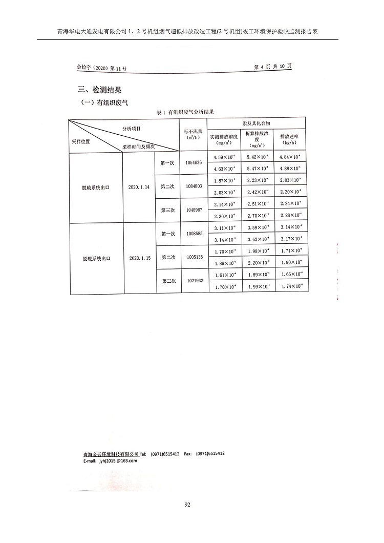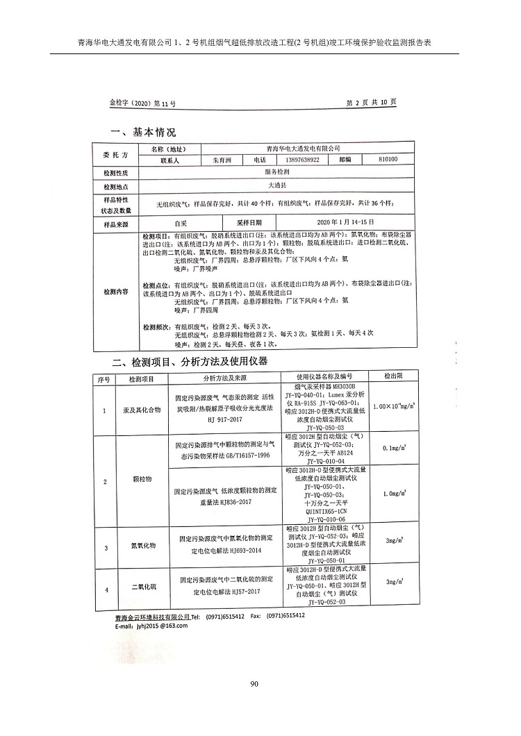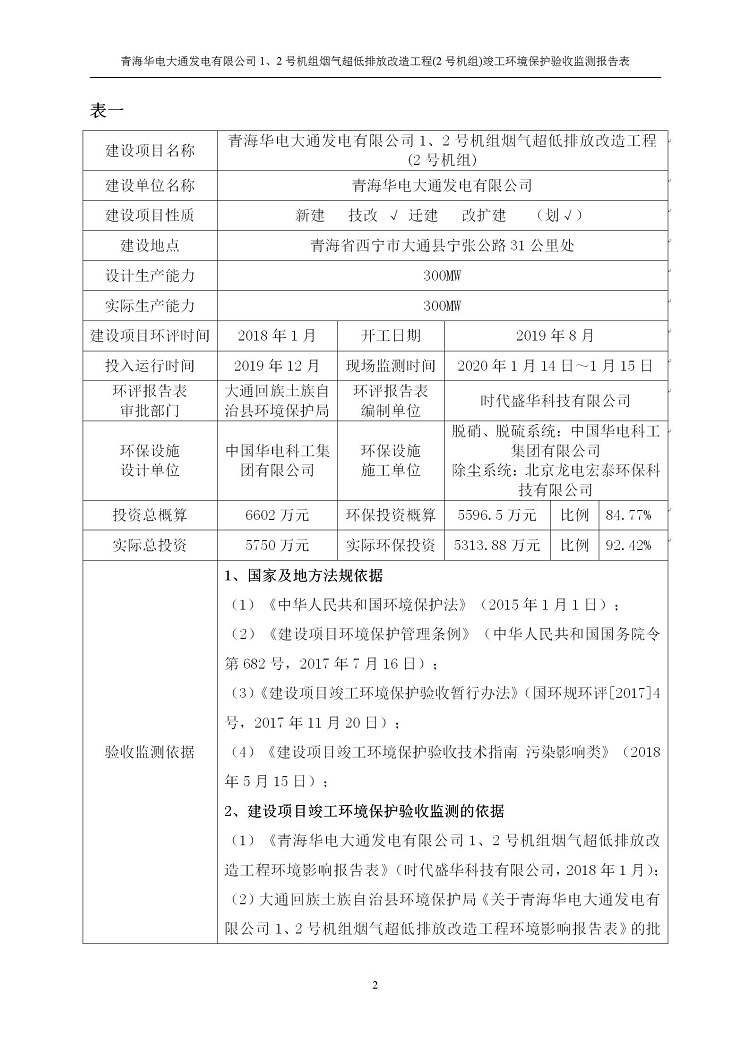 青海華電大通發(fā)電有限公司1、2號(hào)機(jī)組煙氣超低排放改造工程(2號(hào)機(jī)組) 竣工環(huán)境保護(hù)驗(yàn)收監(jiān)測(cè)報(bào)告表公示發(fā)布日期:(2020-4-29) 點(diǎn)擊次數(shù):2502 |