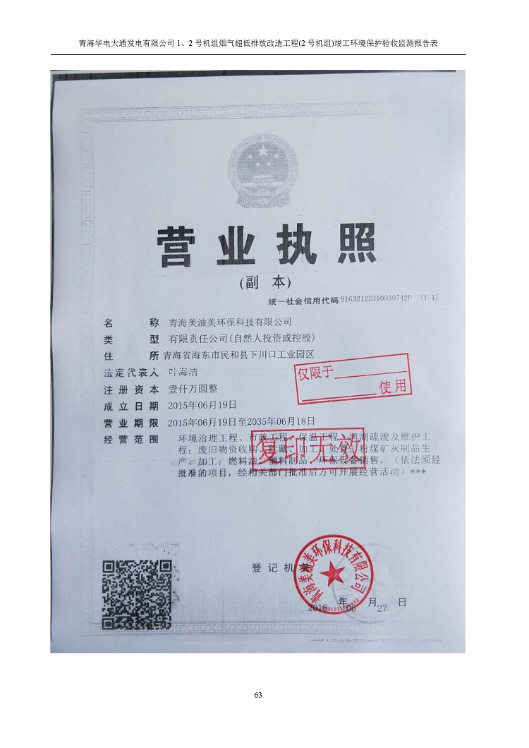 | 上一篇:湟源海藏咽喉森林公園中心服務(wù)區(qū)改建項(xiàng)目(階段性)竣工環(huán)境保護(hù)驗(yàn)收調(diào)查表 | 下一篇:青;ブ⑶囡茦I(yè)有限公司年產(chǎn)500噸青稞酒業(yè)生產(chǎn)線建設(shè)項(xiàng)目竣工環(huán)境保護(hù)驗(yàn)收監(jiān)測(cè)報(bào)告表公示 |