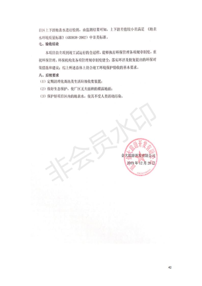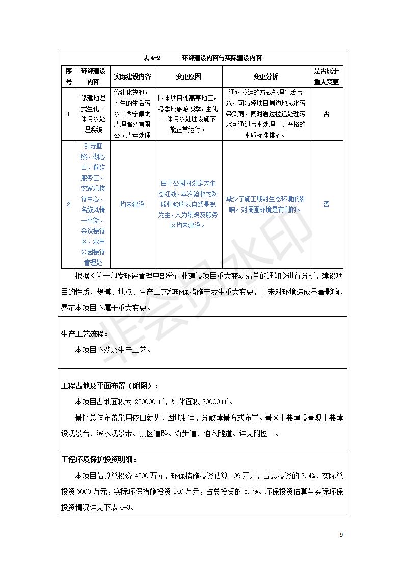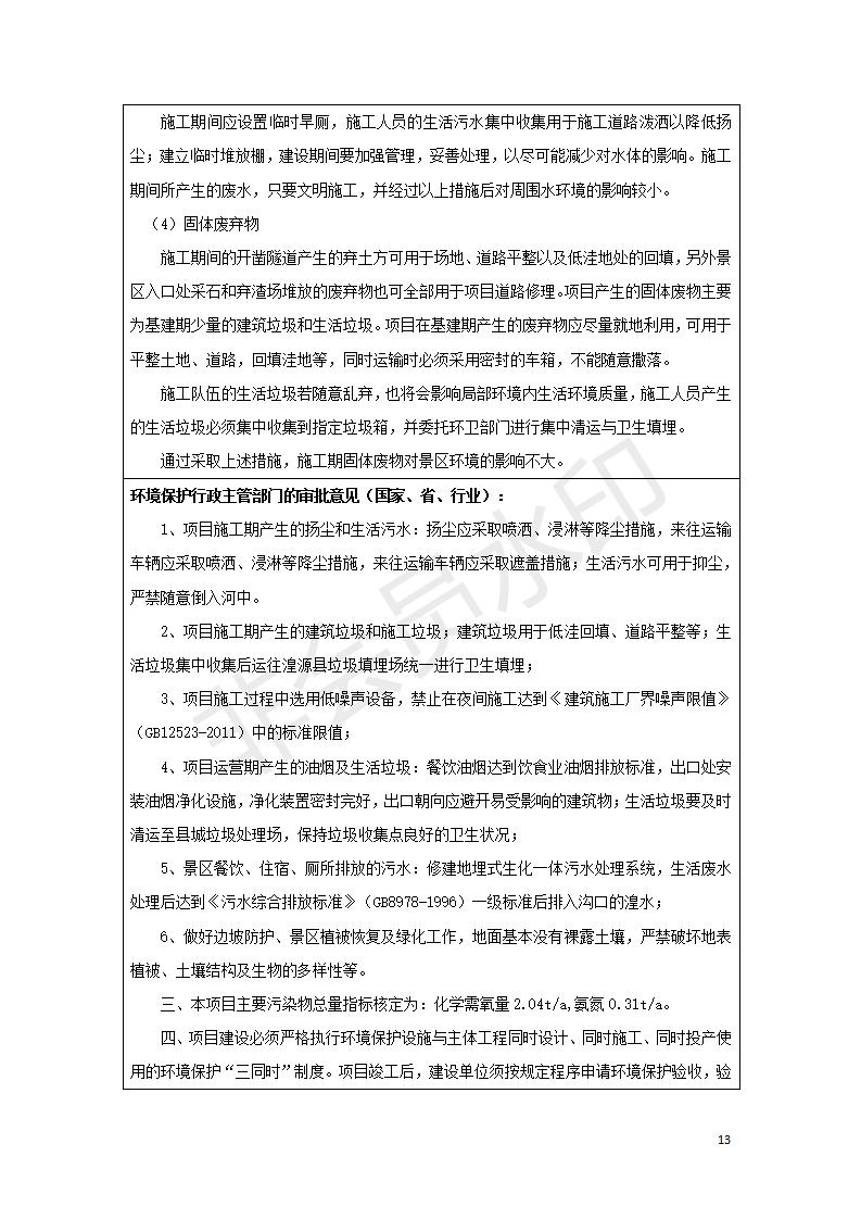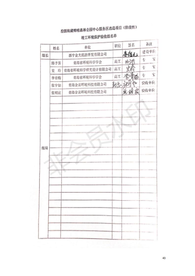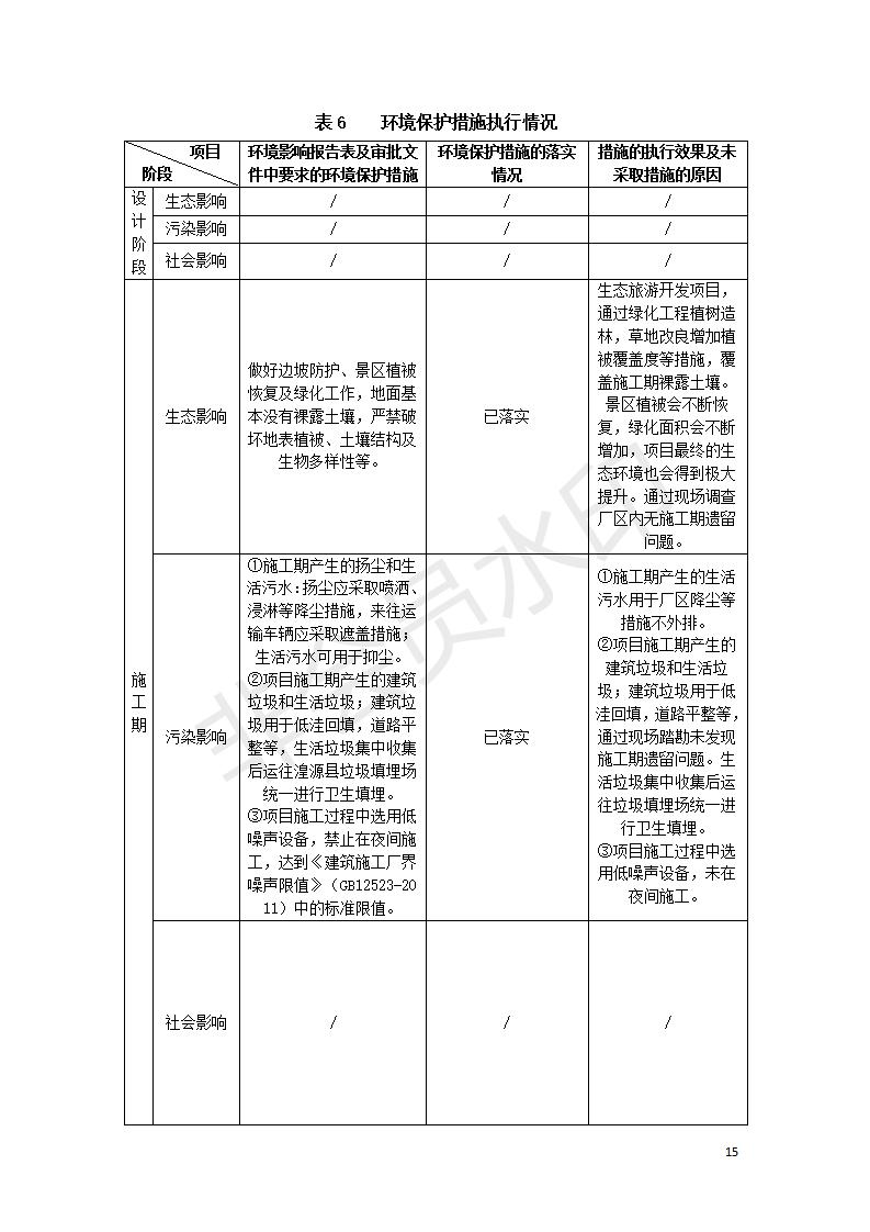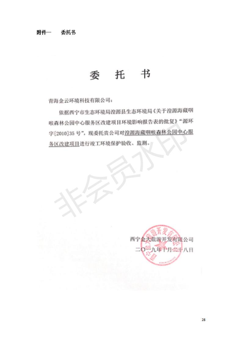 根據(jù)中華人民共和國國務院令第682號《國務院關于修改〈建設項目環(huán)境保護管理條例〉的決定》和《建設項目竣工環(huán)境保護驗收暫行辦法》(國務院令682號),湟源海藏咽喉森林公園中心服務區(qū)改建項目(階段性),(包括竣工環(huán)境保護驗收調(diào)查表和驗收意見)公示如下。 一、項目名稱:湟源海藏咽喉森林公園中心服務區(qū)改建項目(階段性) 竣工環(huán)境保護驗收調(diào)查表 二、地點:青海省湟源縣東峽鄉(xiāng)大黑溝 三、建設單位:西寧金大旅游開發(fā)有限公司 四、建設內(nèi)容:本次階段性驗收以自然景觀為主,建設內(nèi)容為濱水景觀帶、觀景臺、景區(qū)道路及基礎設施。項目范圍從景區(qū)大門至中心位置,全長4800m。 五、聯(lián)系人:張工 六、聯(lián)系電 話:0971-6515411 七、公示時間:二〇二〇年四月二十九日至二〇二〇年五月二十八日 公示期間,對上述公示內(nèi)容如有異議,請以書面形式反饋,個人須署真實姓名,單位須加蓋公章。