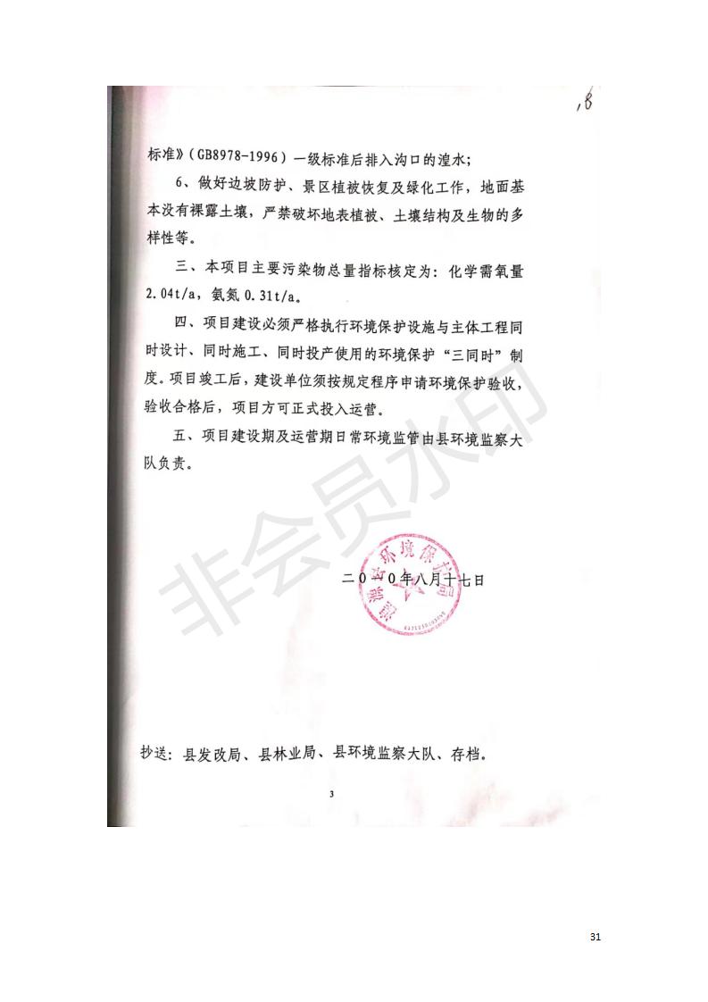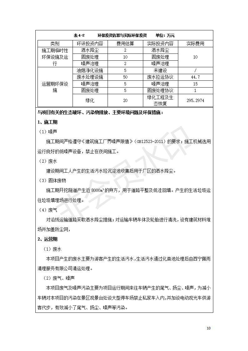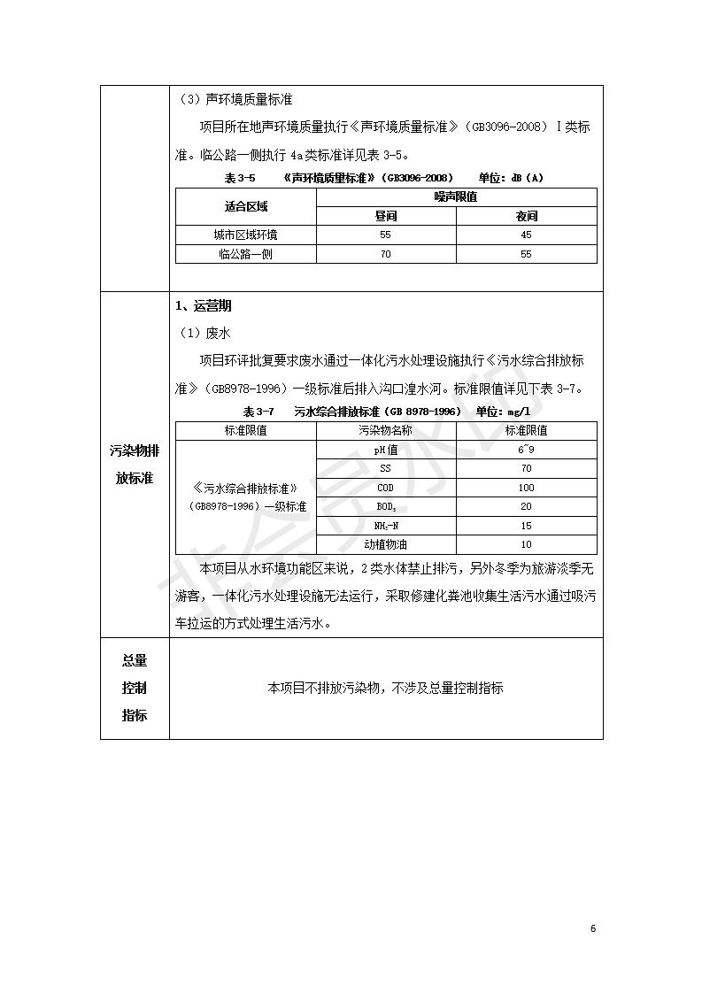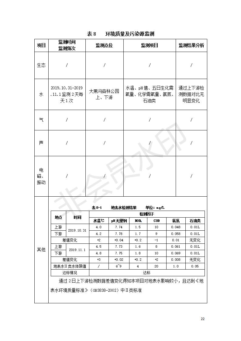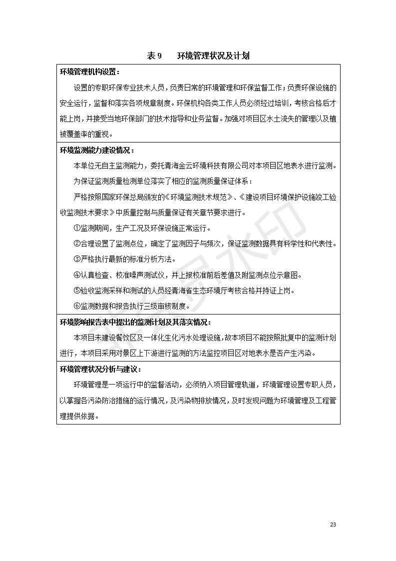 根據(jù)中華人民共和國國務院令第682號《國務院關于修改〈建設項目環(huán)境保護管理條例〉的決定》和《建設項目竣工環(huán)境保護驗收暫行辦法》(國務院令682號),湟源海藏咽喉森林公園中心服務區(qū)改建項目(階段性),(包括竣工環(huán)境保護驗收調(diào)查表和驗收意見)公示如下。 一、項目名稱:湟源海藏咽喉森林公園中心服務區(qū)改建項目(階段性) 竣工環(huán)境保護驗收調(diào)查表 二、地點:青海省湟源縣東峽鄉(xiāng)大黑溝 三、建設單位:西寧金大旅游開發(fā)有限公司 四、建設內(nèi)容:本次階段性驗收以自然景觀為主,建設內(nèi)容為濱水景觀帶、觀景臺、景區(qū)道路及基礎設施。項目范圍從景區(qū)大門至中心位置,全長4800m。 五、聯(lián)系人:張工 六、聯(lián)系電 話:0971-6515411 七、公示時間:二〇二〇年四月二十九日至二〇二〇年五月二十八日 公示期間,對上述公示內(nèi)容如有異議,請以書面形式反饋,個人須署真實姓名,單位須加蓋公章。