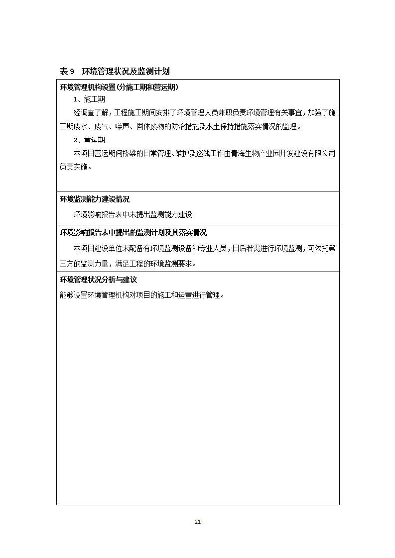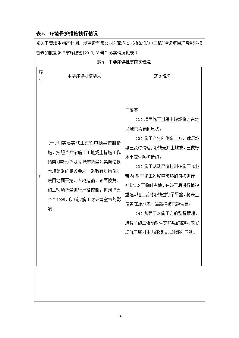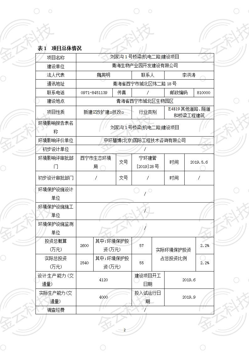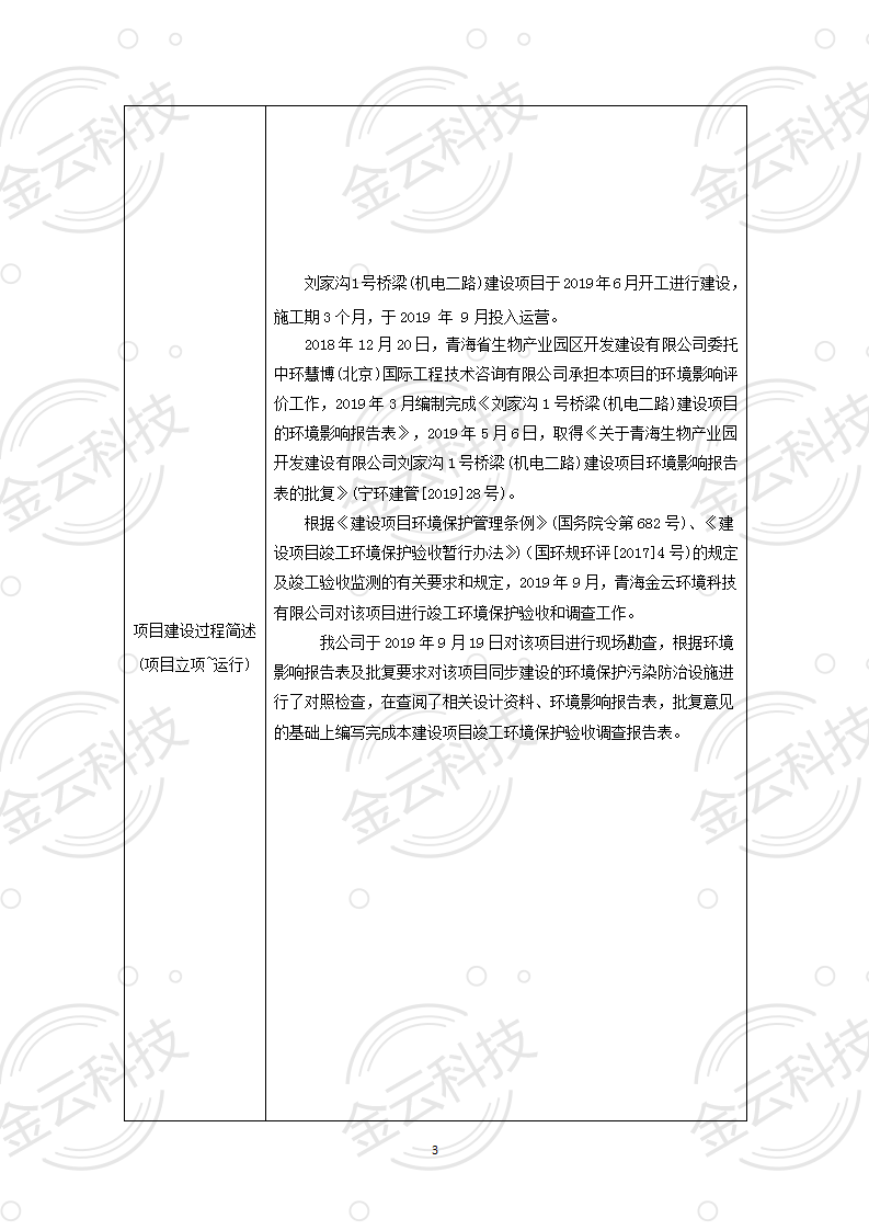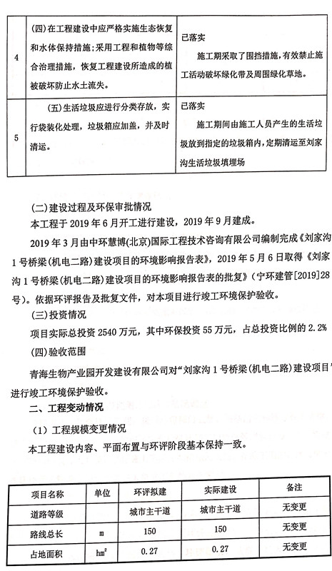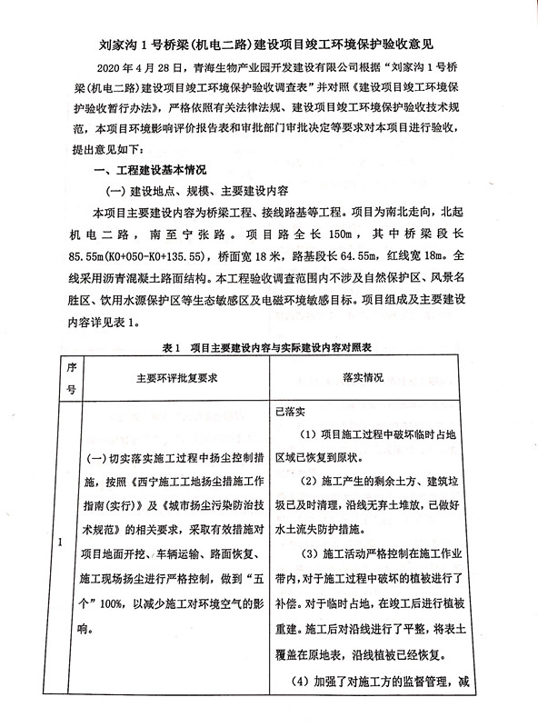 根據(jù)中華人民共和國國務院令第682號《國務院關于修改〈建設項目環(huán)境保護管理條例〉的決定》和《建設項目竣工環(huán)境保護驗收暫行辦法》(國務院令682號),劉家溝1號橋梁(機電二路)建設項目竣工環(huán)境保護驗收調查表,(包括竣工環(huán)境保護驗收調查表和驗收意見)公示如下。 一、項目名稱:劉家溝1號橋梁(機電二路)建設項目竣工環(huán)境保護驗收調查表 二、地點:青海省西寧市城北區(qū)生物園區(qū) 三、建設單位:青海生物產業(yè)園開發(fā)建設有限公司 四、建設內容:本項目主要建設內容為橋梁工程、接線路基等工程。項目南北走向,北起機電二路,南至寧張路,項目全長150m. 五、聯(lián)系人:張工 六、聯(lián)系電 話:0971-6515411 七、公示時間:二〇二〇年六月二日至二〇二〇年六月三十日 公示期間,對上述公示內容如有異議,請以書面形式反饋,個人須署真實姓名,單位須加蓋公章。 |